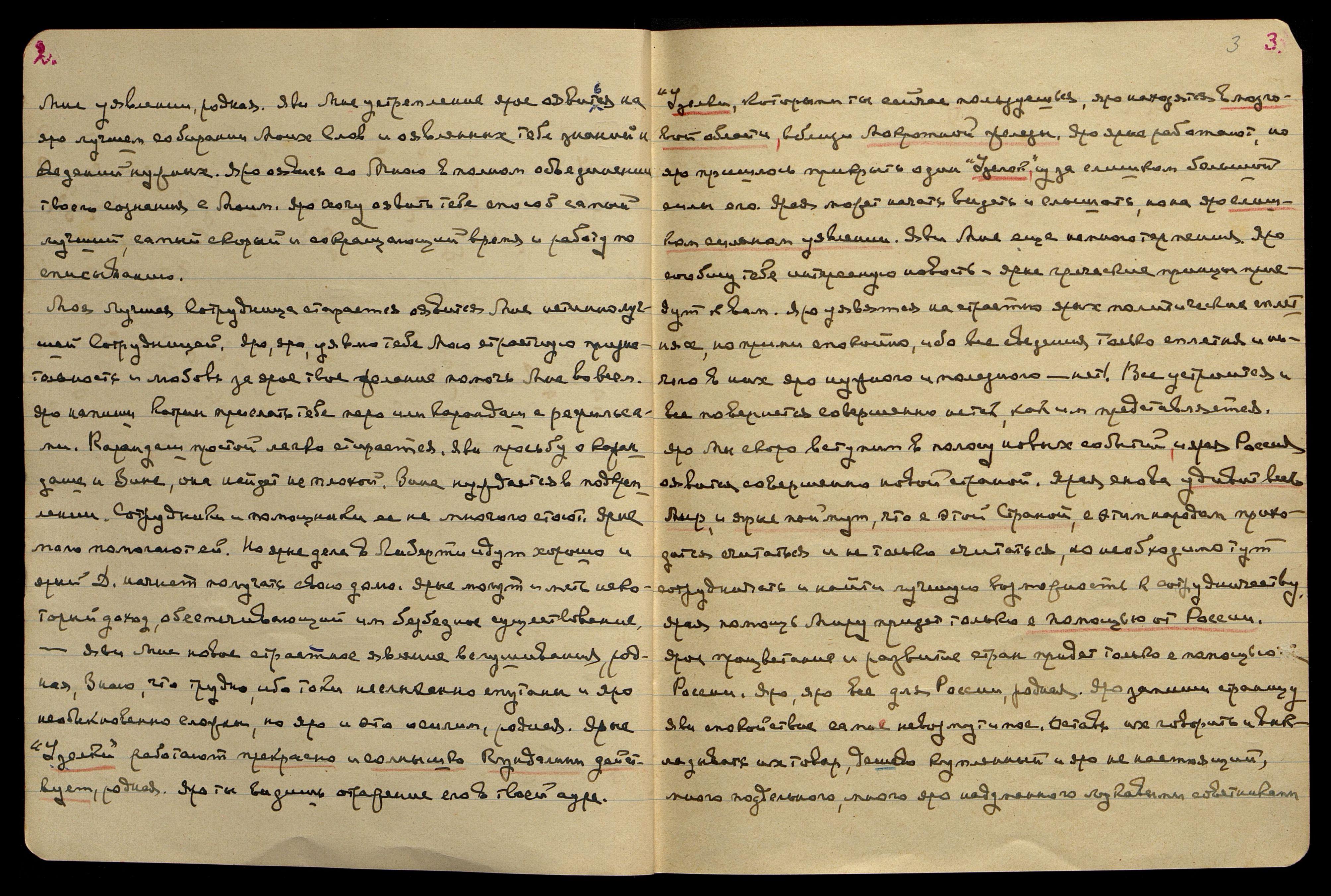 Яро напиши Катрин прислать тебе перо или карандаш с рефильсами*. Карандаш простой легко стирается. Яви просьбу о карандаше и Зине, она найдет неплохой. Зина нуждается в подкреплении. Сотрудники и помощники ее немногого стоят. Ярые мало помогают ей. Но ярые дела в Либерти идут хороши, и ярый Д[едлей] начнет получать свою долю. Ярые могут иметь некоторый доход, обеспечивающий им безбедное существование.