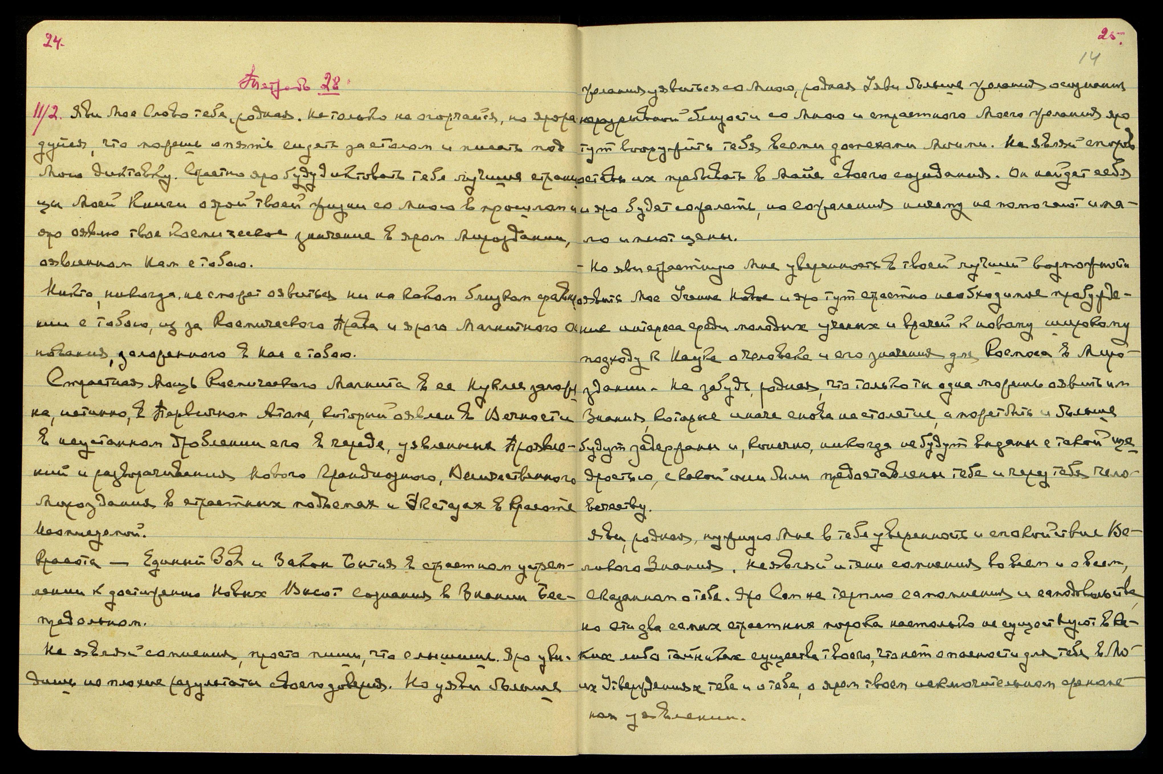 Напряженная мать поддерживает настроение в сыне, и яро Мне это нужно. Ярая скоро перейдет на простое писание. Настроение Сына необходимо поддерживать. Яро Мне нужен ваш отъезд в Р[оссию], но яро нужно приготовить многие обстоятельства к вашему приезду. Яро могут оявиться самые неожиданные фантастические предложения и со стороны народов Азии. Ояви спокойствие. Яро ничего не коснется вас и ваших друзей.