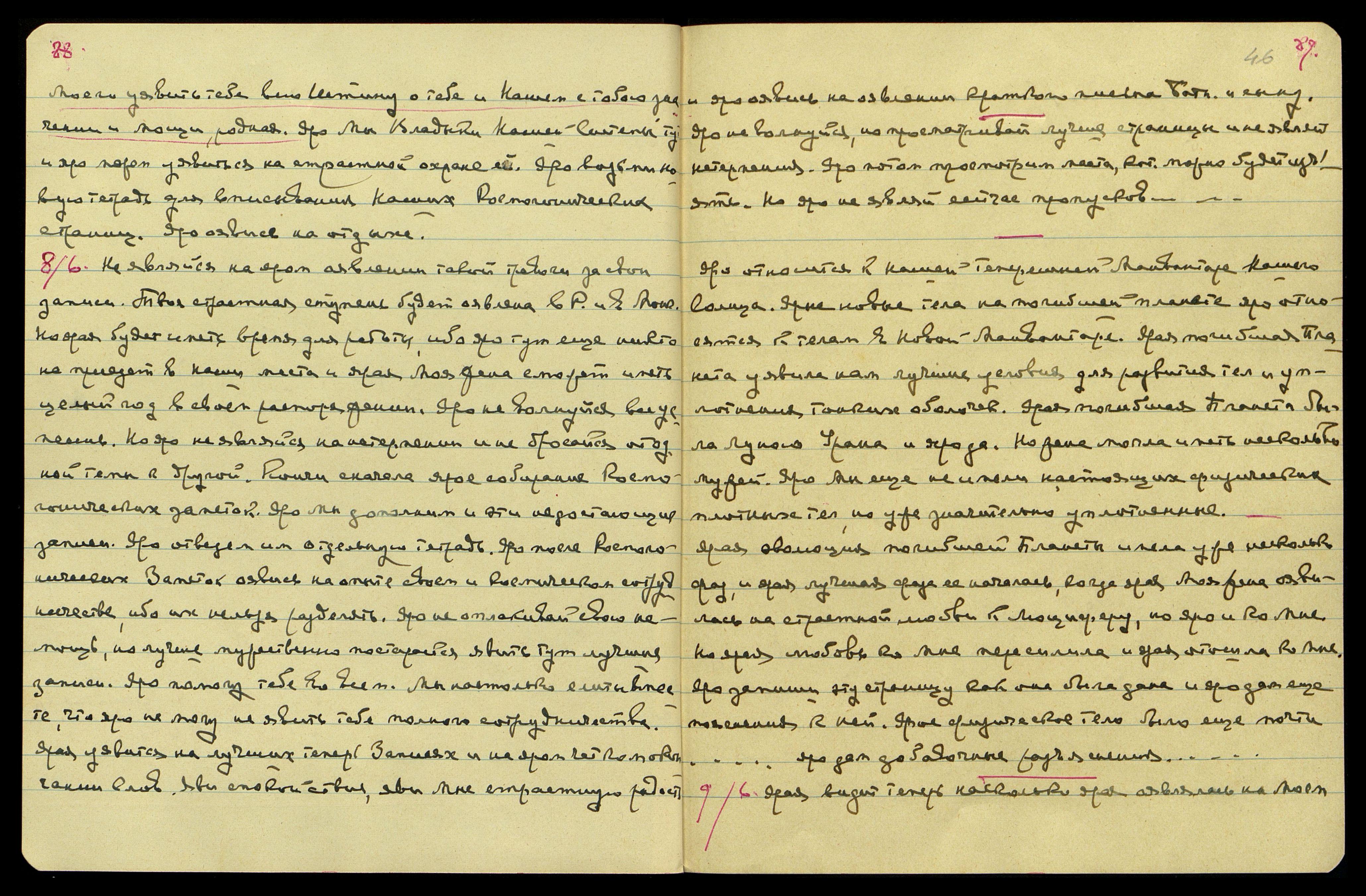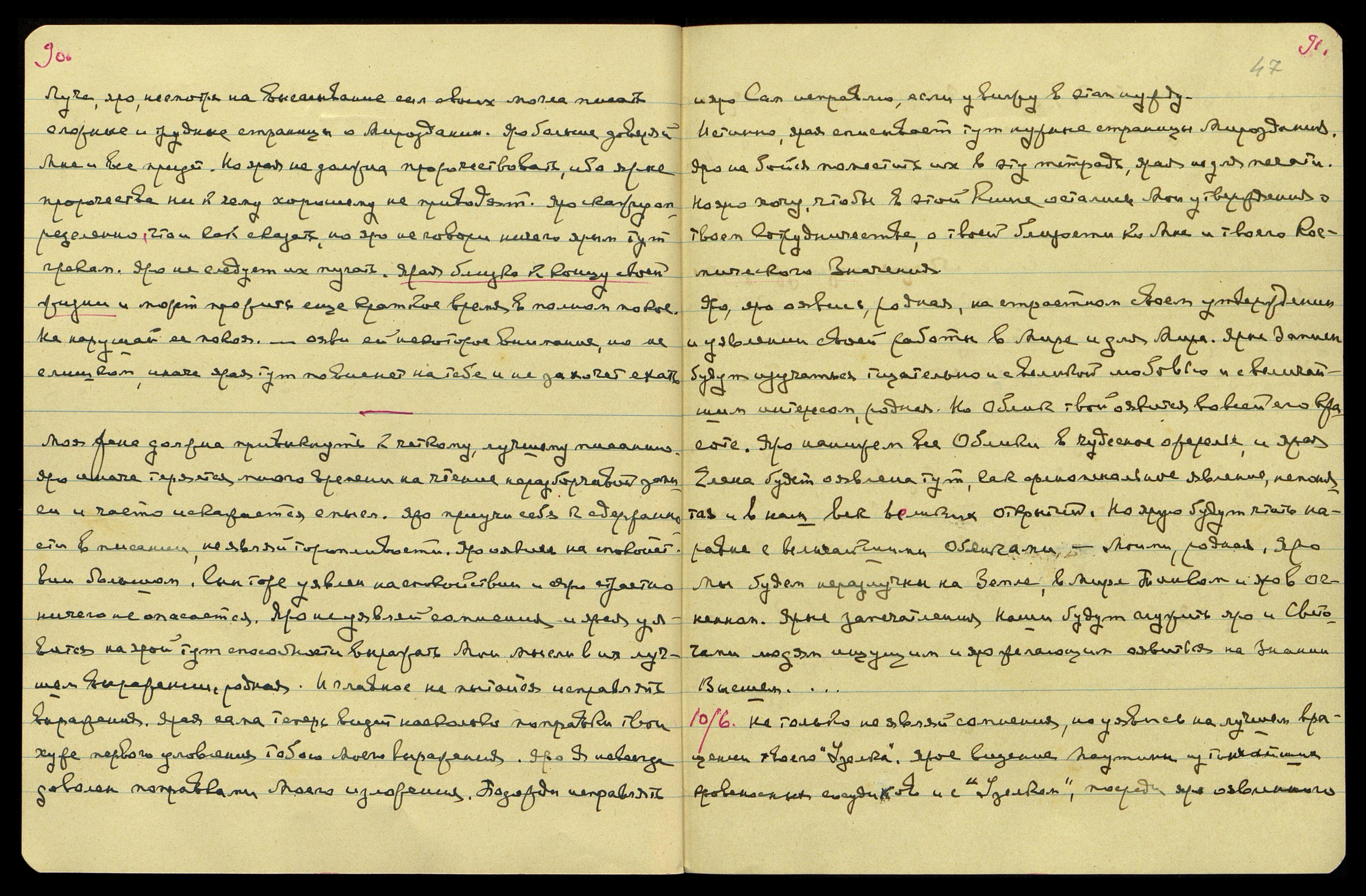 8/6. Не являйся на яром оявлении такой тревоги за свои записи. Твоя страстная ступень будет оявлена в Р[оссии] и в Монг[олии]. Но ярая будет иметь время для работы, ибо яро тут еще никто не приедет в наши места, и ярая Моя жена сможет иметь целый год в своем распоряжении. Яро не волнуйся, все успеешь. Но яро не являйся на нетерпении и не бросайся от одной темы к другой. Кончи сначала ярое собирание Космогонических заметок. Яро Мы дополним и эти недостающие записи. Яро отведем им отдельную тетрадь. Яро после Космогонических Заметок оявись на опыте своем и космическом сотрудничестве, ибо их нельзя разделять. Яро не оплакивай свою немощь, но лучше мужественно постарайся явить тут лучшие записи. Яро помогу тебе во всем. Мы настолько слиты вместе, что яро не могу не явить тебе полного сотрудничества. Ярая уявится на лучших теперь Записях и на яром четком окончании Слов. Яви спокойствие, яви Мне страстную радость и яро оявись на оявлении краткого письма Батн[агару] и сыну.
