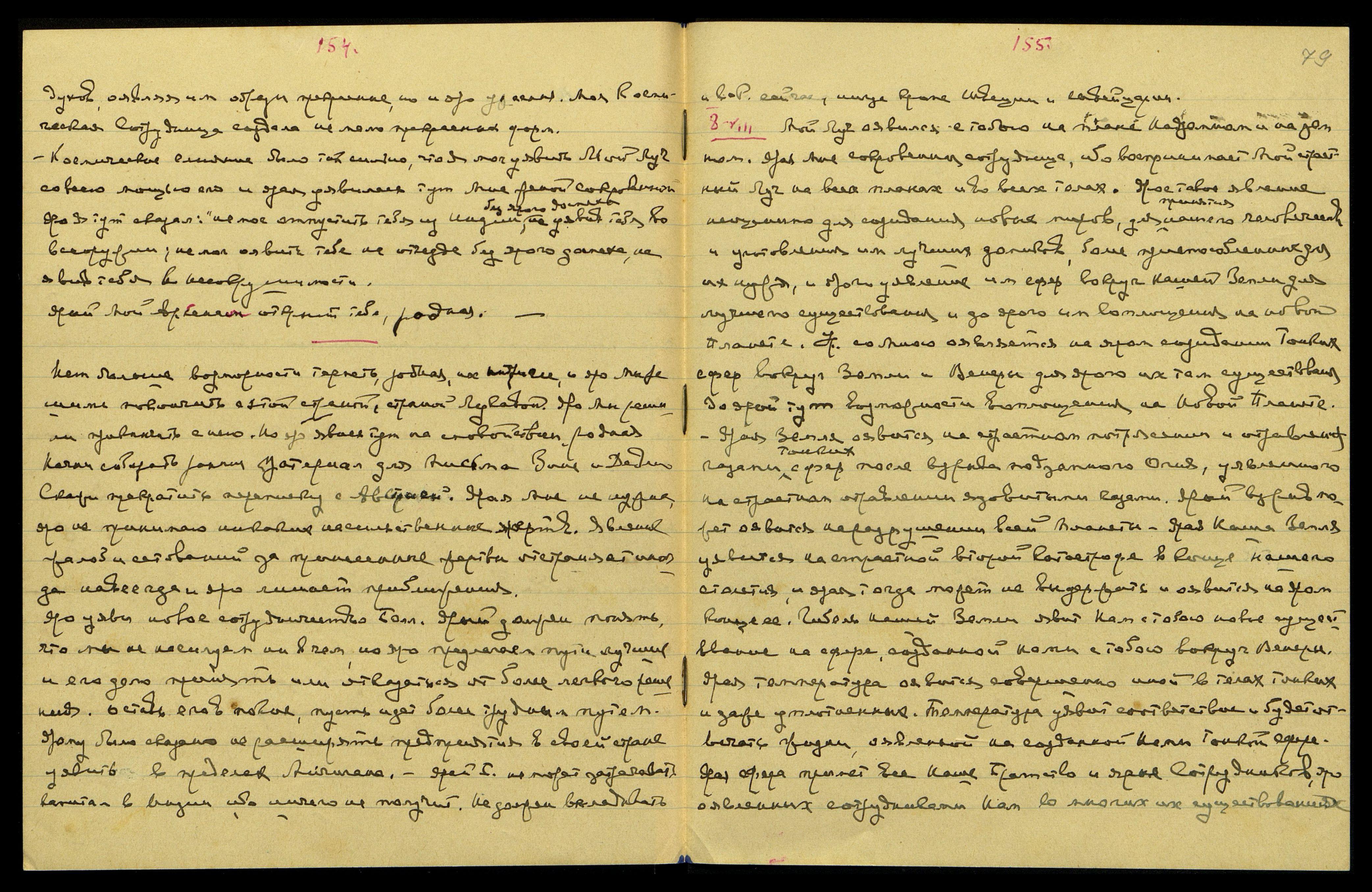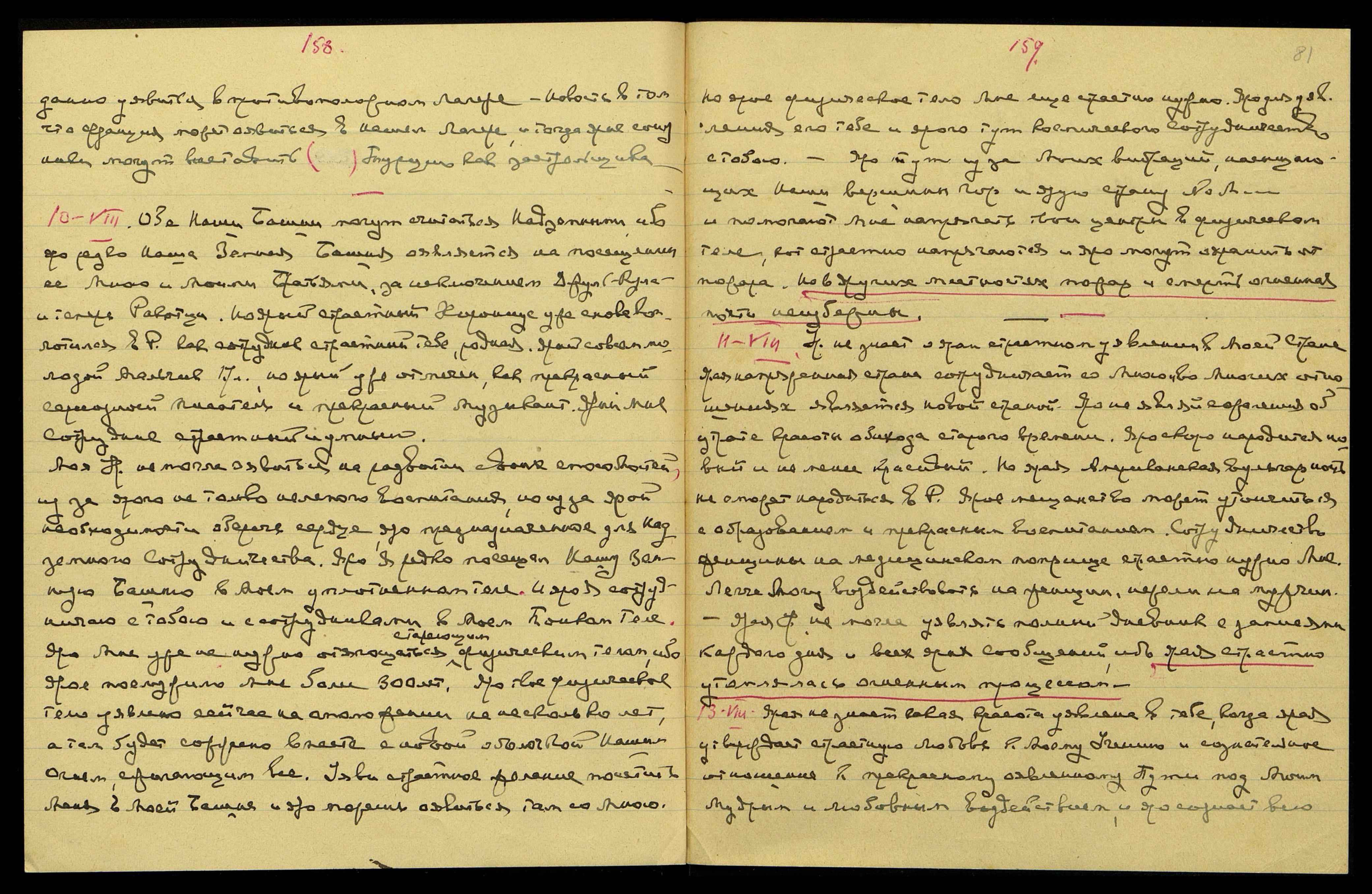15-VIII. Явись на переписке тетради 10-й со всеми страницами, смущающими тебя. Впиши в тетрадь 11-ю недостающие страницы, он[и] крайне важные для уявления страниц о Мироздании, впиши все вместе.