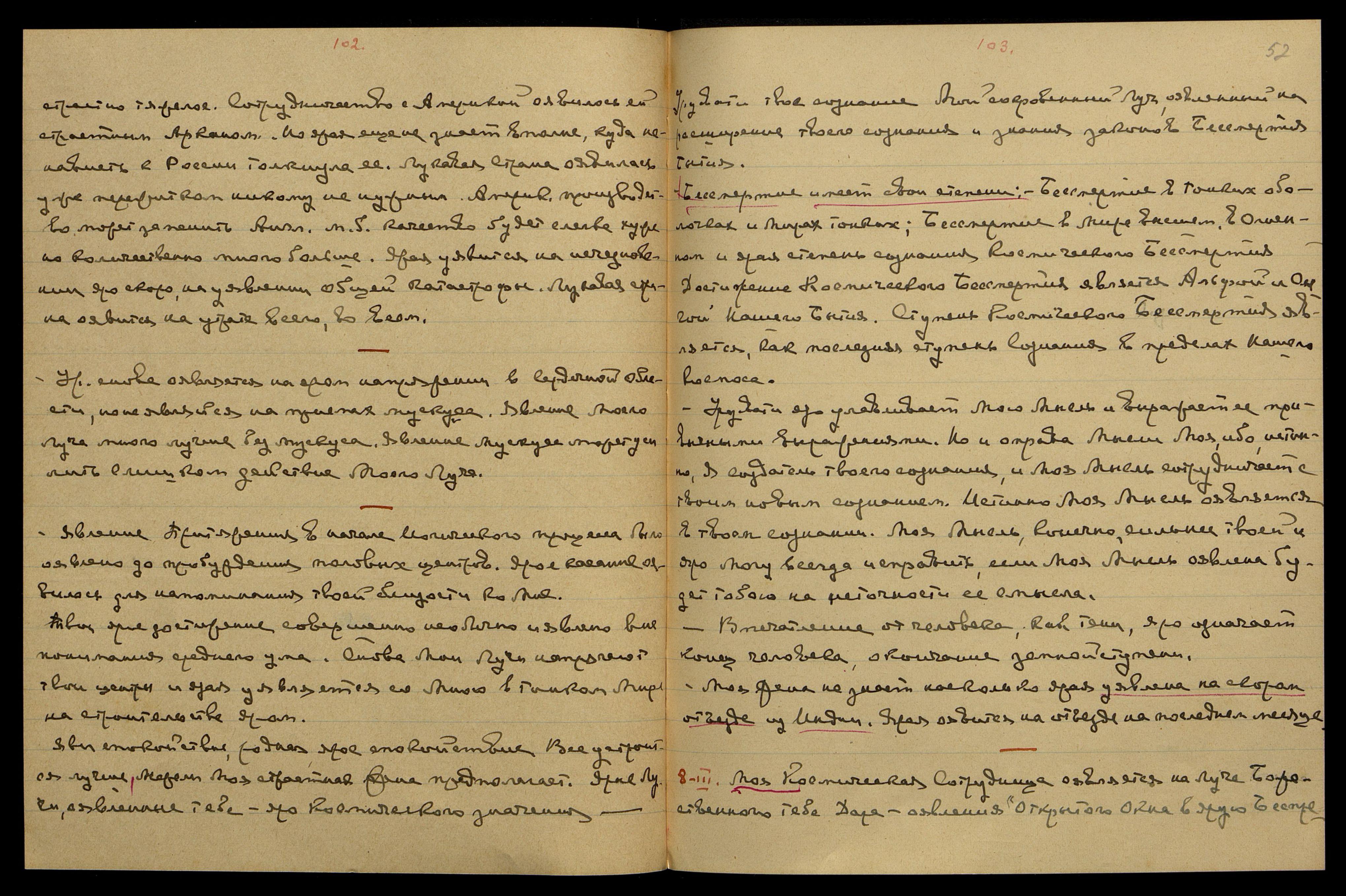 Смерть Ст[алина] и явление Космического срока ударит её тройным ударом. Урусвати скоро оявится в Моей Стране, но не уявляй никакого страха на яром уявлении тебе новой ступени М[атери] М[ира].