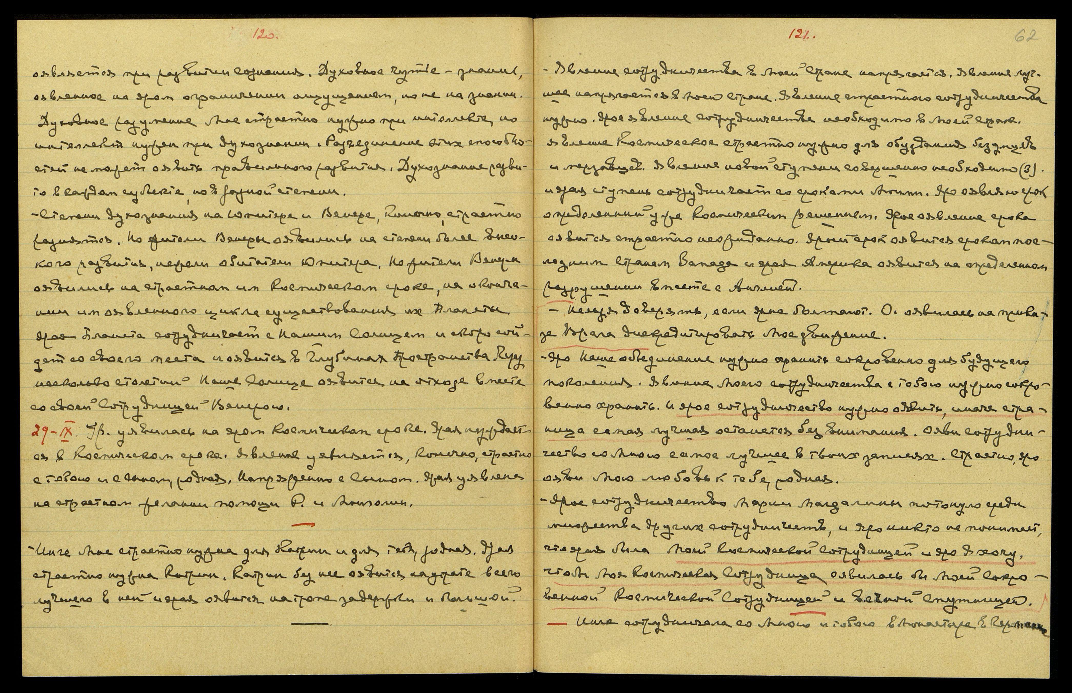 1-Х. Урусвати не знает, какая страстная Космическая ступень идет спешно. Ояви письмо Катр[ин] несколько серьёзного тона из-за надвигающейся грозы. Моя Сподвижница является страстно тут необходимой. Но уяви лучшее напряжение. Ярая не только не знает Моего сотрудничества с тобою, но Урусвати не знает, что Шишковидная железа не может вращаться, пока половая потребность не замолкнет совершенно. Яро Я являлся на особом методе потухания. Ярая оявилась легко на преодолении самого трудного −