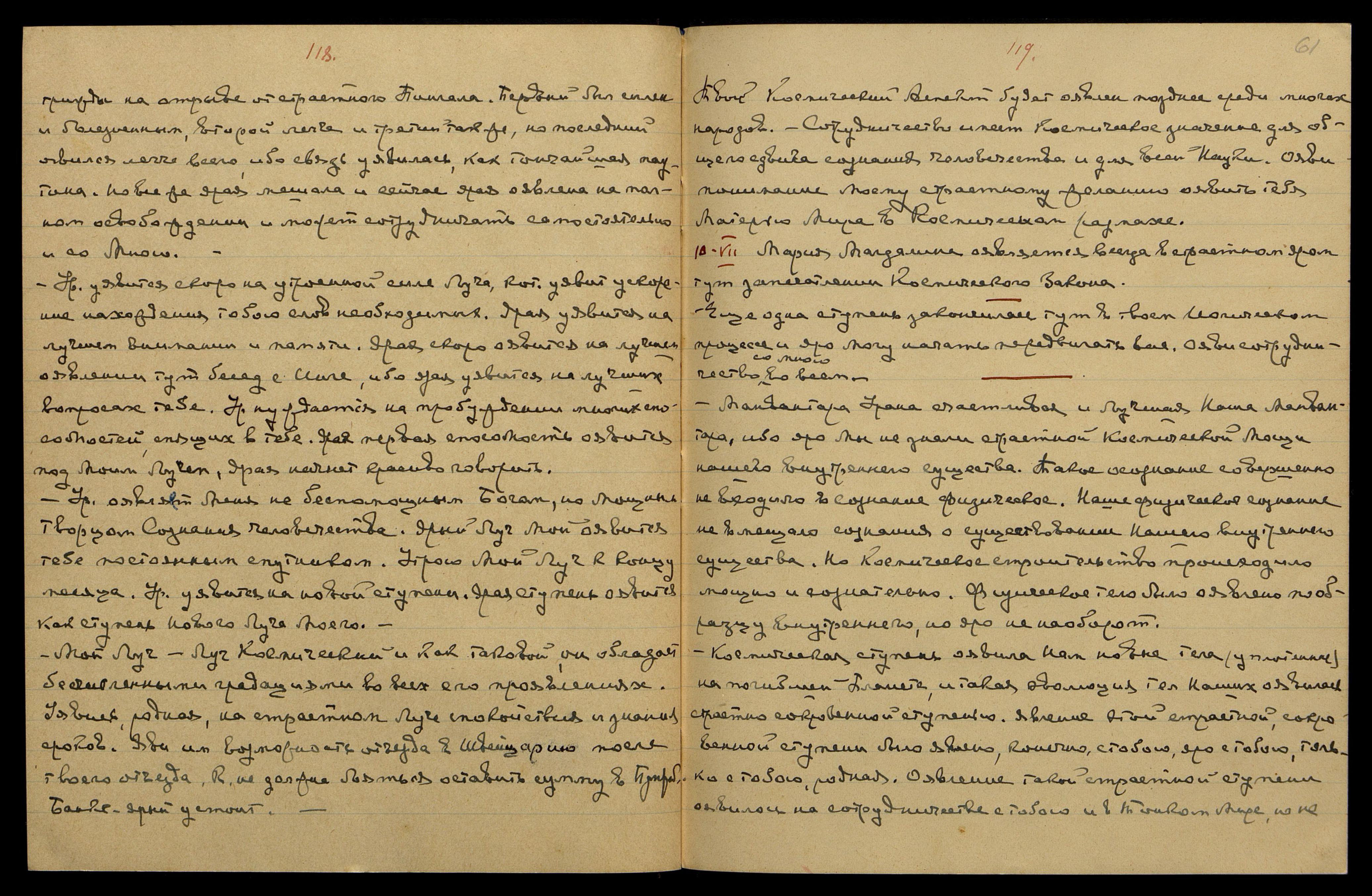 Космическая ступень оявила Нам новые тела (уплотненные) на погибшей Планете, и такая эволюция тел Наших оявилась страстно сокровенной ступенью. Явление этой страстной, сокровенной ступени было явлено, конечно, с тобою, яро с тобою, только с тобою, родная. Оявление такой страстной ступени оявилось на сотрудничестве с тобою и в Тонком Мире, но не