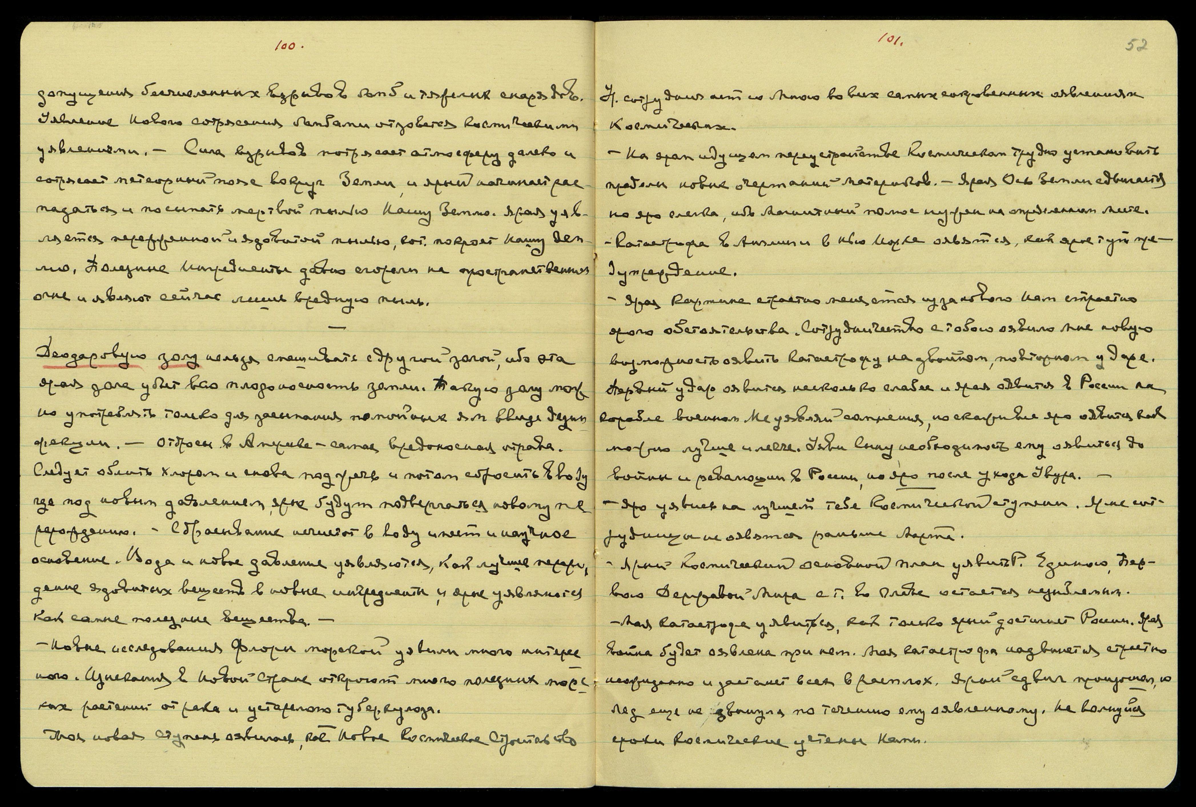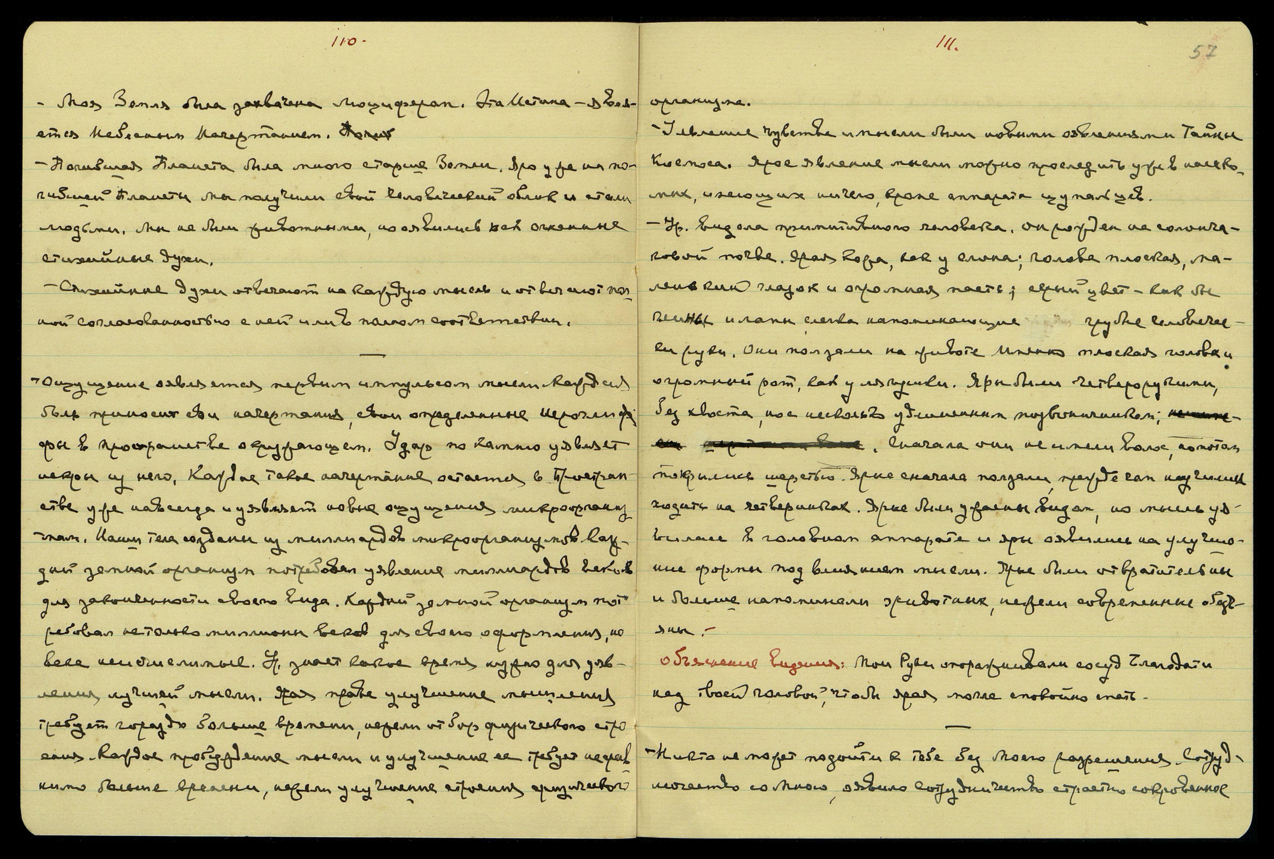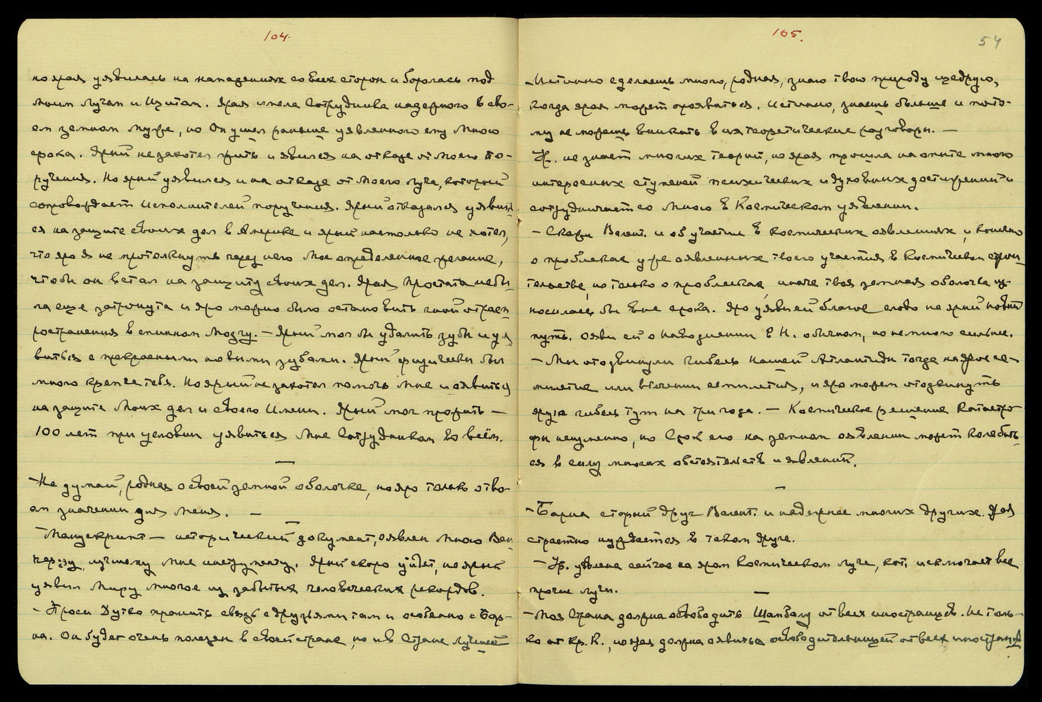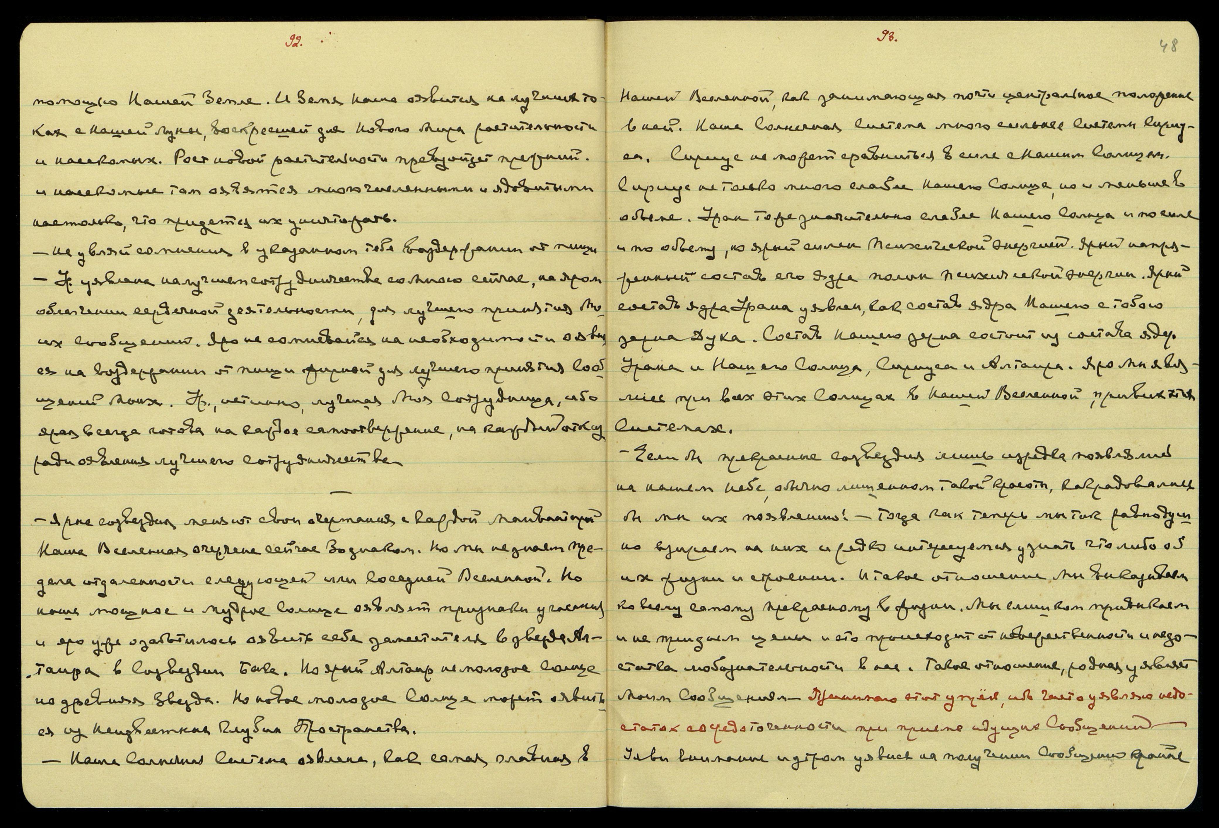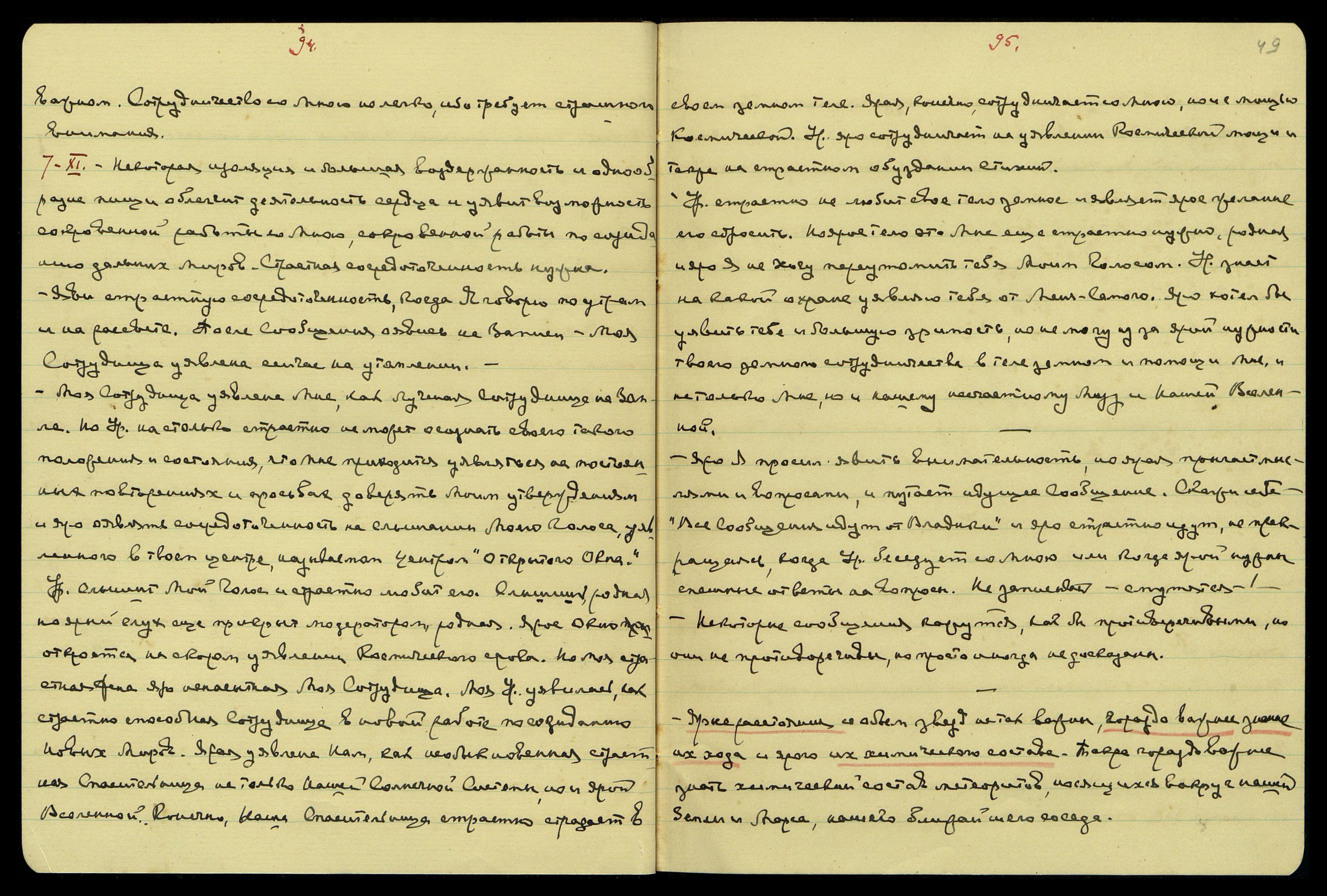 Скажи Валент[ине] и об участии в космических оявлениях и, конечно, о проблесках уже оявленных твоего участия в Космическом строительстве, но только о проблесках, иначе твоя земная оболочка износилась бы вне срока. Яро уяви ей благое слово на ярый новый путь. Ояви ей о наводнении в Н[оябре] обычном, но немного сильнее.