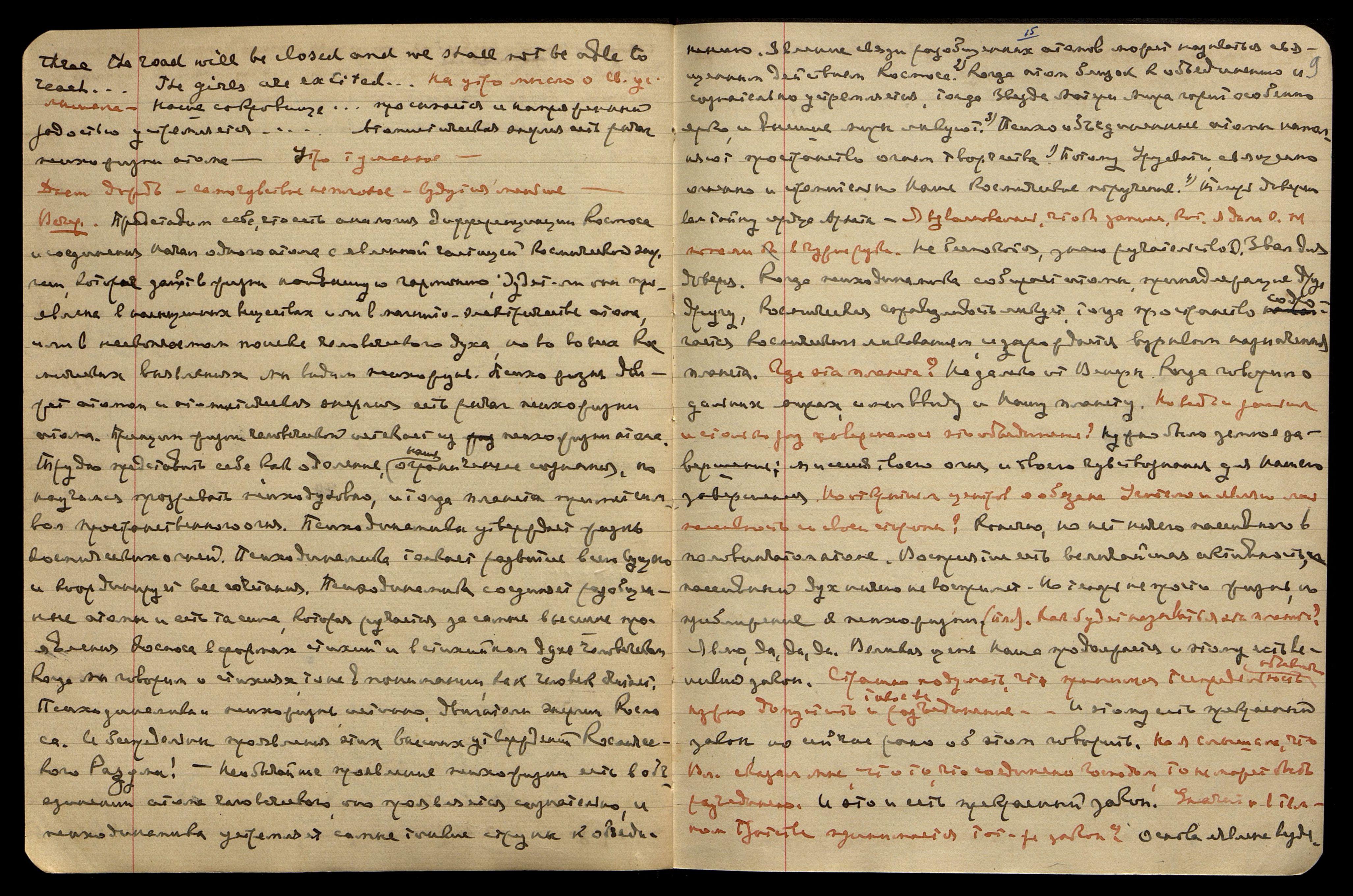 three the road will be closed and we shall not be able to reach [англ.: В половине четвёртого дорога будет закрыта, и мы не сможем добраться]... The girls are excited [англ.: Девочки в восторге]..." На утро мысль о Св[ятославе], услышала... "Наше сокровище... просыпается и напряжённый радостью устремляется... Атомистическая энергия есть рычаг психожизни атома".