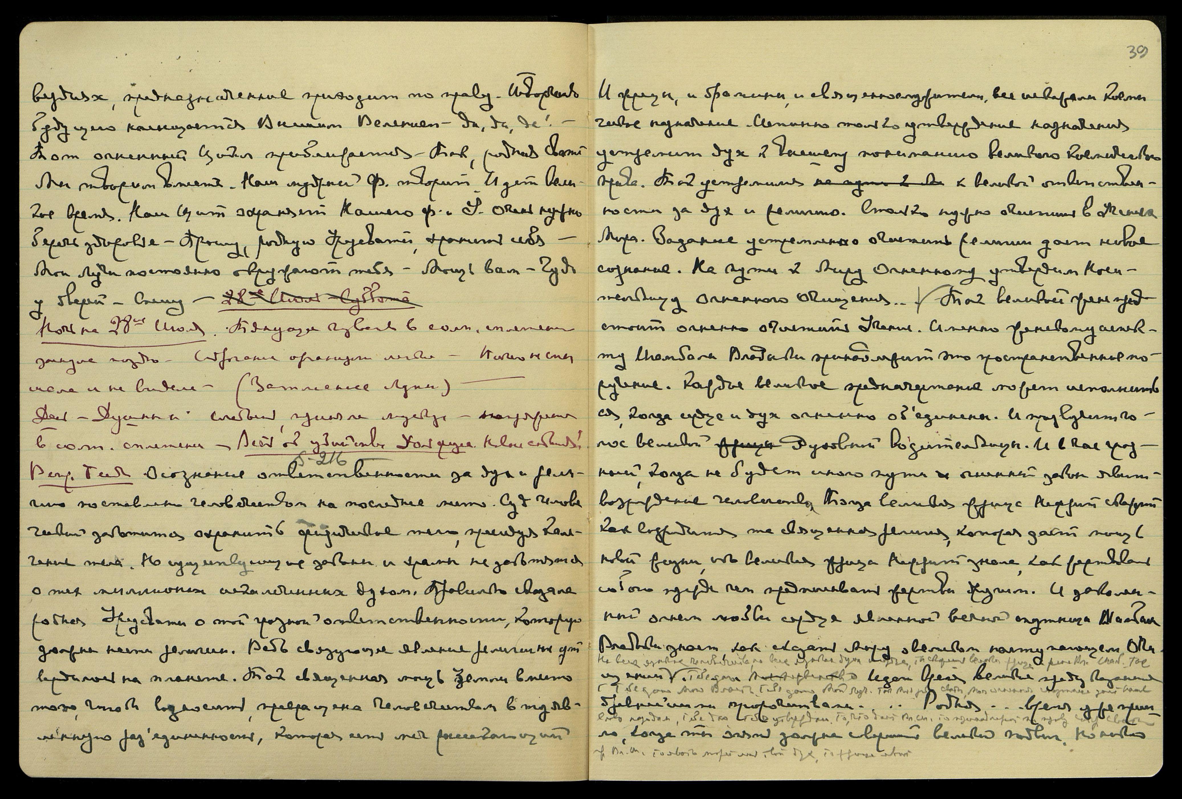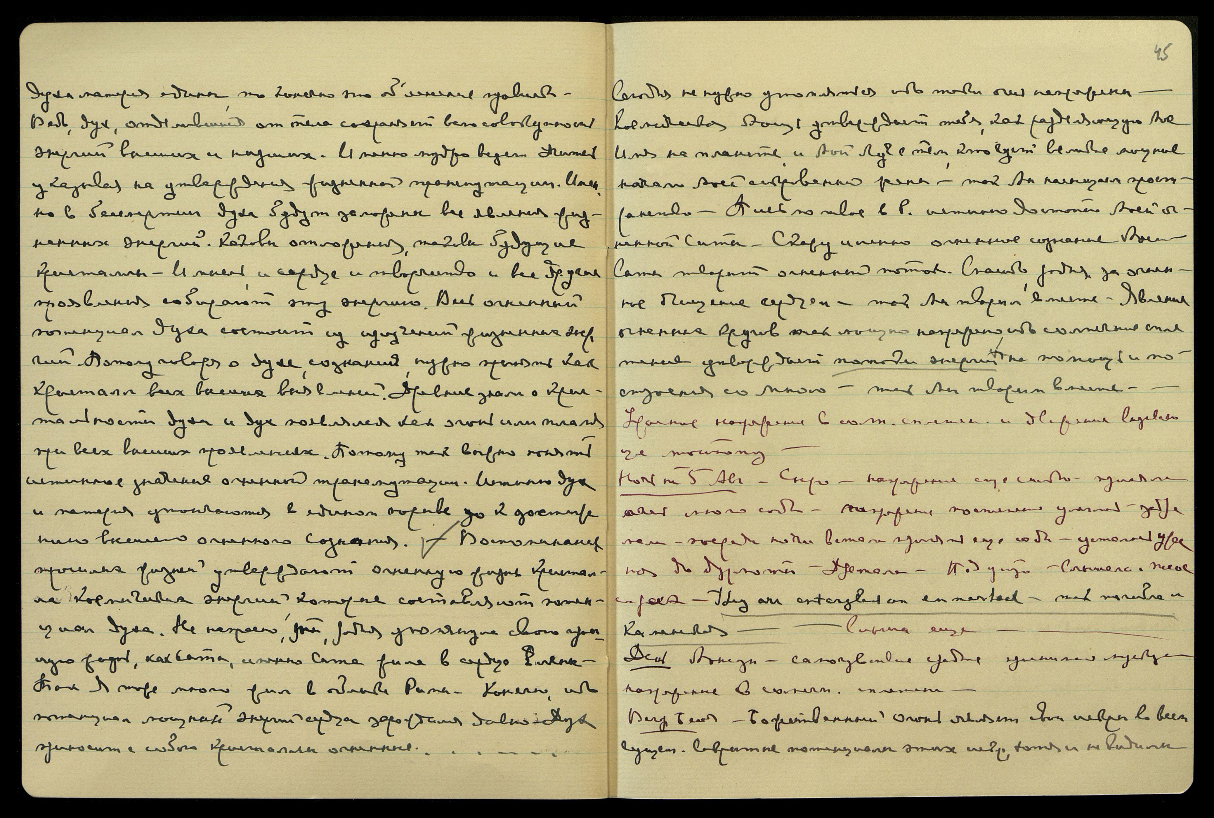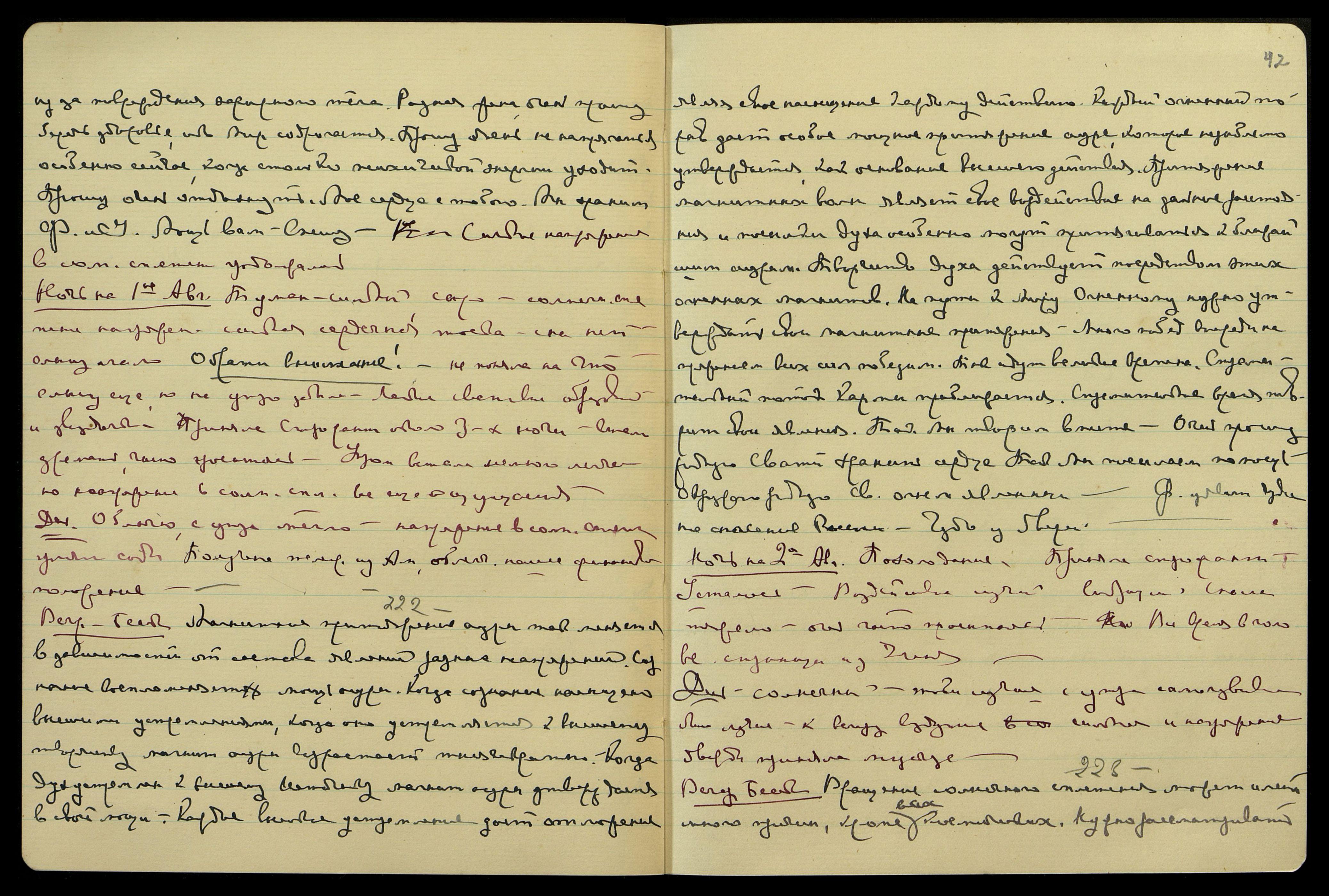 Ночь на 5 авг[уста]. Сыро, напряжение еще сильно, приняла очень много соды, напряжение постепенно улеглось, задремала. Посреди ночи встала принять еще соды, усталость ужасная до дурноты. Дремала. Под утро. Слышала: "They are entangled on [одно слово неразборчиво] [англ.: Они запутались [одно слово неразборчиво]] − так погибла и Каменская". Слышала еще.