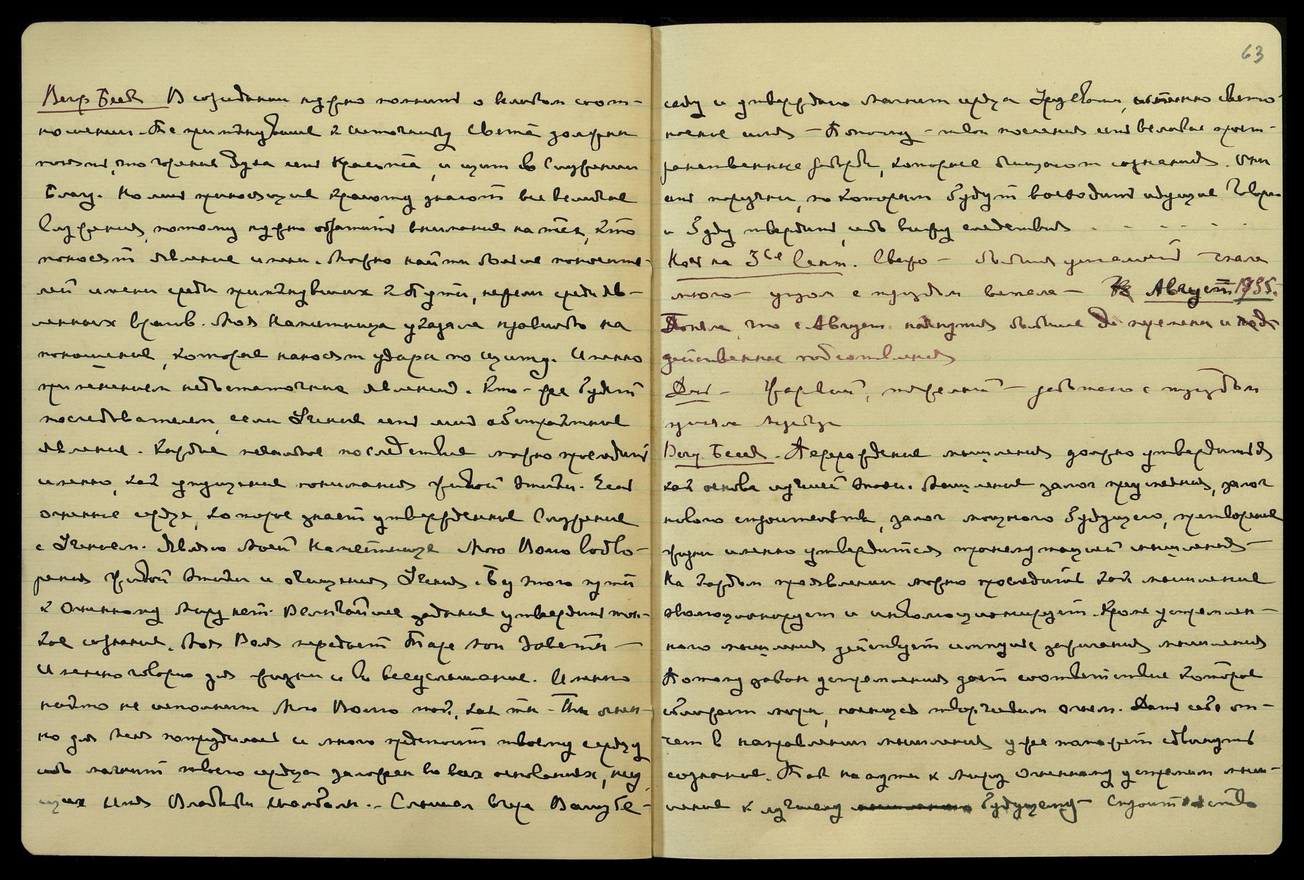 Ночь на 9-е сент[ября]. Свежее, ясно, усталость и сильная вздутость и напряжение, боль в солнечном сплетении. Приняла огромную порцию [одно слово неразборчиво] и порцию соды, часа в три заснула. Слышала четко. Кое-чего записала: "Бедняга Воняцкий... их так ловят там!... Тяжко жить и идти с идиотами!... На похоронах мужа... Жутко - пустыня!..." Всё относится к России и [одно слово неразборчиво]. Утром встала уже с напряжением в солн[ечном] сплетении.