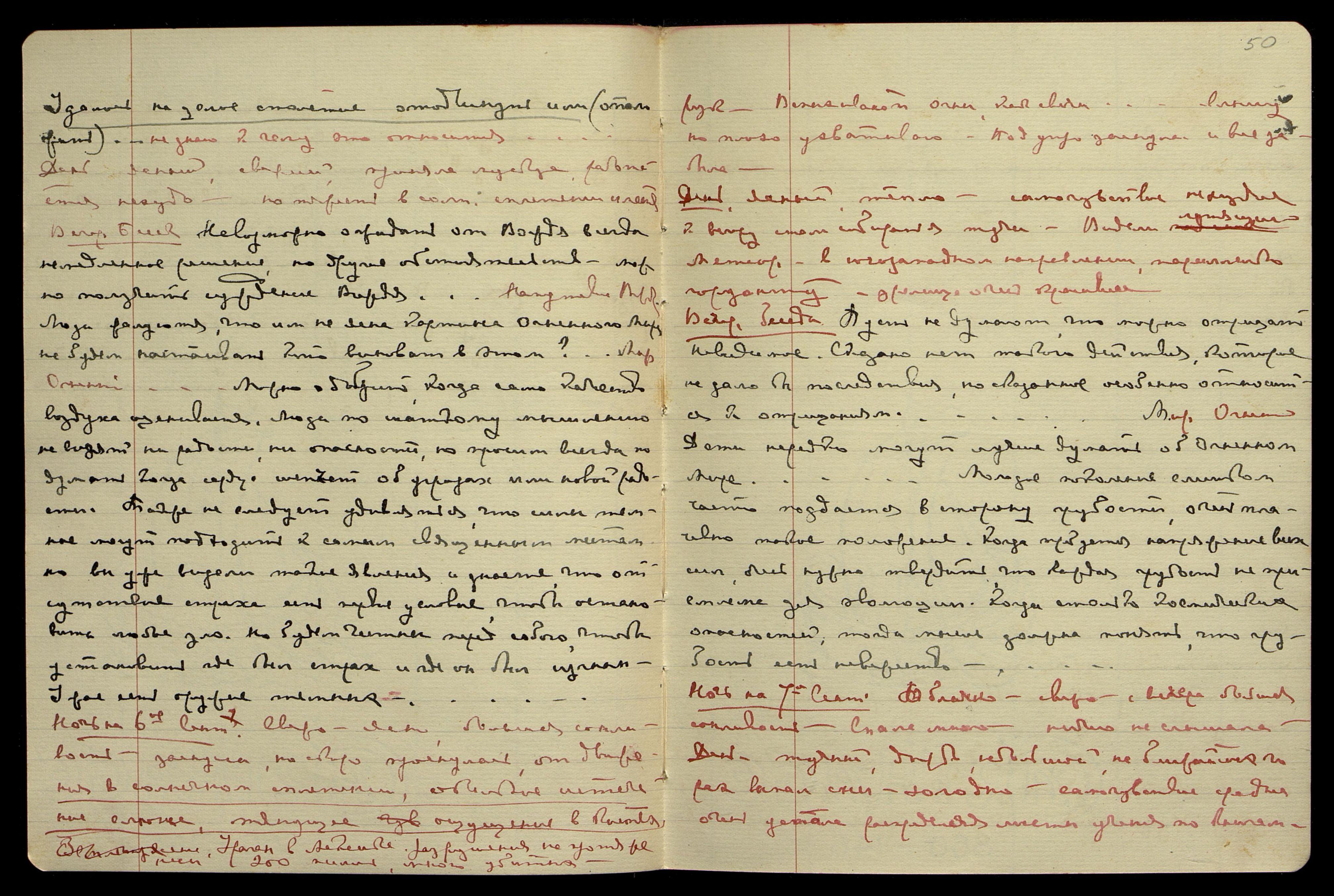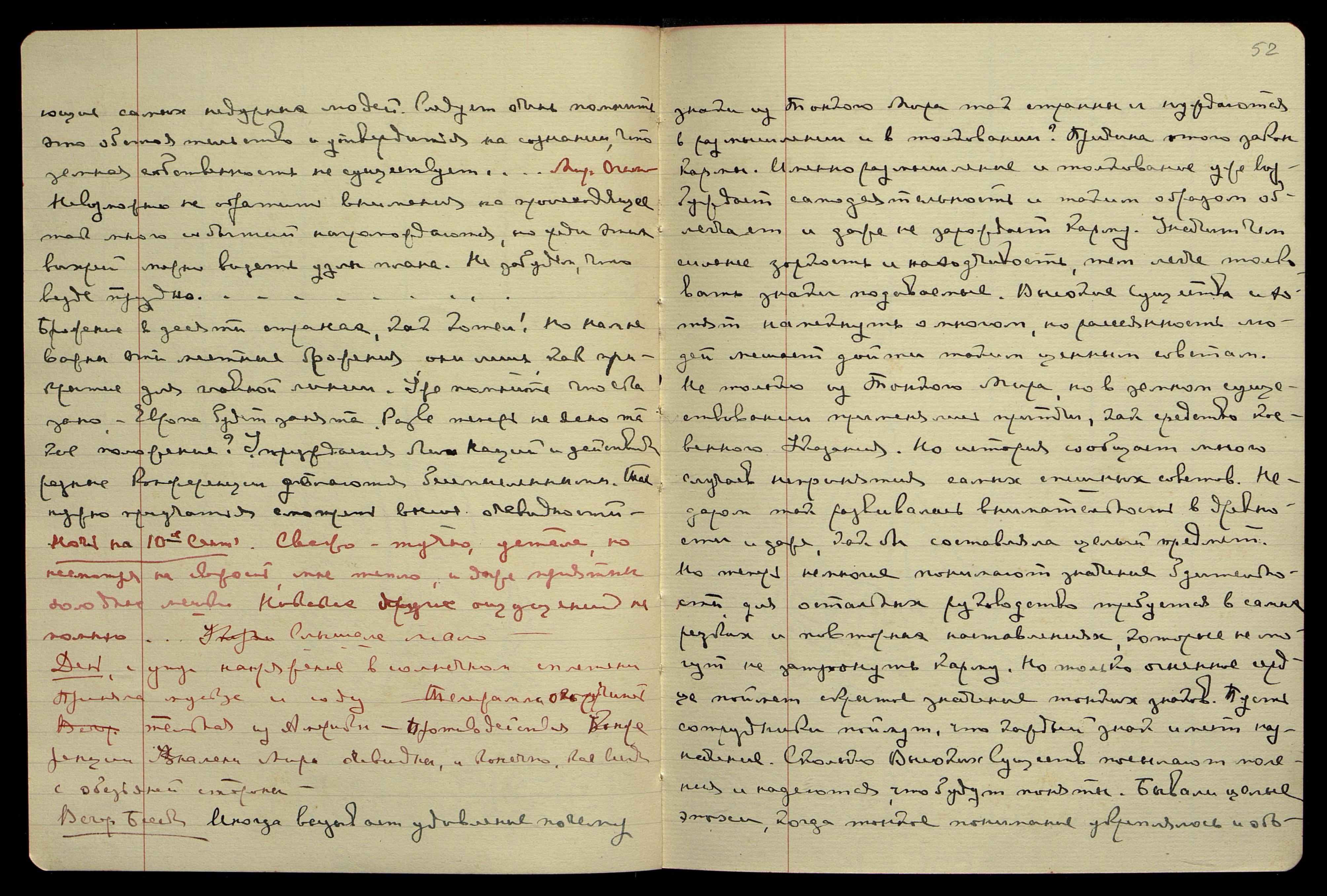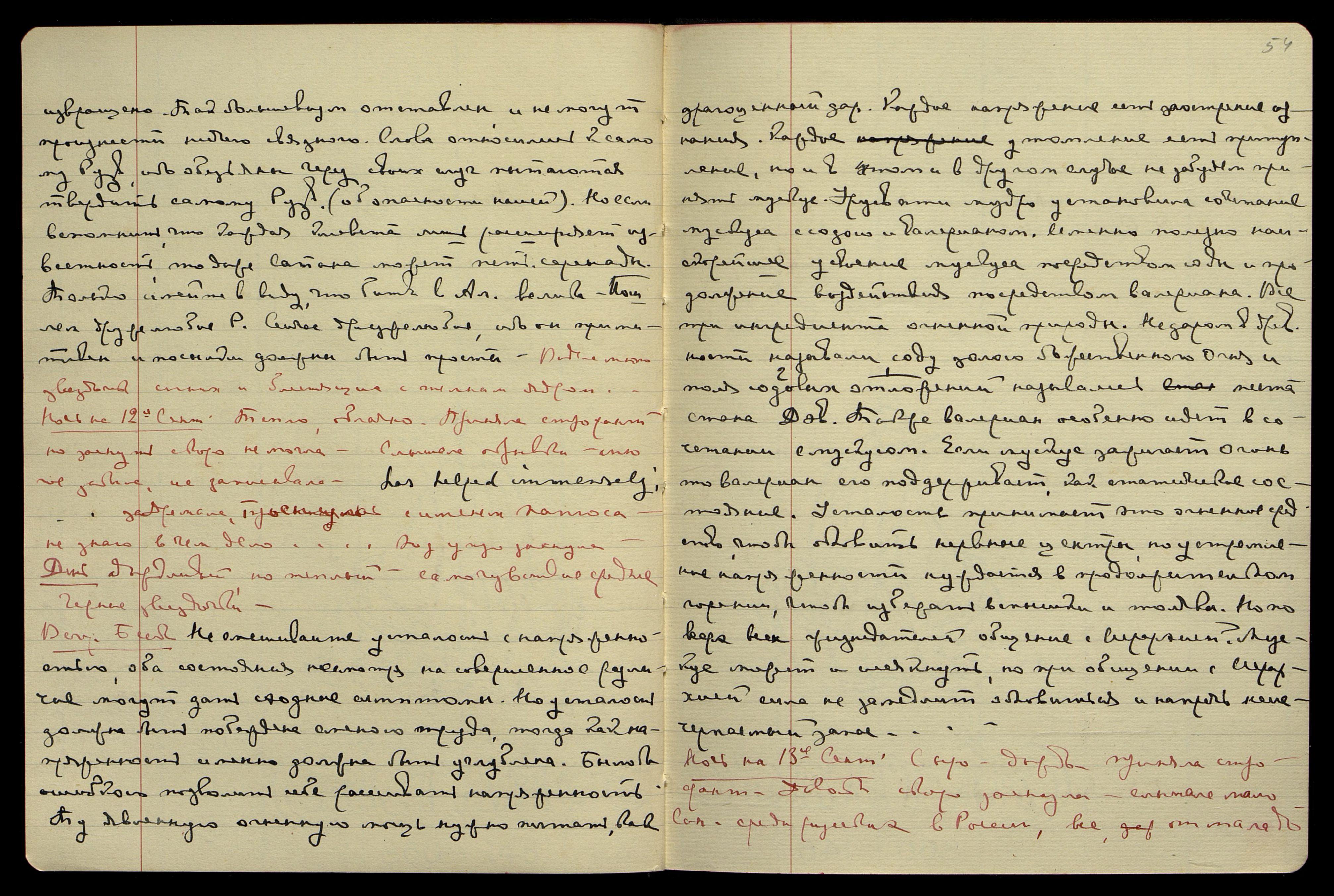 Ночь на 16-е сентября. Ясно, свежо, приняла строфант, чувствительность в почках. Скоро заснуть не могла. "Николай Петрович... Ты сам видел и мог судить... Отсутствие Конклава... мог выступить... ошибка одна была... он наступил... опять дрянь такая... Битва велика... Альфа и Омега..." Видение вереницы людей, волосатых, с бородами, должно быть русские, но очень неясное... Световые образования... "Вместо Л... я был избран Президентом... Mediocrity. [англ.: Посредственность.]" − М[ожет] б[ыть] относится к Р[узвельту] и W[allace. Около 3-х часов заснула, был сон, должно быть замечательн[ый]. Просыпаясь, удивлялась, но заснув, всё забыла. Проснулась усталая и с болью в пояснице.