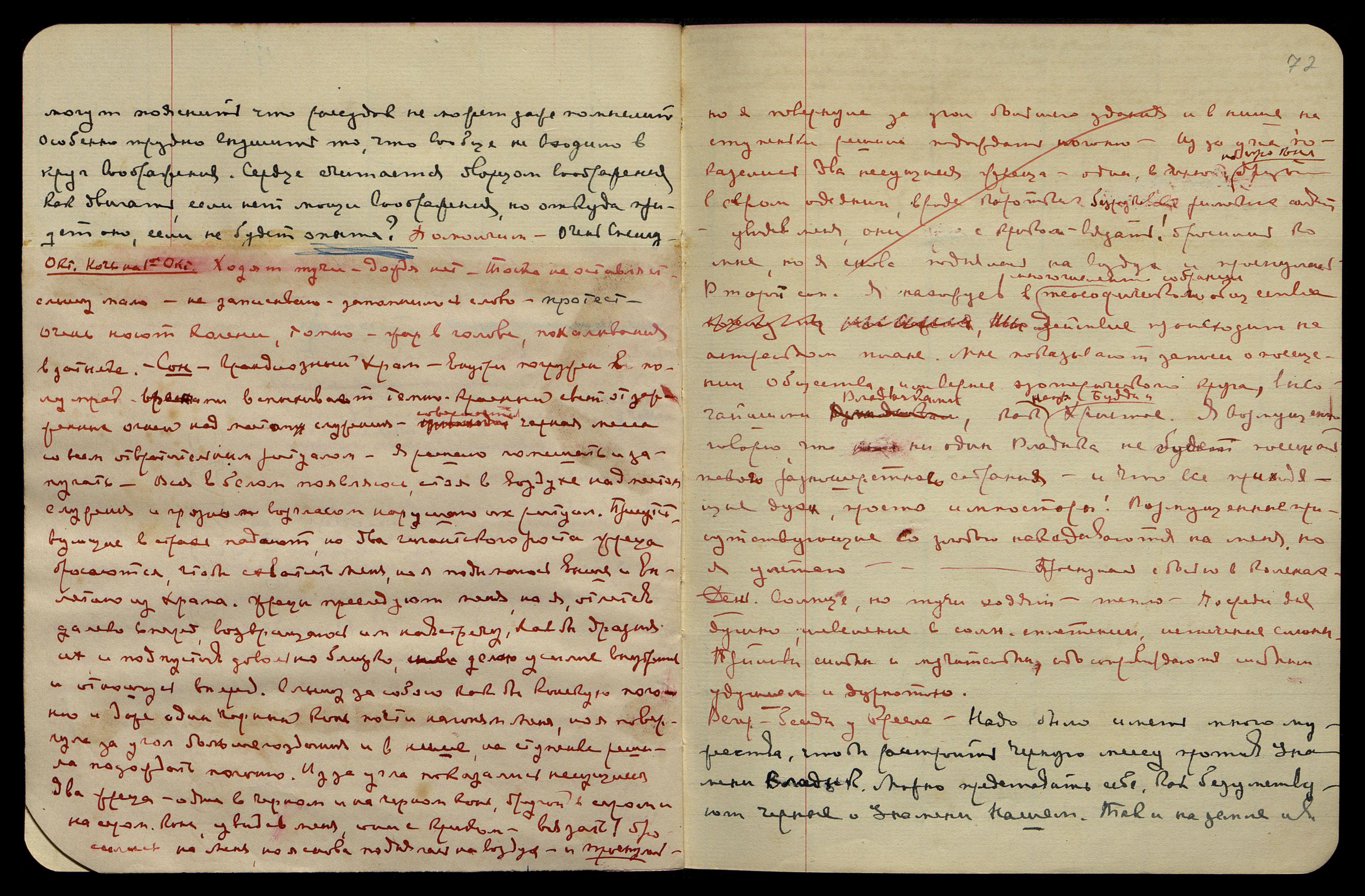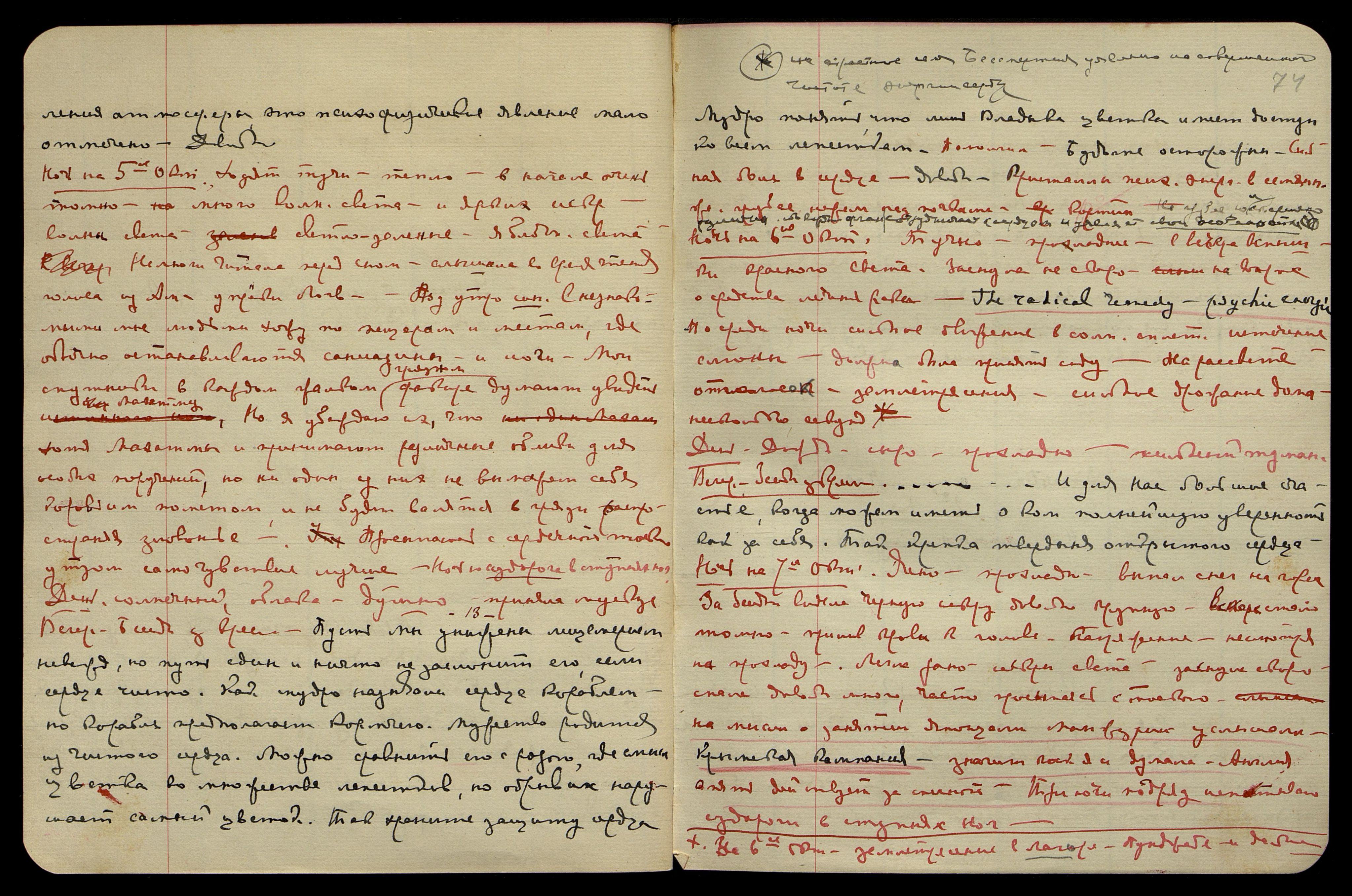 Ночь на 27-е сент[ября]. Полнолуние, затмение полное, дождь почти всю ночь. С вечера напряжение в животе, лёгкая тошнота, 4 чёрн[ые] маленьк[ие] звёздочки. Встали в 3 1/4 ч., ибо в 5 часов утра уезжала О[яна] в Америку. С вечера слышала: "Правильно! Это преступление... Синтез синтезов". Причём слова отзывались тоскою в сердце.
