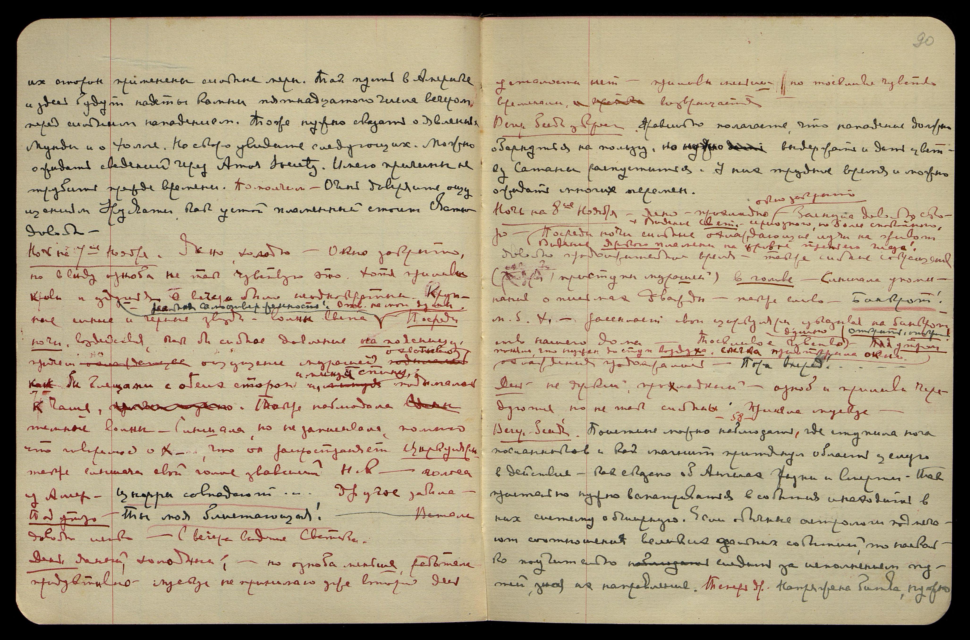 Нужно принимать меры к битве семнадцатого ноября. Можно завтра телеграфировать, чтобы каждый взял по Камню от О[яны] и держал бы его при себе. Из трёх оставшихся один дать Катрин и два хранить в Башне. Также Морис может приблизиться к Амос Society* и встретить Зингера, полезно для Таймса**. Также пусть спросят Уайтсайд*** узнать от Дабо*4, откуда слышит он клевету. По-прежнему полезно посетить Келли, явление католического мира обернём на пользу. Можно телеграфировать о Камнях и обществе Амоса, остальное − в письме. Так будем принимать меры здесь. Также имейте камни при себе, начиная с 15-го числа. Могут в Америке собраться в Башне пятнадцатого числа. Помолчим. Также вчера была битва. Можно после такой битвы как можно прямее держать позвоночник. Довольно.