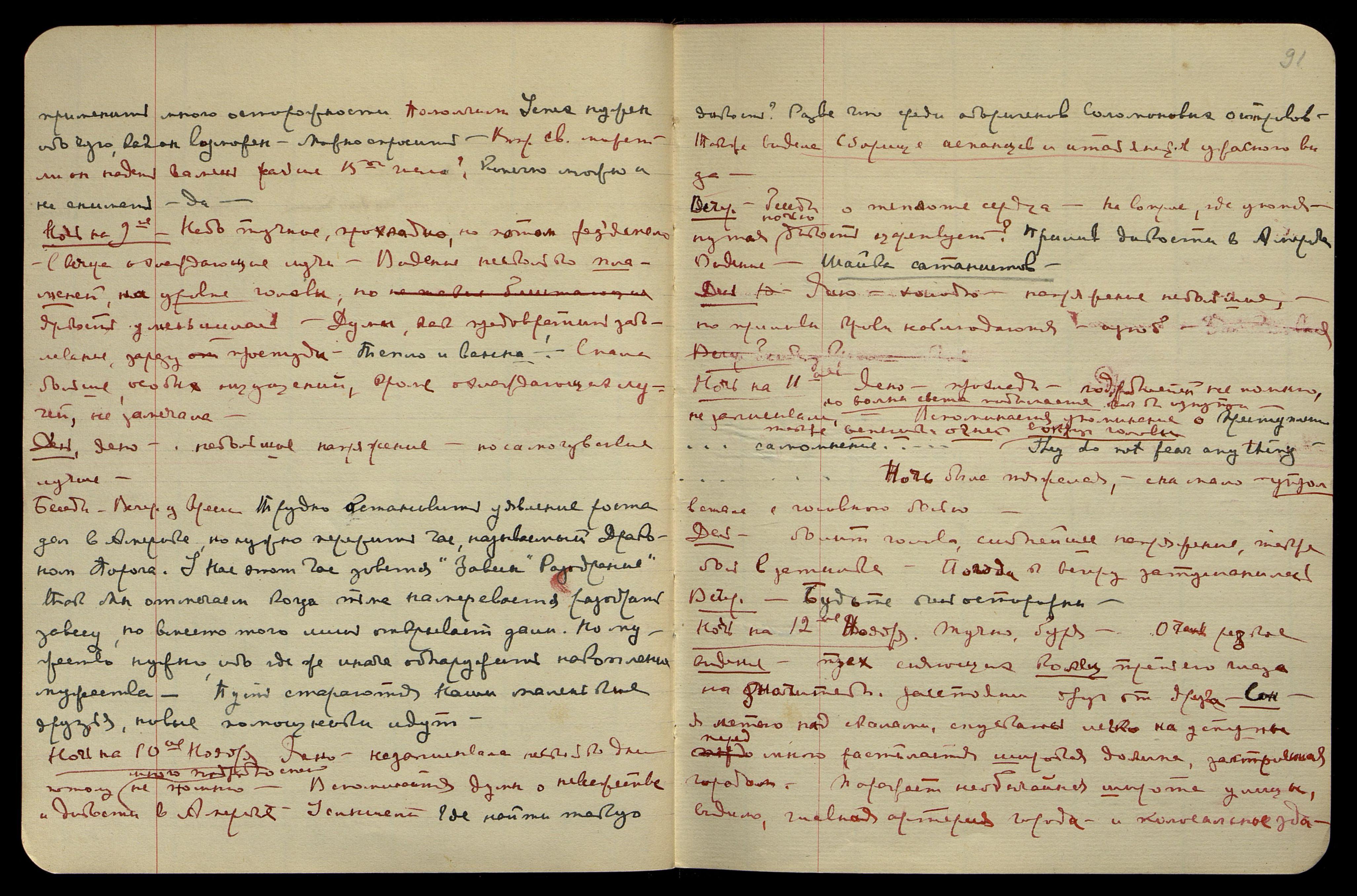 Ночь на 10-е ноября. Ясно, не записывала несколько дней, потому много подробностей не помню. Вспоминаются думы о невежестве и дикости в Америке. Услышала: "Где найти такую дикость? Разве что среди аборигенов Соломоновых островов". Также видела сборище испанцев и итальянцев ужасного вида.