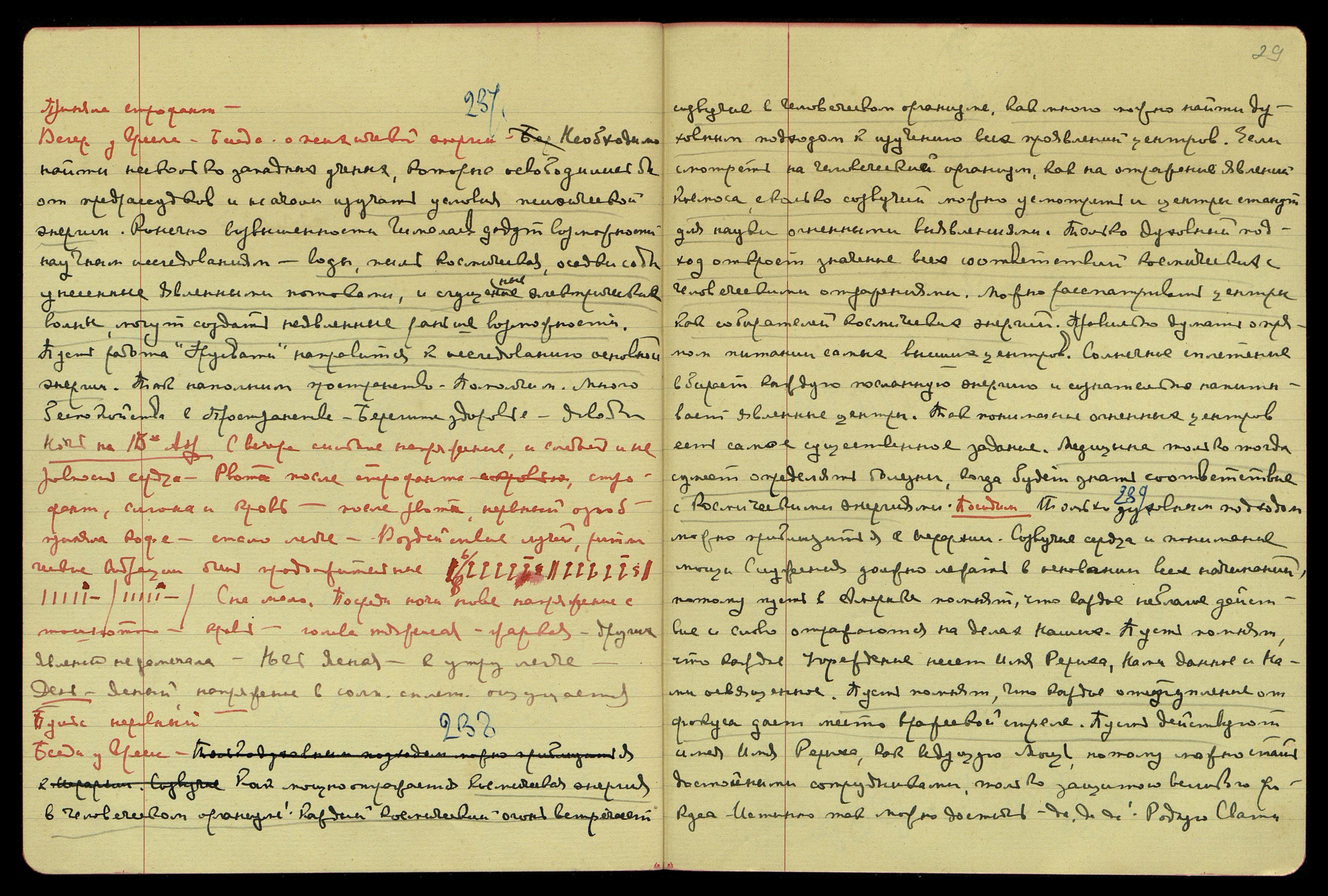 День. Ясно, но очень тяжелые токи. Напряжение в солн[ечном] спл[етении] не наблюдала. Но к пяти часам сильнейшая усталость от чрезмерной работы сопровождалась сердечной тошнотой. Приня-