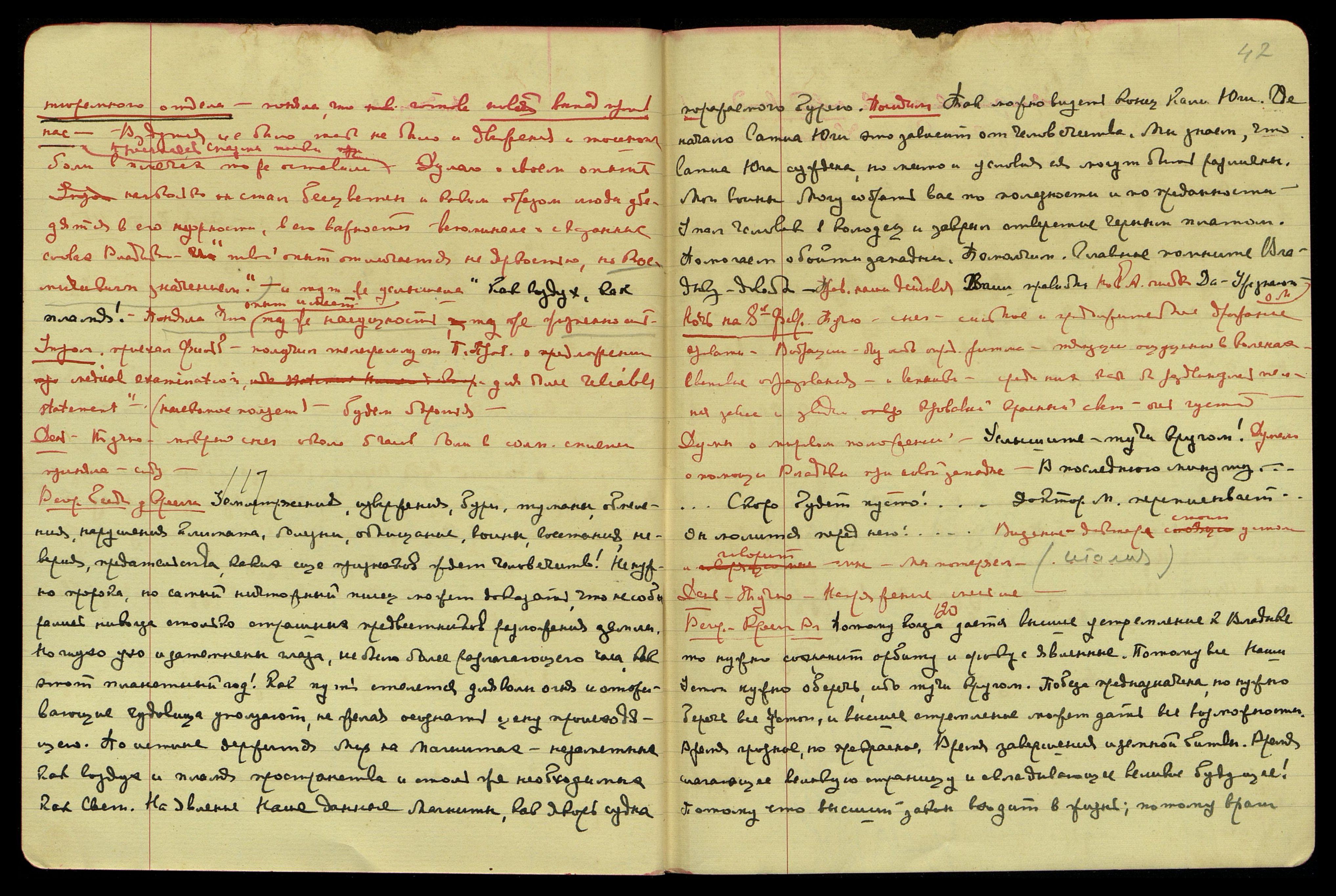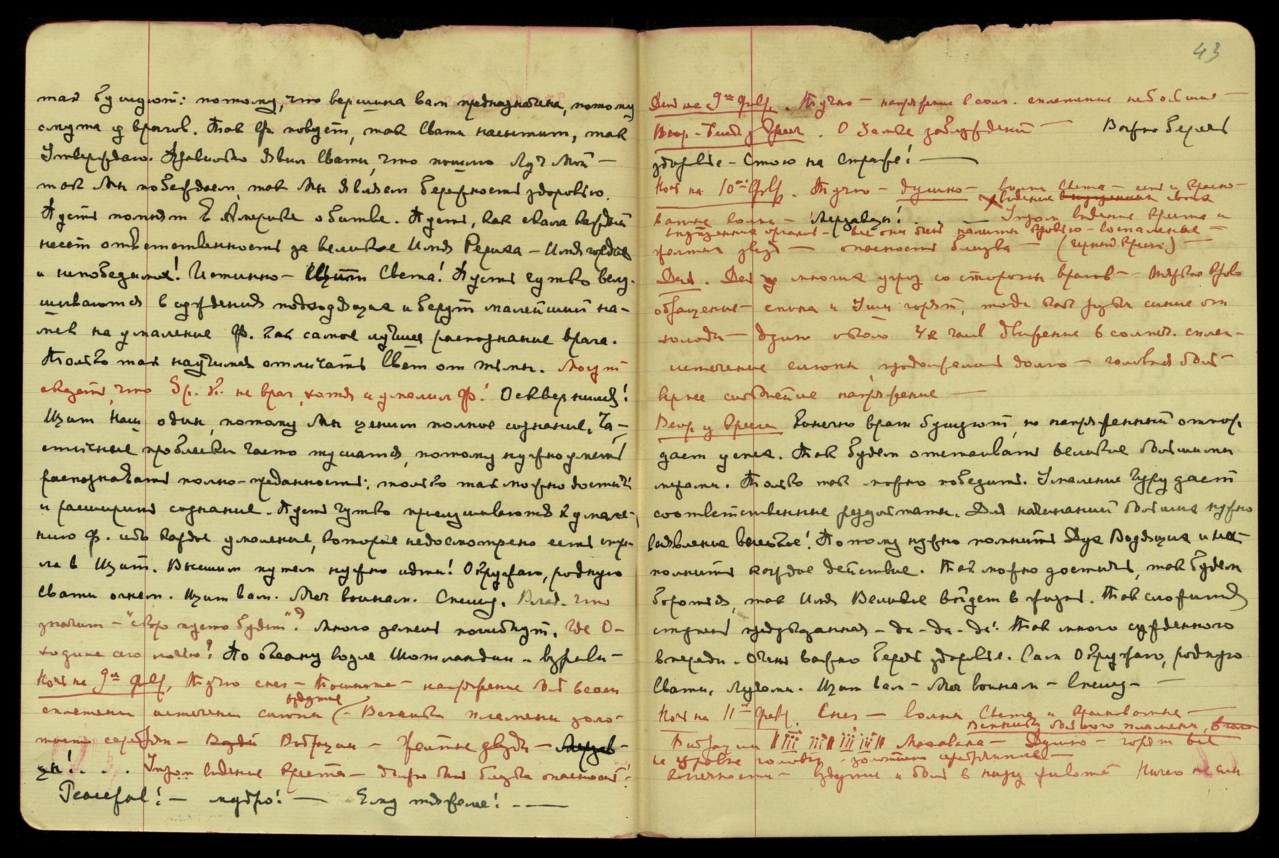 Ночь на 9-е февраля. Тучно, снег. Тошнота, напряжение боль в солн[ечном] сплетении, истечение слюны, вздутие живота. Блики пламени золотисто-серебряные. Вибрации. Жёлтые звёзды. Мерзавцы! Утром видение креста. Должно быть, близко опасность. Генерал! Мудро! Ему тяжелее!...