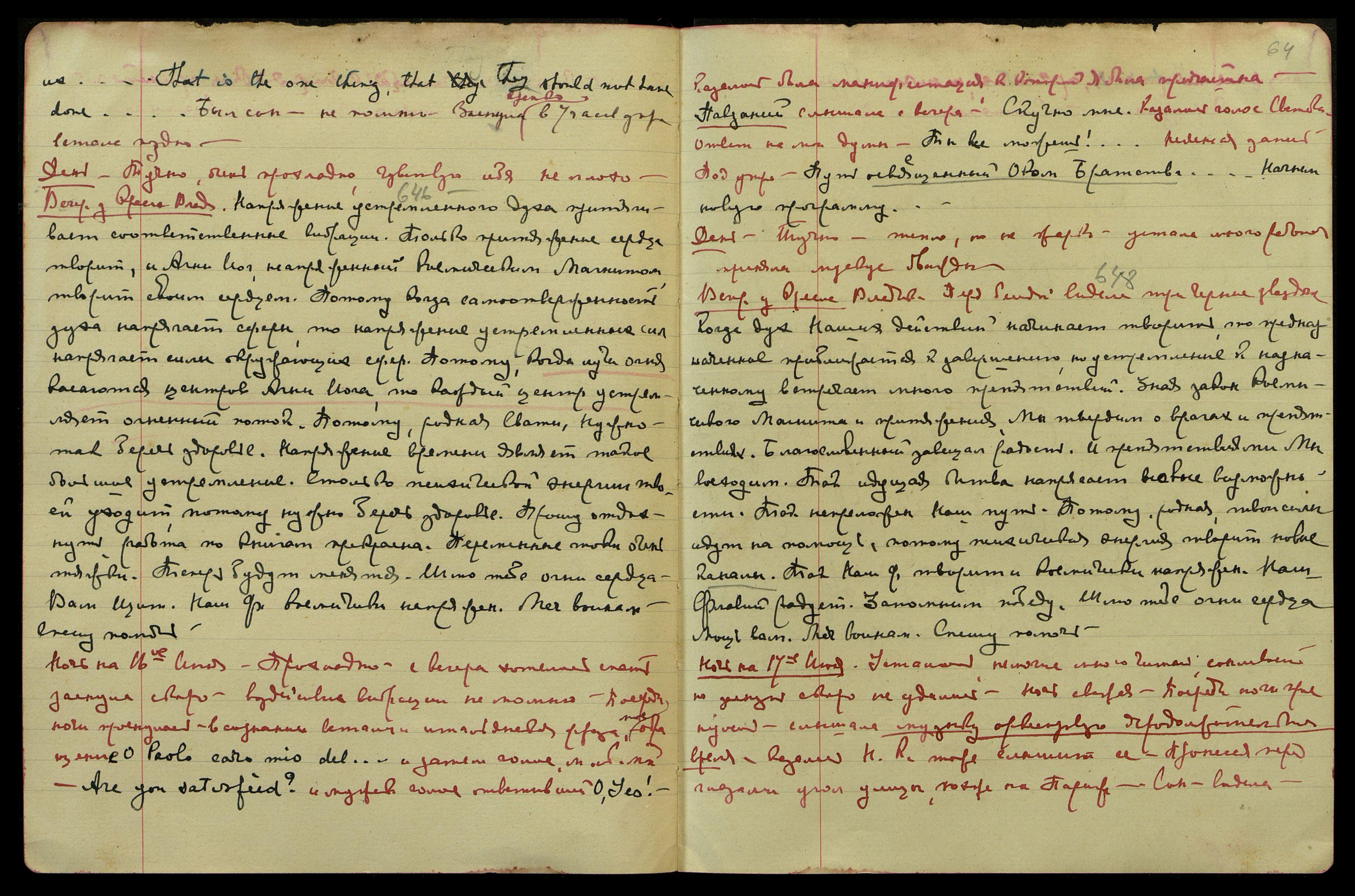 Ночь на 17-ое июня. Усталость, не могла много читать, сонливость, но заснуть скоро не удалось. Ночь свежая. Посреди ночи проснулась, слышала музыку оркестровую продолжительное время. Казалось, Н.К. тоже слышит её. Пронёсся перед глазами угол улицы, похоже на Париж. Сон, видела