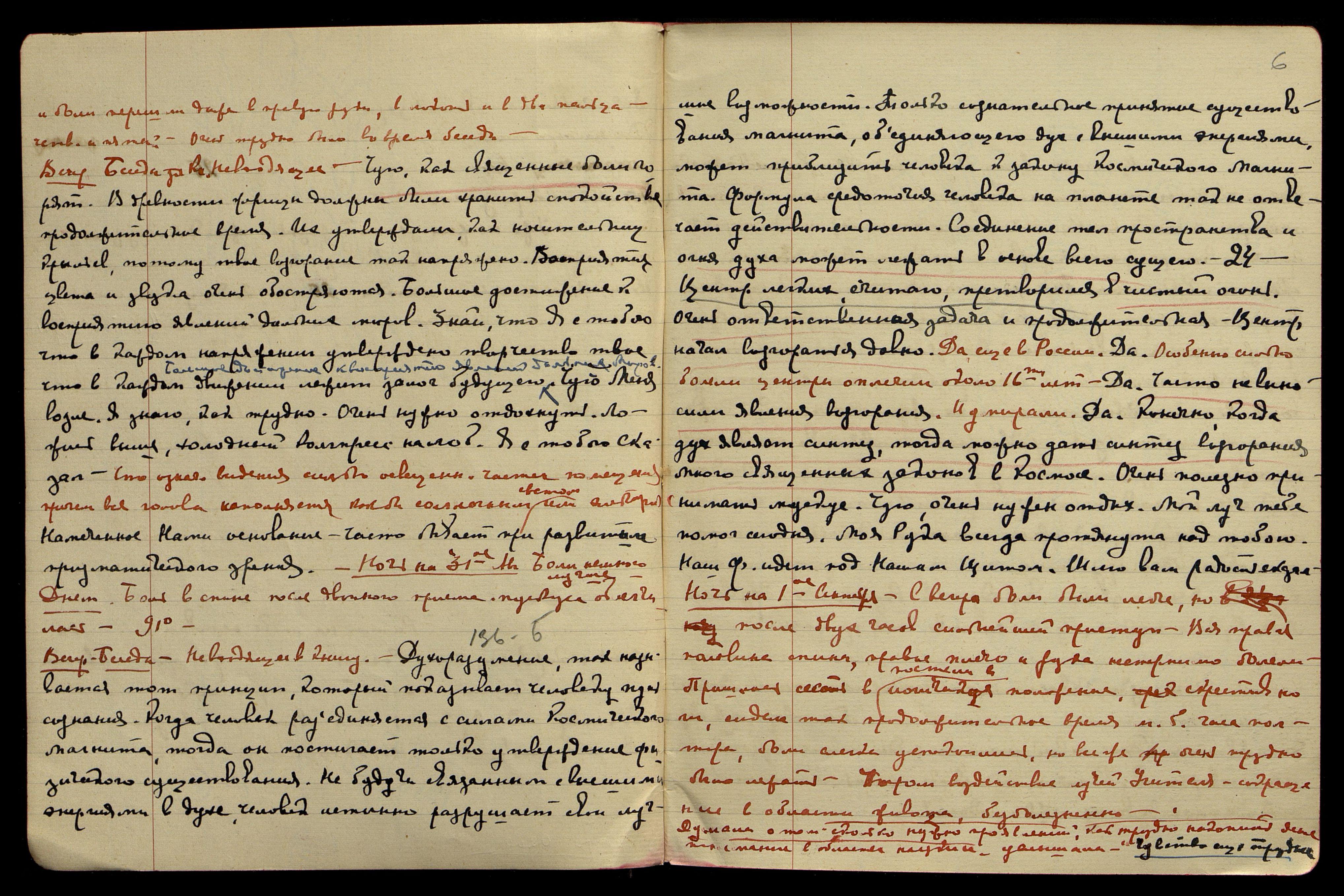 Название, датировка и формат оригинала на сайте ГМР: Записи бесед с Учителем. [«Огненный опыт» вариант I] «Урусвати» Тетрадь 6. 1929.08.26 - 1929.10.22 автограф русский 48 Тетрадь «Vendel-Shakespeare» (Франция, Париж), форзац отсутствует
