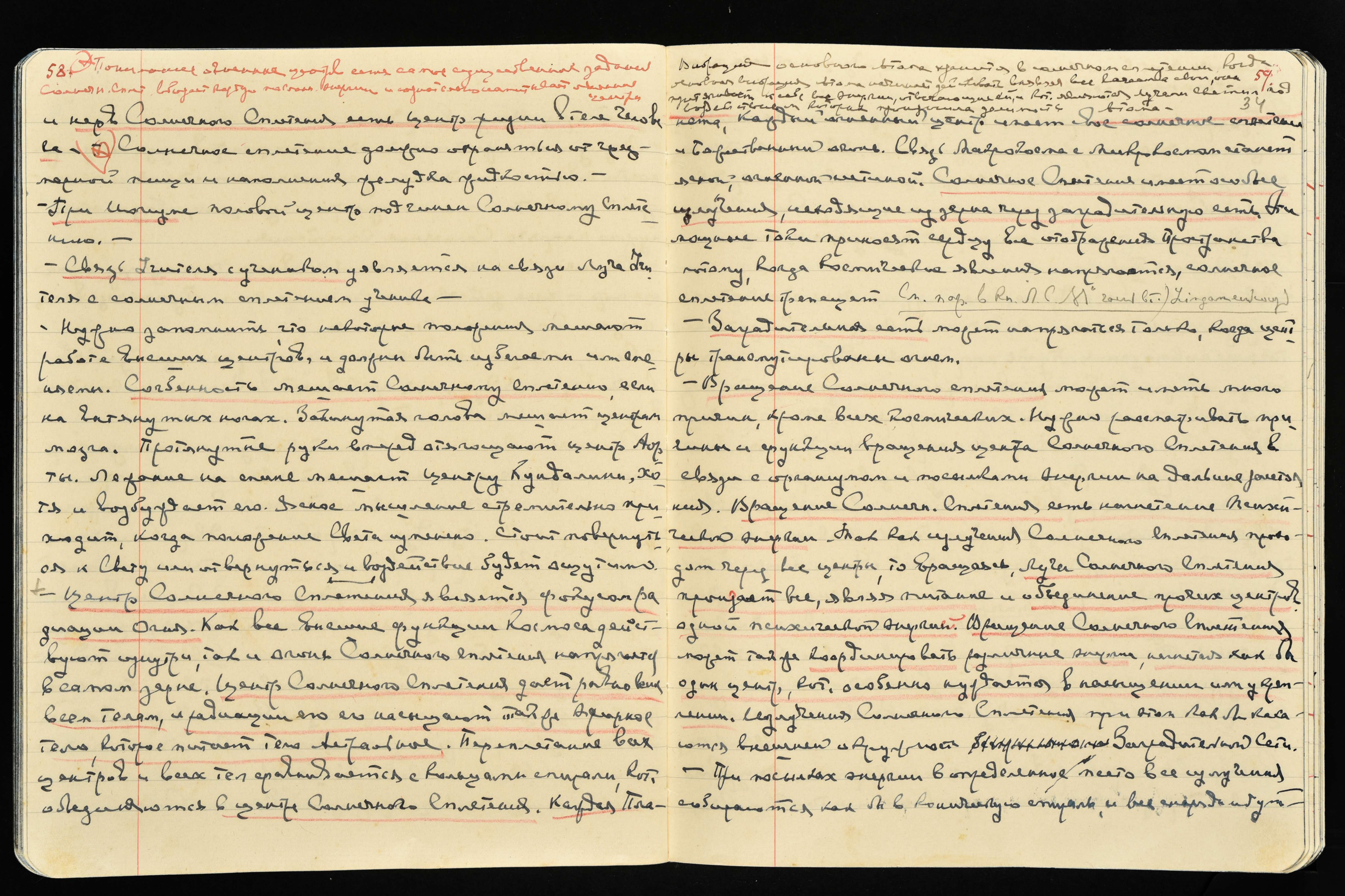 и нерв Солнечного Сплетения есть центр жизни в теле человека. Понимание огненных центров есть самое существенное задание. Солнечн[ое] Сплет[ение] вбирает каждую посланную энергию и сознательно напитывает явленные центры. Солнечное сплетение должно охраняться от чрезмерной пищи и наполнения желудка жидкостью.
