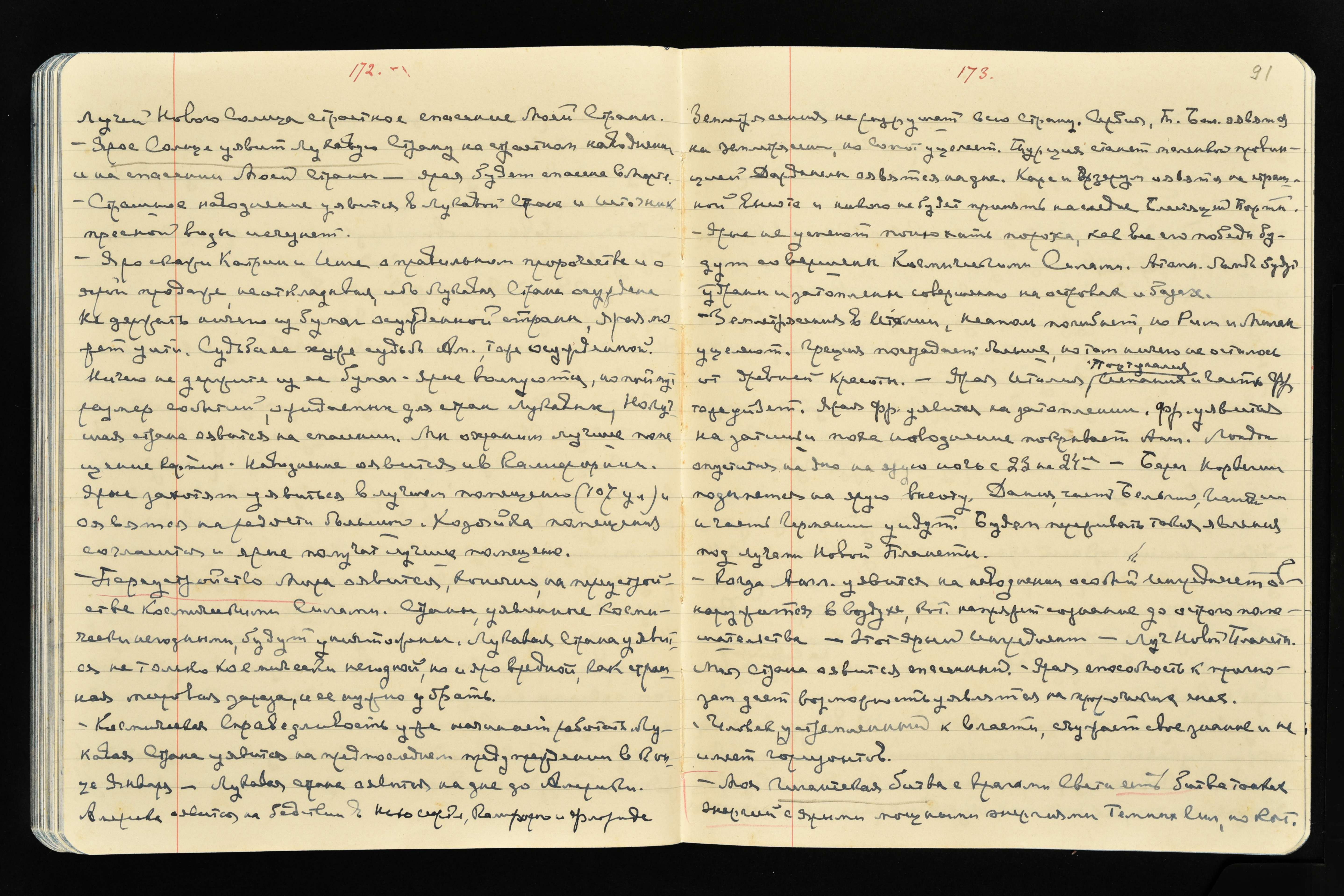 Лукавая страна оявится на дне до Америки. Америка оявится на бедствии в Нью-Йорке, Калифорнии и Флориде. Землетрясения не разрушат всю страну. Сербия, Т[урция], Бол[гария] оявятся на землетрясении, но Сопот уцелеет. Турция станет маленькой провинцией. Дарданеллы оявятся на дне. Карс и Эрзерум оявятся на страшной высоте, и никого не будет принять наследие Блестящей Порты.