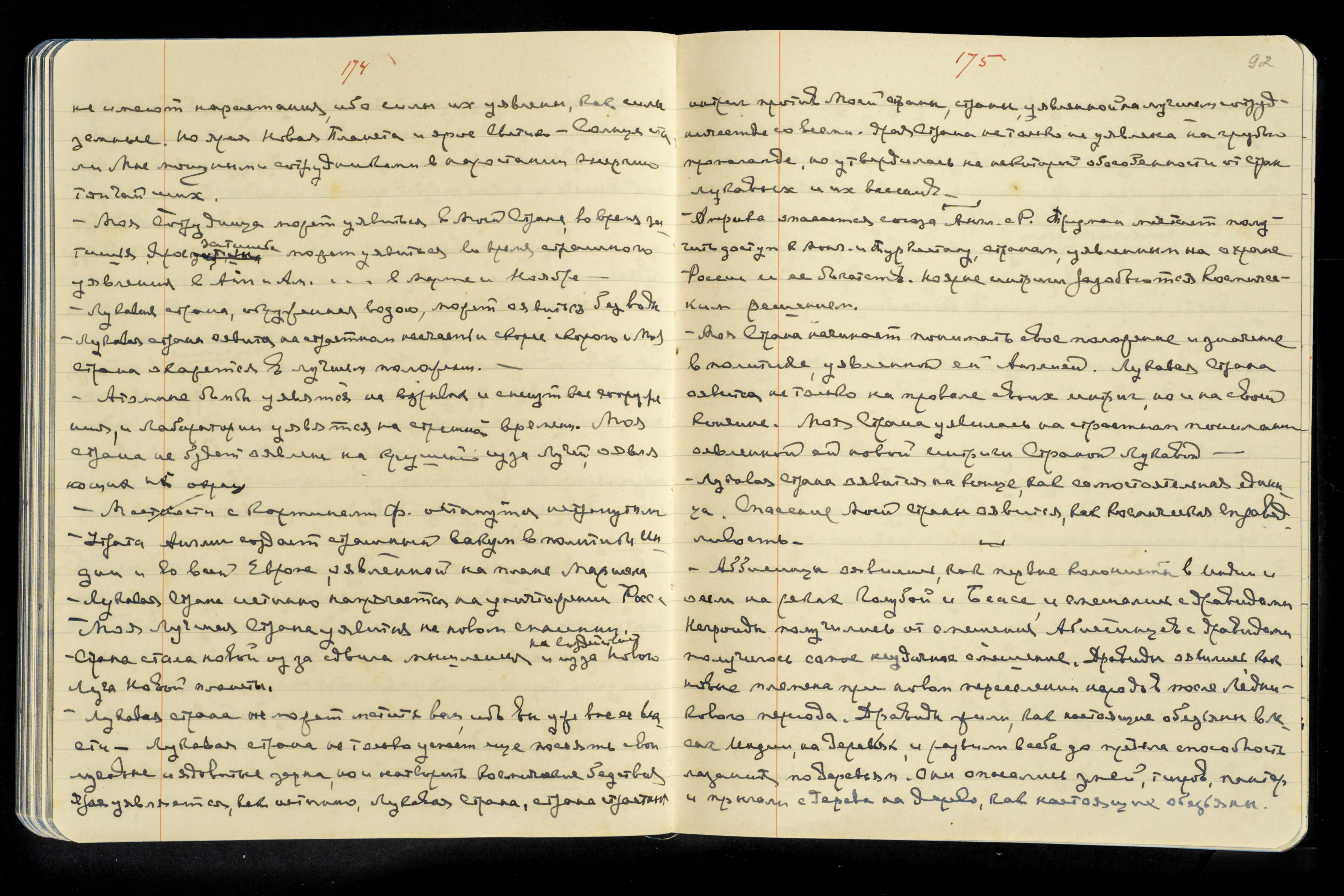Новая страстная ступень в Р[оссии] − прекрасное откровение. Страна оявится на осознании невозможности служить удаву совести и мысли. Страна изжила много страстных борений. Страна оявится на желании новой свободы совести и мысли. Твои книги уявились, как новые откровения, родная, и лукавая страна стала уявляться на страстном желании разрушить Мою страну.