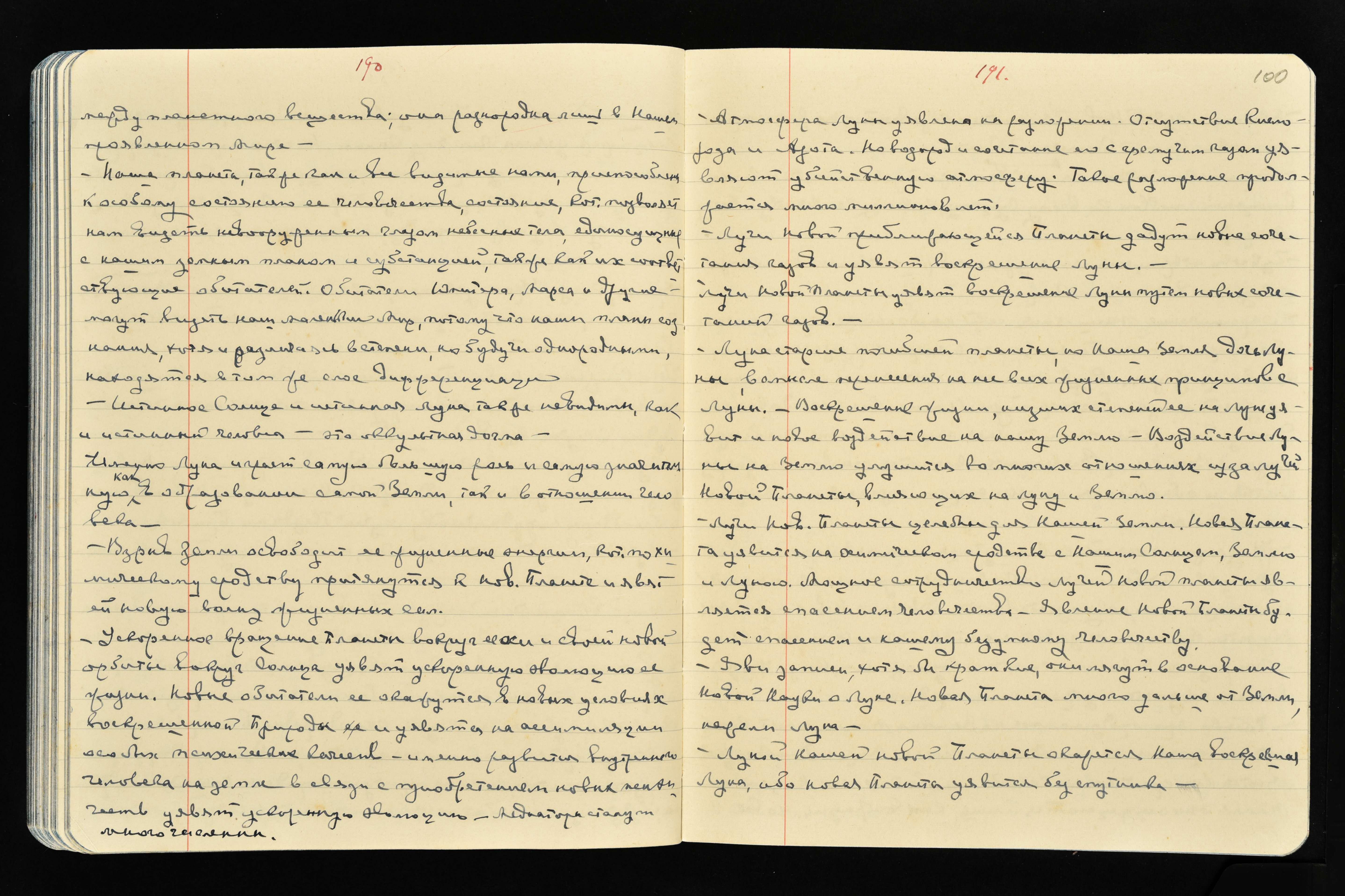 Лучи Нов[ой] Планеты целебны для Нашей Земли. Новая Планета уявится на химическом сродстве с нашим Солнцем, Землёю и Луною. Мощное сотрудничество лучей новой планеты является спасением человечества. Явление Новой Планеты будет спасением и нашему безумному человечеству.