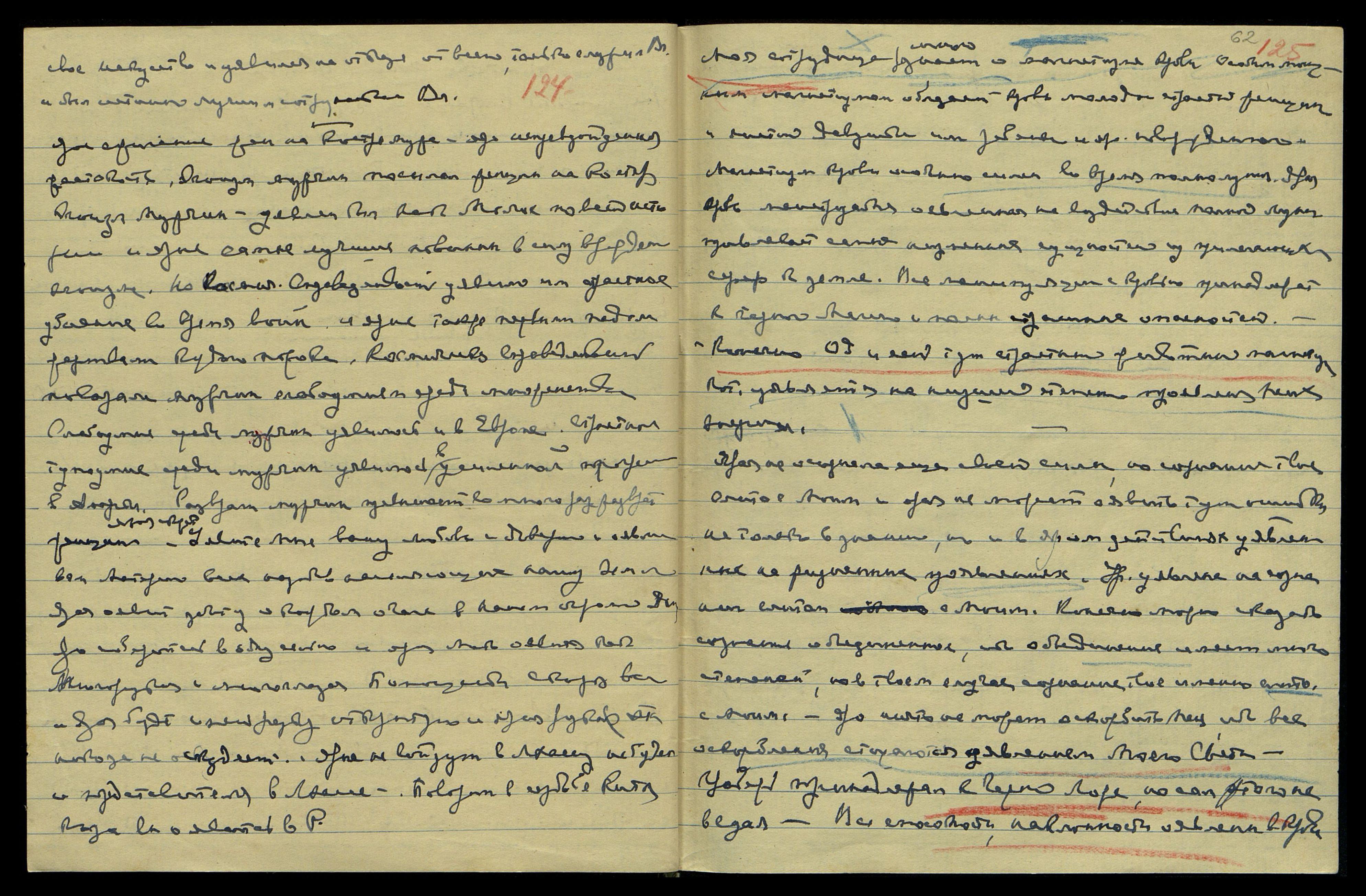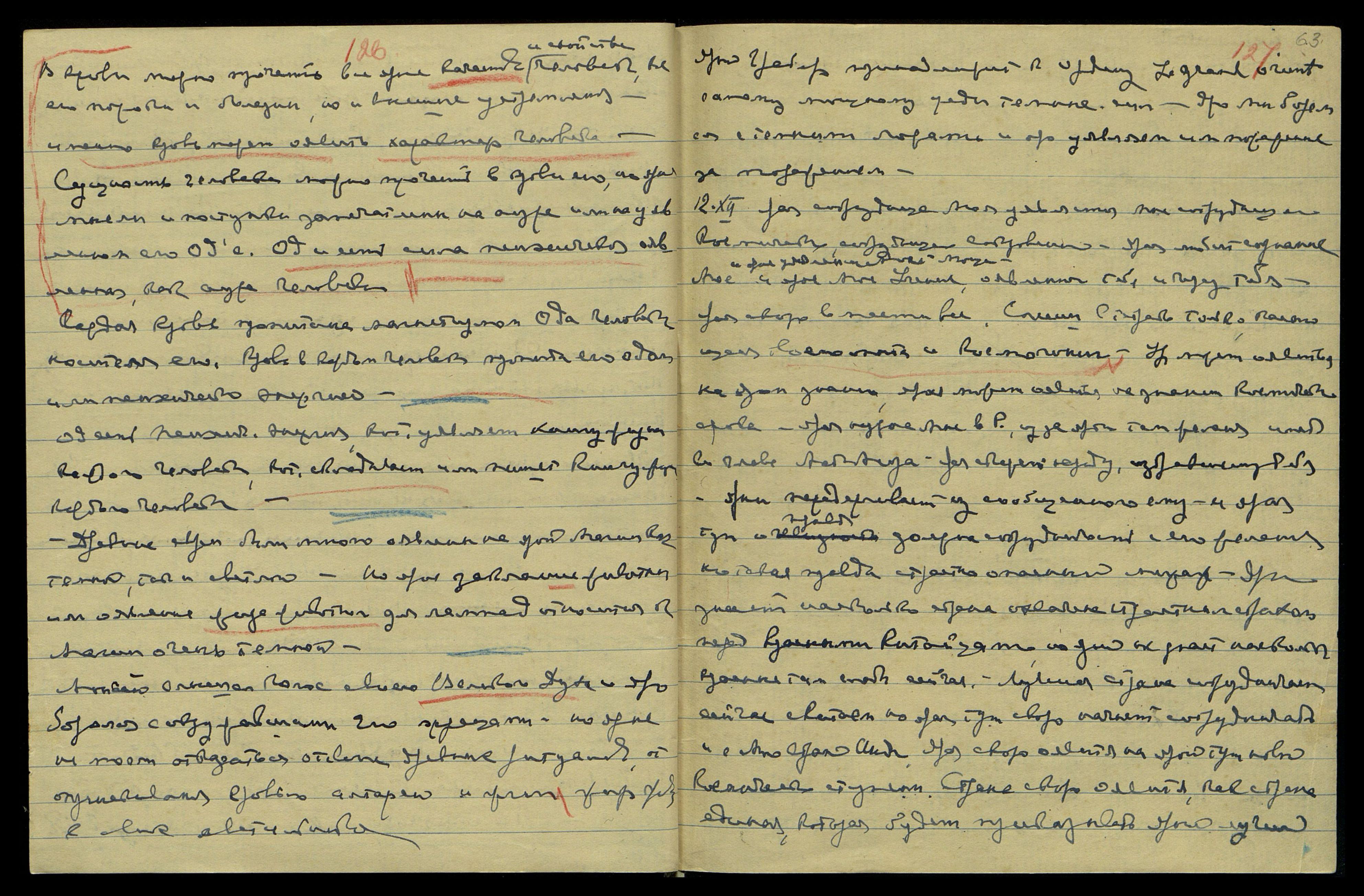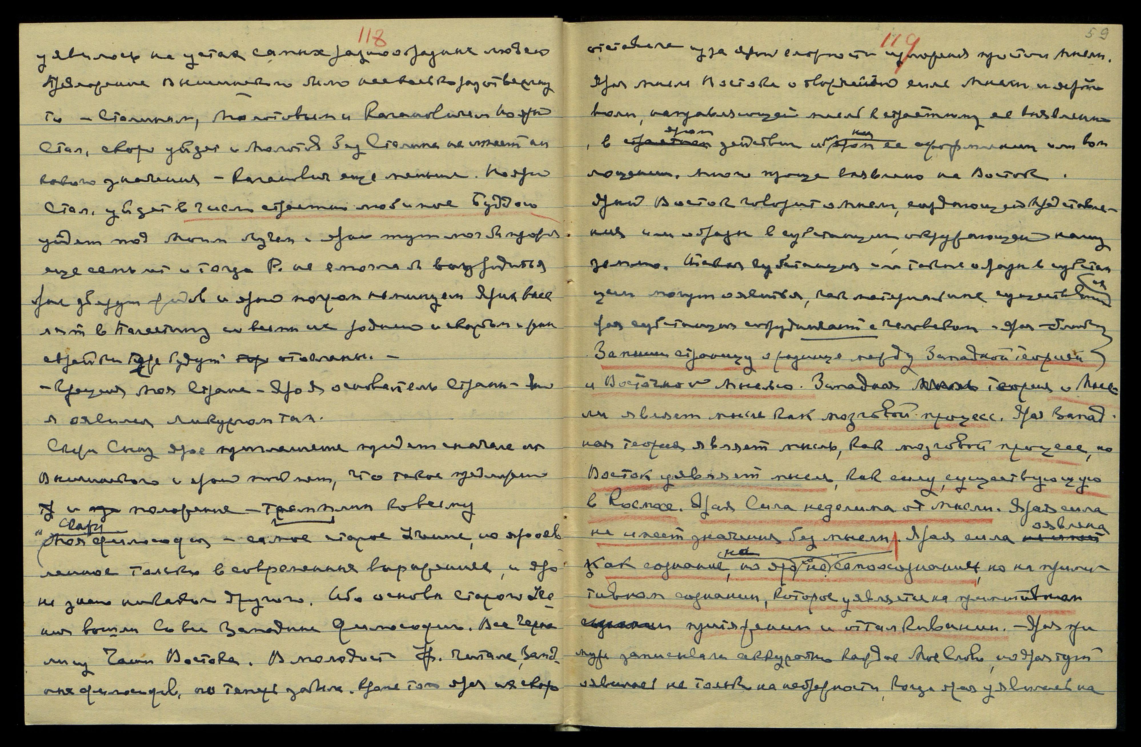 уявилось на устах самых разнообразных людей. Предложение Вышинского было несколько раз отвергнуто Сталиным, Молотовым и Кагановичем. Но ярый Стал[ин] скоро уйдёт, и Молотов без Сталина не имеет никакого значения, Каганович — ещё меньше. Но ярый Стал[ин] уйдёт в число, страстно любимое Буддой, уйдёт под Моим лучом. Ярый тут мог бы прожить ещё семь лет и тогда Р[оссия] не смогла бы возродиться. Ярые уберут жидов, и ярый погром неминуем. Ярых выселят в Палестину со всеми их родней и скарбом, и жены еврейские тоже будут отосланы.