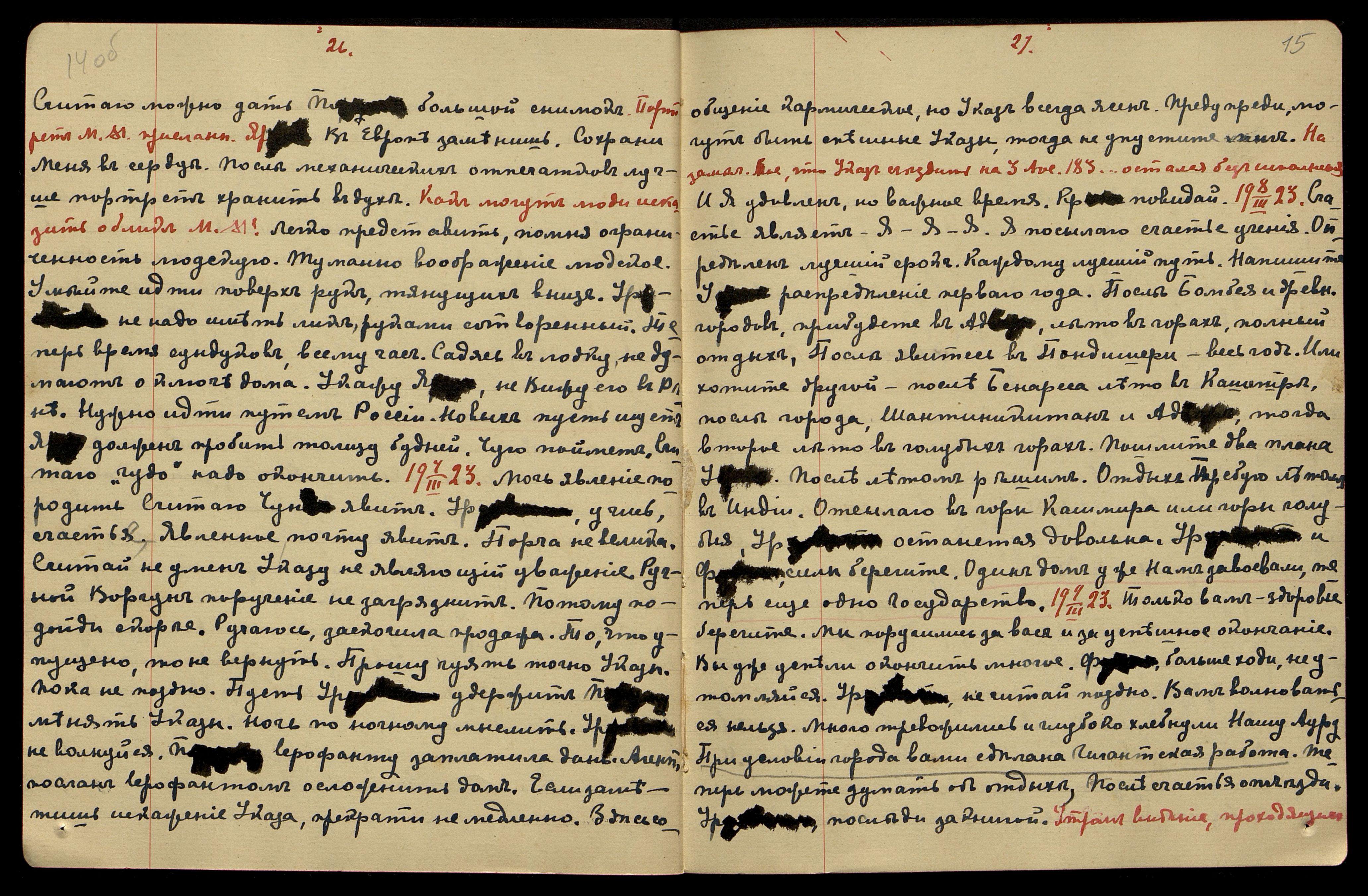 12.03.1923. Продолжу об А[дьяре], не надо критиковать старый стены. Урусвати, ляг спокойно. Мы с тобою. Нужно спокойствие − всё будет хорошо.