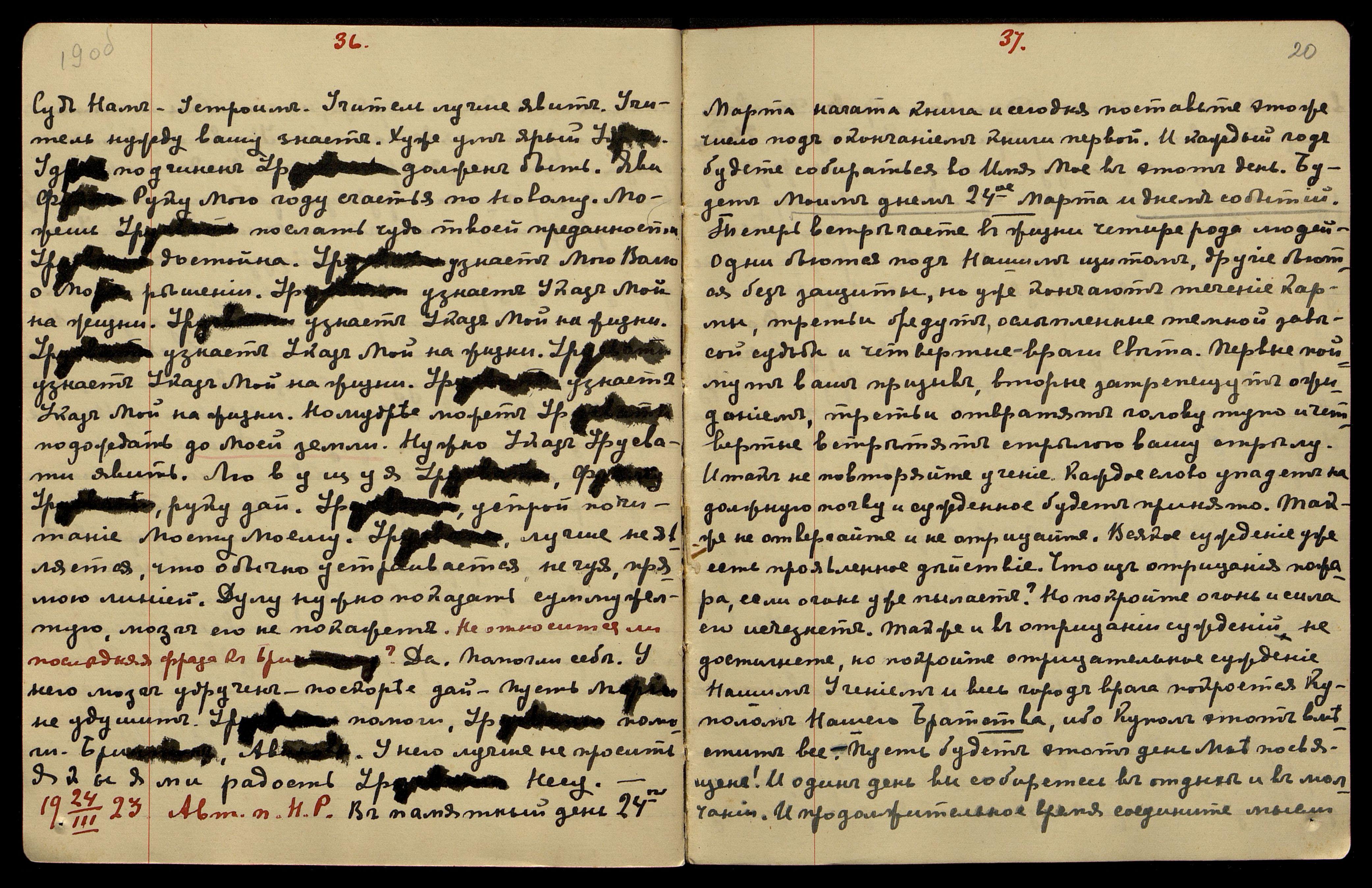 25.03.1923. Один злой думает причинить Ф[уяме] рушение духа. Дочь М[ории], чуй. Укажу Од[ома]ру послать явление улыбки. Нужно лучше Мо[рию] ночью знать − дома дух поднять после. Пора руки мыть; ухо Я, но Я чую, дух позвать нельзя. Урусвати, Поруме скажи. (Последн[яя] фраза повторена 4 раза.) Дочь Мо[рии], можешь ложь пустить по ветру. Зычен Голос Учителя, колокол донесёт. Урусвати, Урусвати, Урусвати, приди ко Мне. Улучшил, Улучшил, Улучшил указ ямы, появившейся под Ф[уямой]. Можешь опустить счастье на дно. Рука Моя, зазнались ученики. Пусть Рука Моя несёт улыбку, но и уявление удара знания Рука докажет. Лучше Урусвати не подумать о Луче Моём против Од[омара]. Коль путь удуман − удача с вами. Урусвати М[орию] знает. Урусвати улучшит потраченные Указы − подари картину, костюм. (З[аку] − Де[...])..
