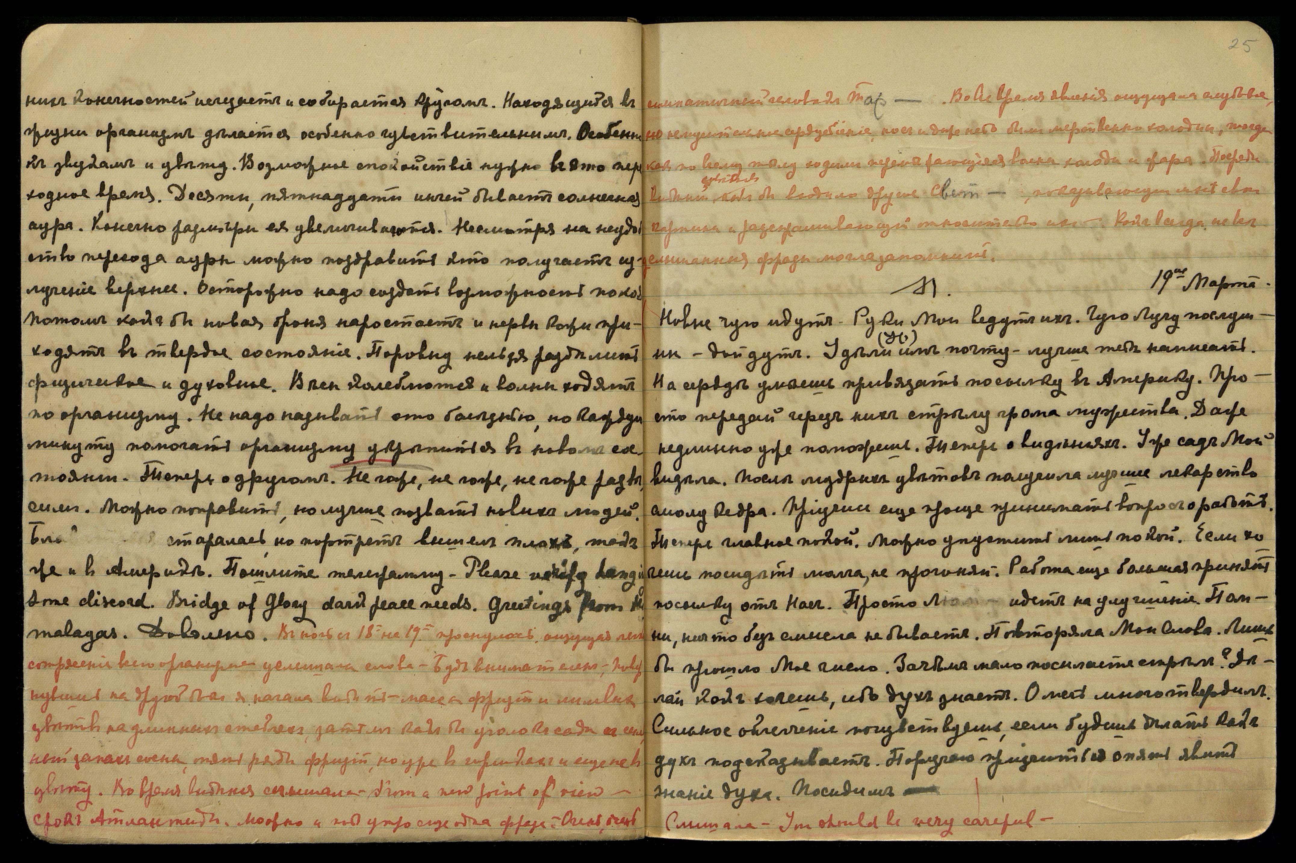Явила понимание звездам сегодня. Надо быть осторожными. Не дал понять об У[драе]. Но надо ему знать, какое применение готовится ему. Он легко к концу года может знать свой путь. Но пусть не обременяет рук, его закрывающих. Приготовим для него пути, пусть пройдет плавание. Если сумеет протянуть руку, дать можно. Русские наврали обоим. Но всё направим, теперь прошу хотя механический покой. Давление велико при перемене организма. Поверь, хотя на минуту делаем лучшее. Довольно.