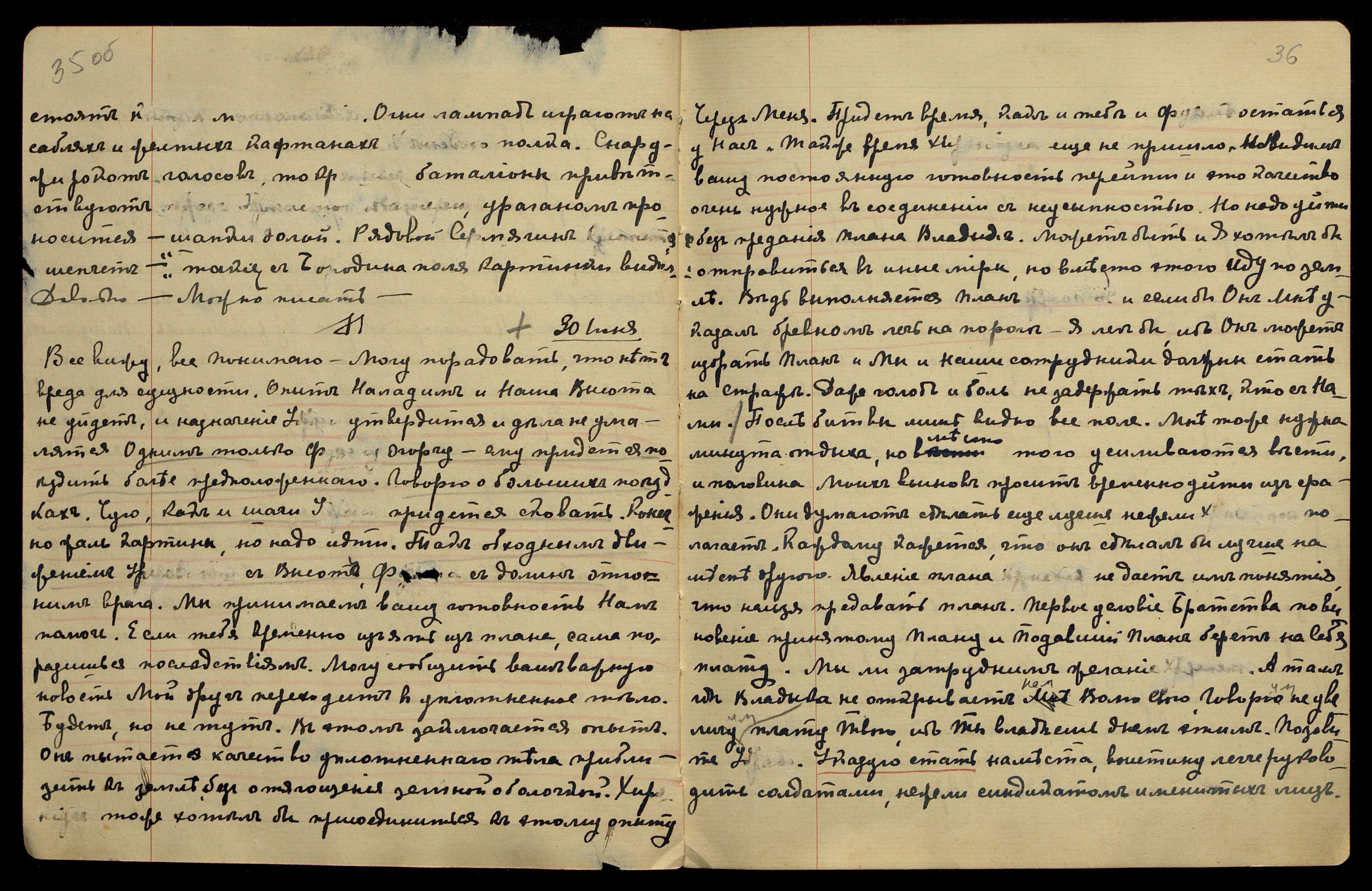 стоят к[нязья] м[онгольские]. Огни лампад играют на саблях и желтых кафтанах [ханского] полка. Снаружи рокот голосов, то кр[асные] батальоны приветствуют, ураганом проносится — шапки долой. Рядовой Сермягин крестится и шепчет: "Такие с Бородина поля картинки видел". Довольно. Можно писать.