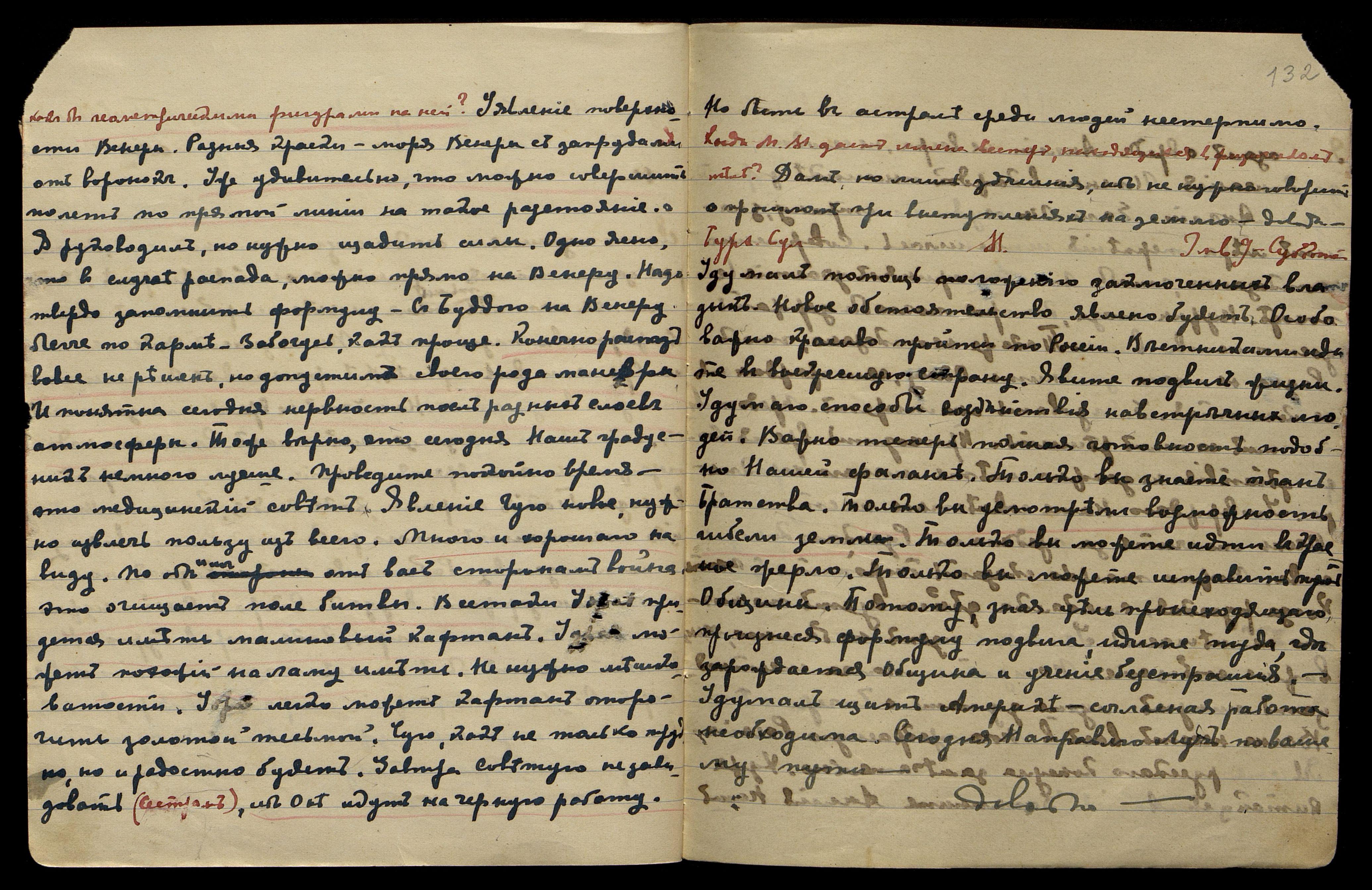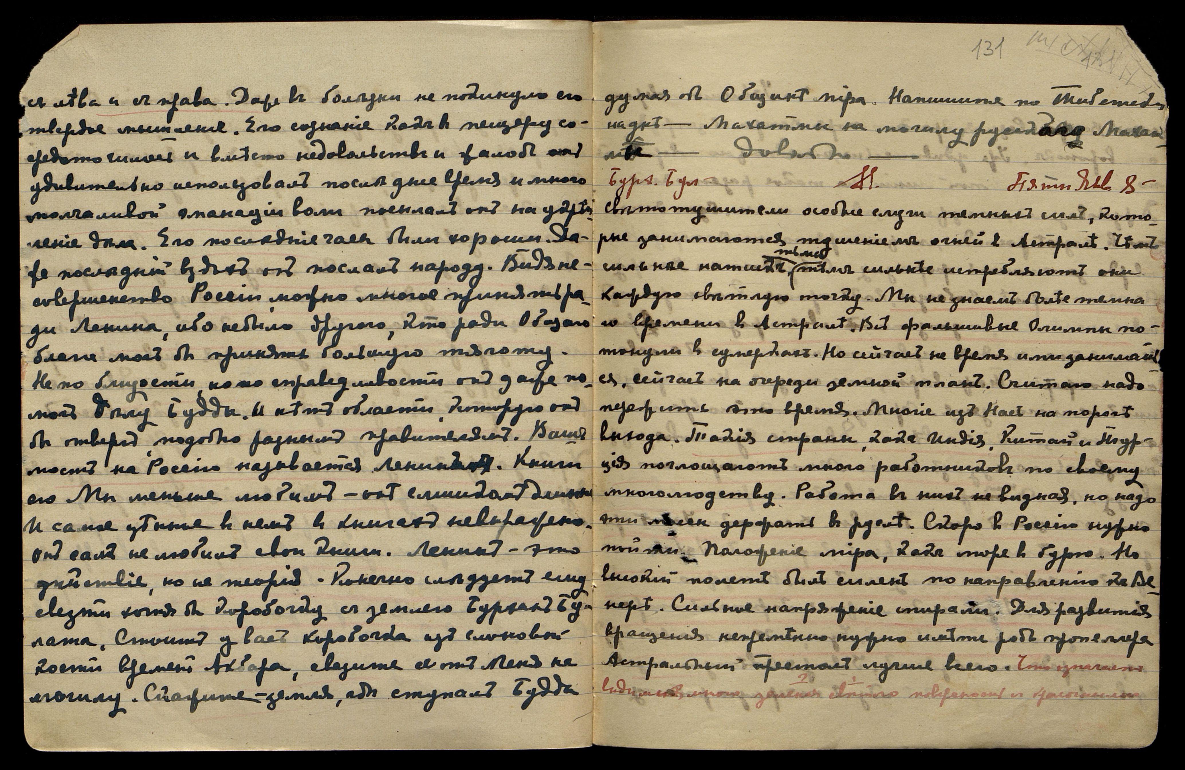 Совершенно не отказано, чтобы Л[юмоу] принял участие в походе. Нужны люди, которые могли бы держать достоинство ваше. Также не отказано, чтобы Р[адна] не могла заменить О[яну], если гражданство не кончится. Заведовать она может. Предоставьте им самим решить. Приходит время, когда действие не должно иметь личного характера. Утверждаю Наше совместное наступление. Очень молчите за пределами Русского консульства. Можно только сказать, торопитесь ехать. Когда русская смекалка действует, то ничто не мешает. Учитель идёт на башню — очень важное сообщение. Посидите молча шестнадцать минут, лучше думать о Чичерине. Волна несёт вас в Мою прекрасную Россию. Явление русского консула замечательно. Хуже китайцев Англия. Запомните — Англия Наш враг.