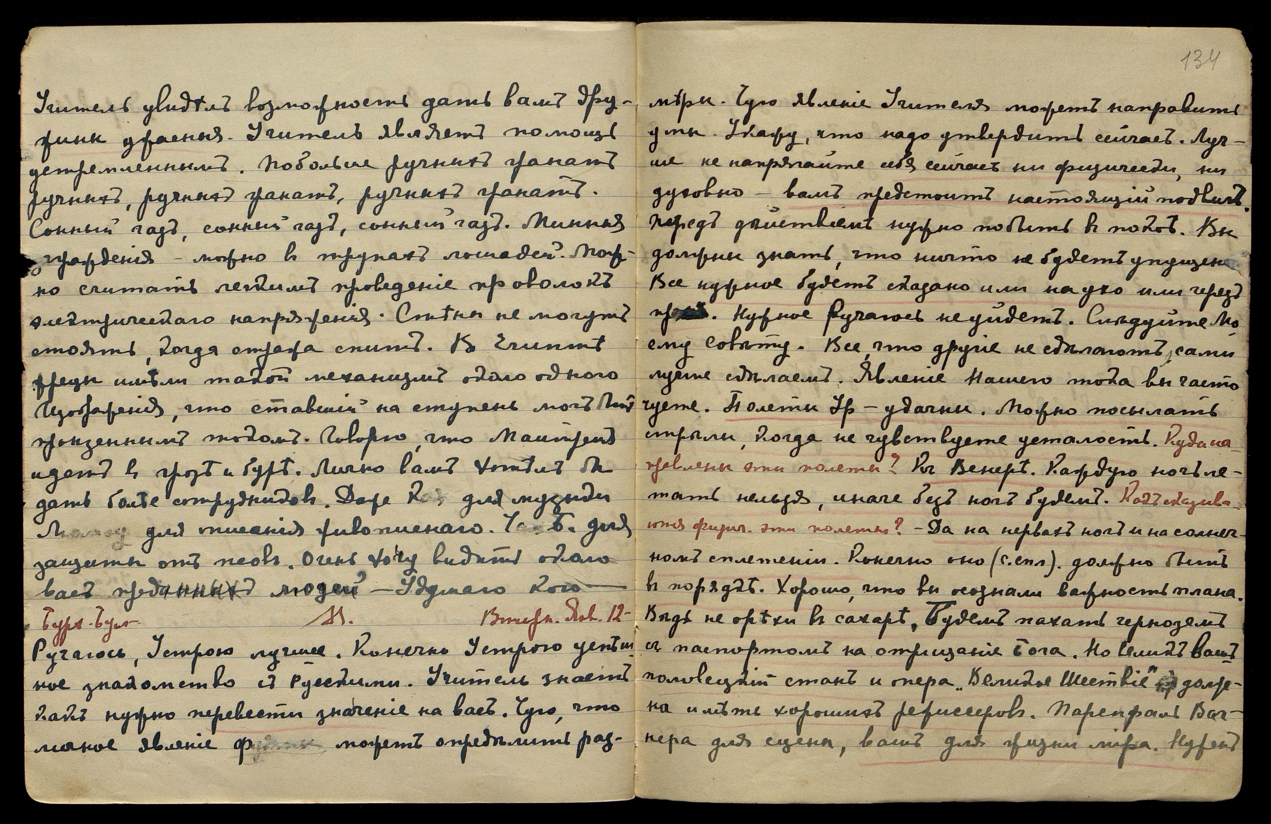 Сегодня Мы прекратили все научные занятия, ибо нужно всем начать психологировать. Каждый по-своему, каждый в свою сторону. Не только предписываем, но просим проявить величайшее спокойствие, тем более, что следствие этих посылок самое разнообразное, до военных действий включительно. Явление потрясения необходимо земле. Чую, как волны плещут. Чую, как огни