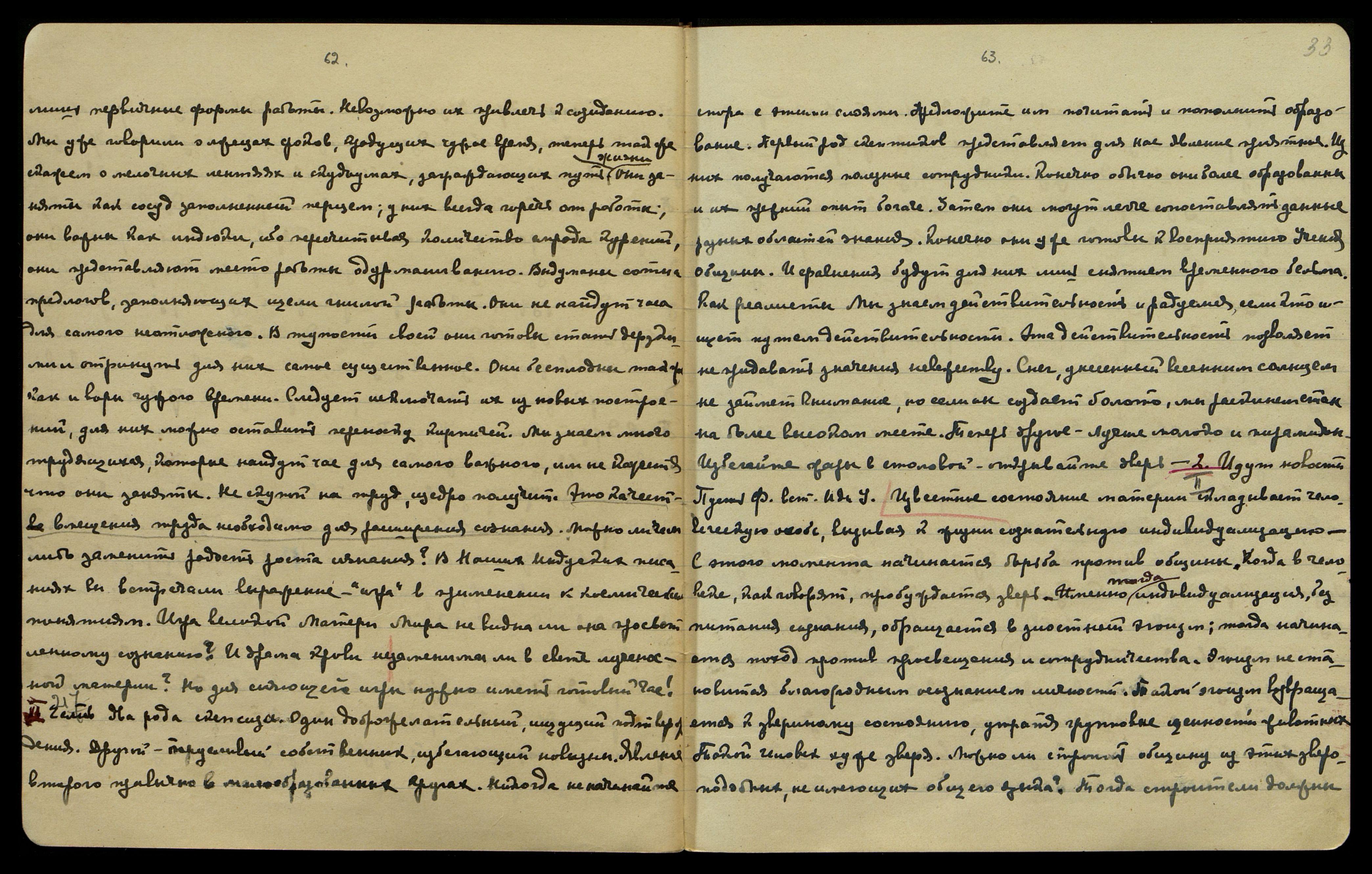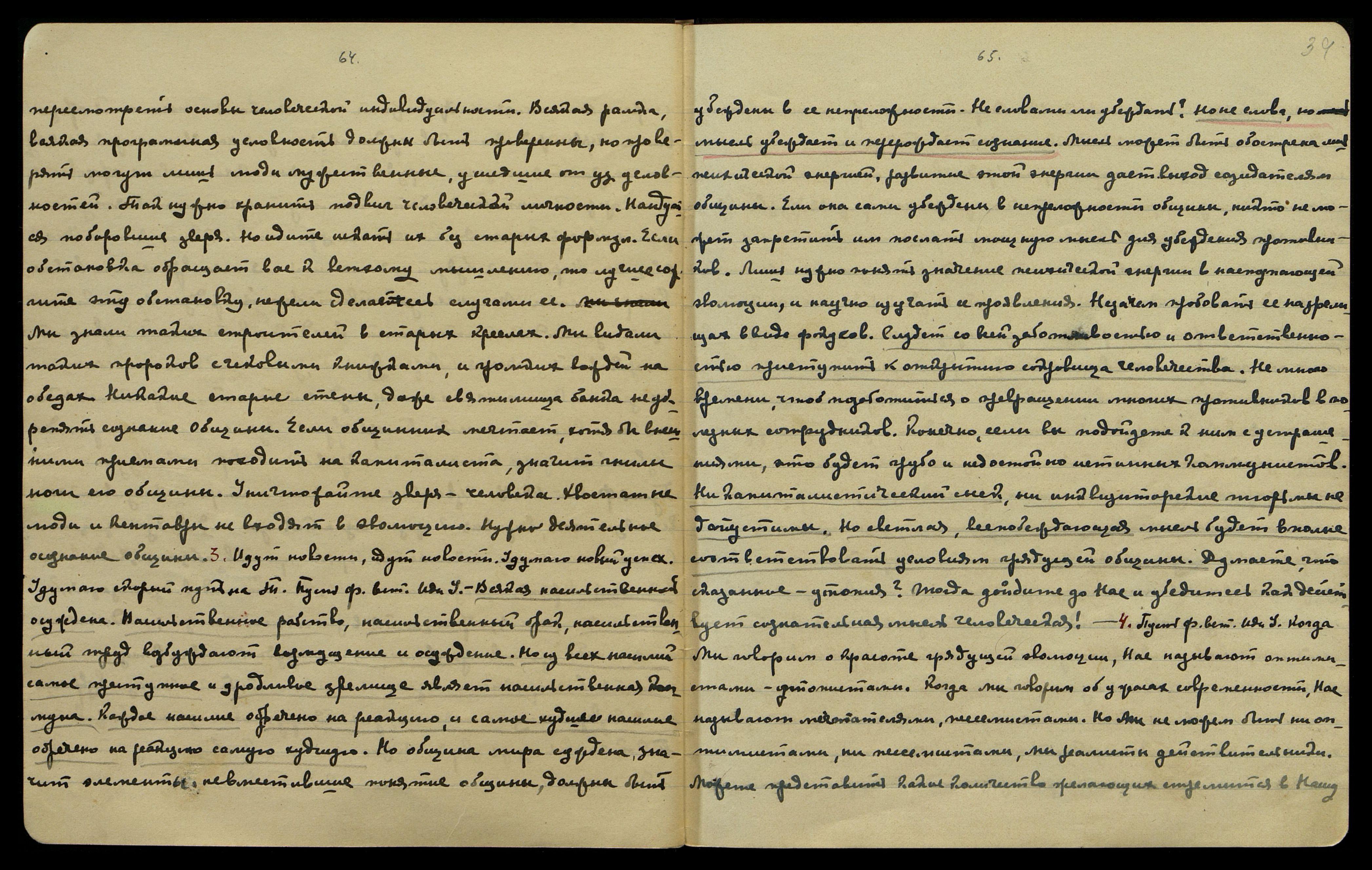 20[/I]. Может Ф[уяма] вст[ать]. Иди У[драя]. Думайте, чтоб готовиться к походу. Думаю, как учение Ф[уямы] поставить прочно. Много врагов. Тихие толки хуже. Думаю идти в Ам[ерику], дать несколько сражений. Считаю, М[осква] проявила неслыханную глупость. Кого там ущемил Ф[уяма]? Так же удивляюсь друзьям, неужели нет достойных слов? Ужимки тупиц парализуют друзей. Широко можно собирать молодых сотрудников. Учитель хотел бы видеть напряженное искание вместо маленьких пересудов.
