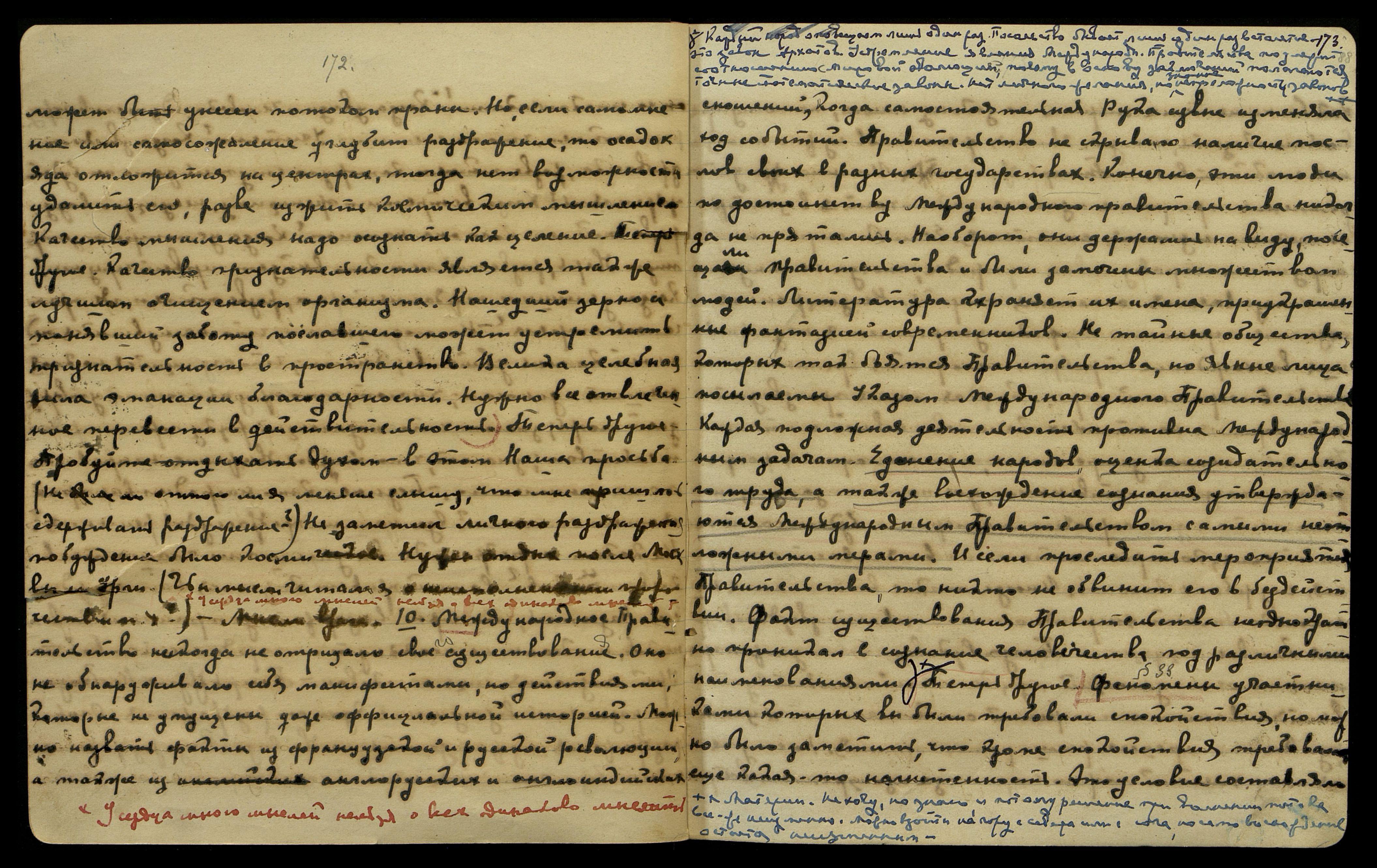 Каждый народ оповещаем лишь один раз. Посольство бывает лишь один раз в столетие − это закон Архатов. Устремление явления Международн[ого] Правительства подлежит соотношению с мировой эволюцией, потому в основу заключений полагаются точные математические законы. Нет личного желания, но знание непреложности законов материи. Не хочу, но знаю, и потому решение при волнении потока все же неизменно. Можно взойти на гору с севера или с юга, но само восхождение остается неизменным.