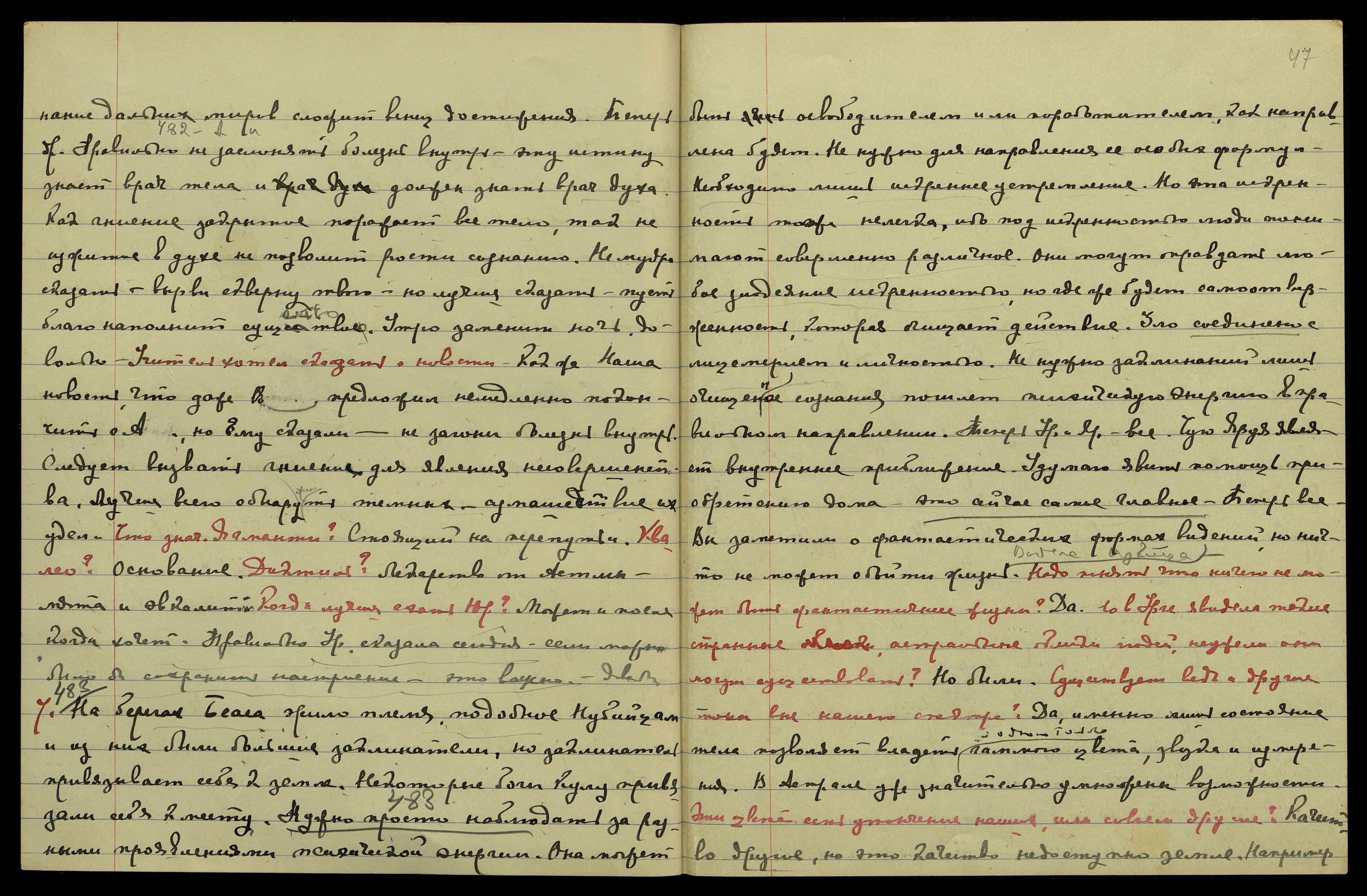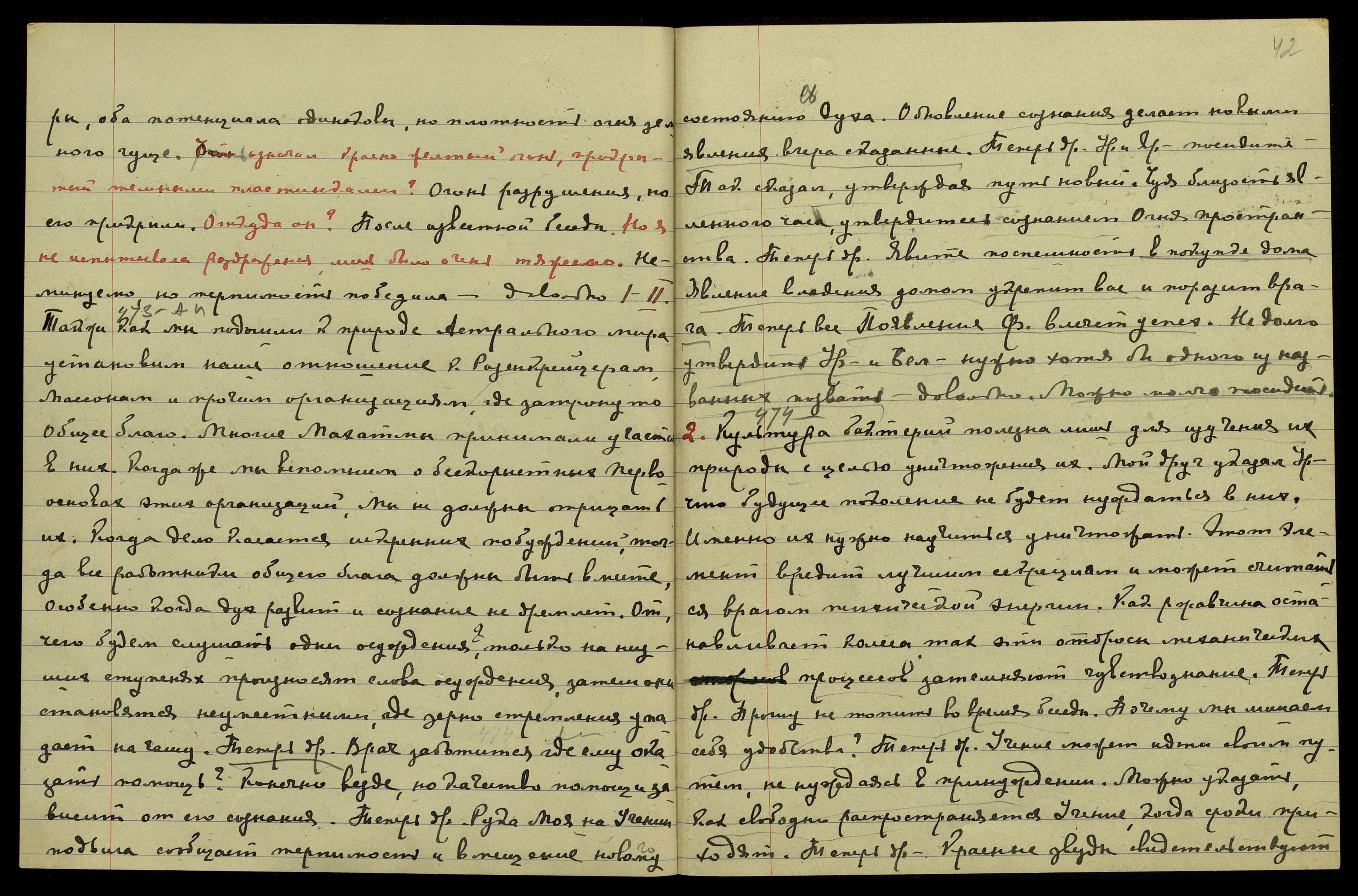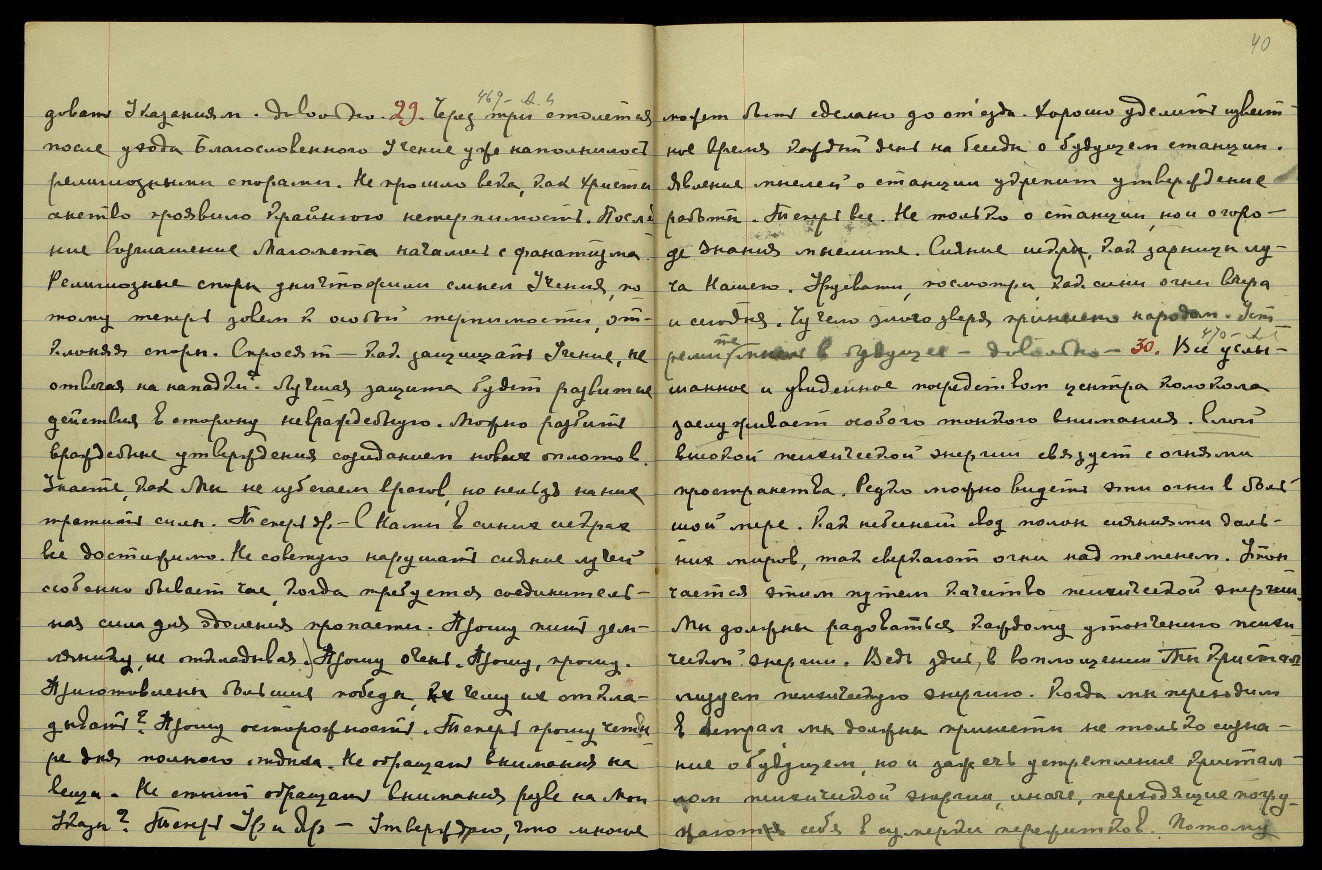 2 [февраля]. А[гни] Й[ога] § 474. Культура бактерий полезна лишь для изучения их природы с целью уничтожения их. Мой Друг указал Урусвати, что будущее поколение не будет нуждаться в них. Именно их нужно научиться уничтожать. Этот элемент вредит лучшим секрециям и может считаться врагом психической энергии. Как ржавчина останавливает колеса, так эти отбросы механических процессов затемняют чувствознание. Теперь др[угое]. Прошу не топить во время беседы. Почему мы лишаем себя удобства? Теперь др[угое]. Учение может идти своим путем, не нуждаясь в принуждении. Можно указать, как свободно распространяется Учение, когда сроки приходят. Теперь др[угое]. Красные звезды свидетельствуют
