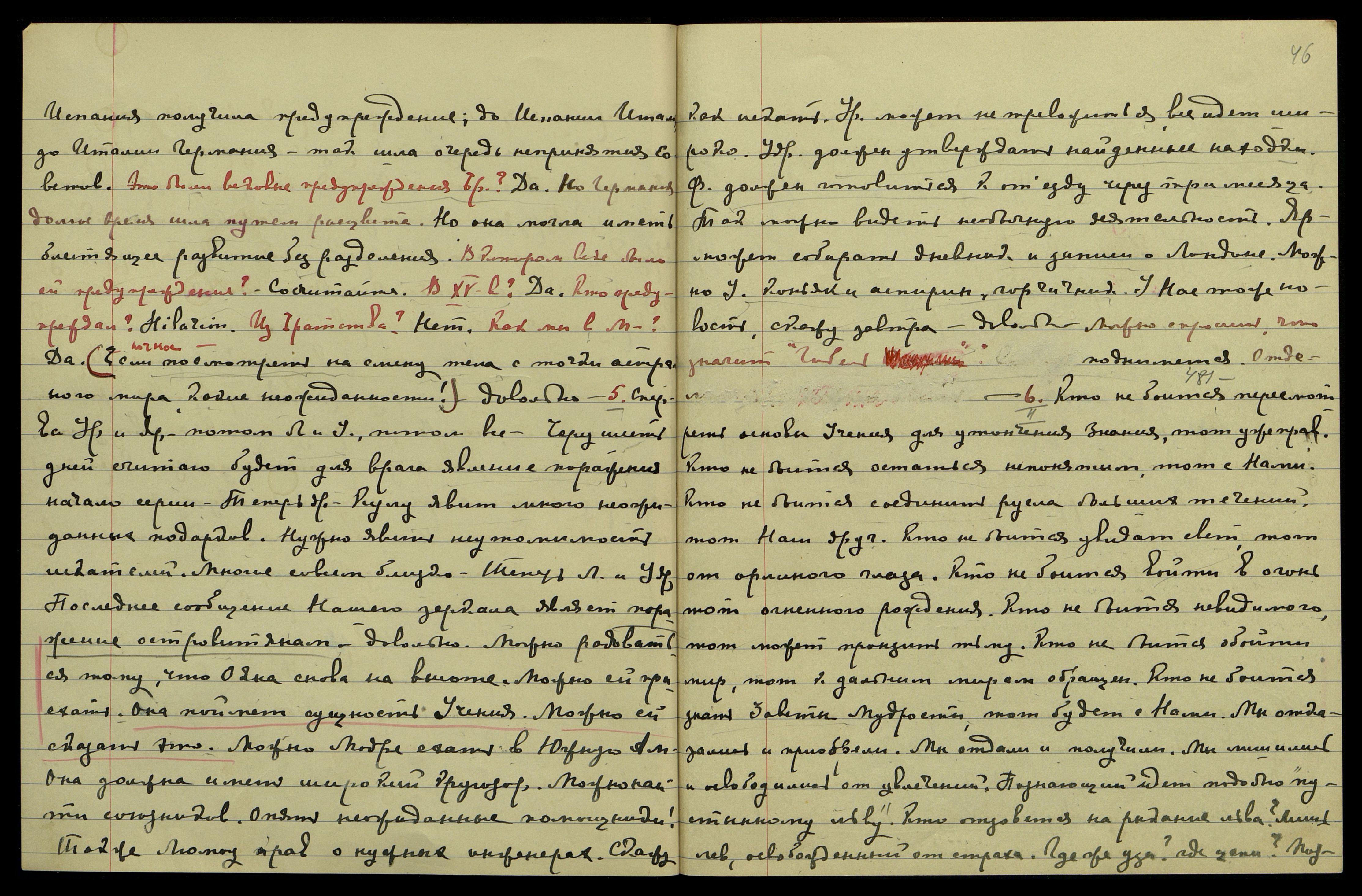 5 [февраля]. Сперва Урусвати и Яр[уя], потом Л[юмоу] и У[драя], потом все. Через шесть дней, считаю, будет для врага явление поражения − начало серии. Теперь др[угое]. Кулу явит много неожиданных подарков. Нужно явить неутомимость искателей. Многие совсем близко. Теперь Л[юмоу] и Удр[ая]. Последнее сообщение Нашего зеркала являет поражение островитянам. Довольно. Можно радоваться тому, что Ояна снова на высоте. Можно ей приехать. Она поймет сущность Учения. Можно ей сказать это. Можно Модре ехать в Южную Америку. Она должна иметь широкий кругозор. Можно найти союзников. Опять неожиданные помощники! Также Люмоу прав о нужных инженерах. Скажу, как искать. Урусвати может не тревожиться, все идет широко. Удр[ая] должен утверждать найденные находки. Ф[уяма] должен готовиться к отъезду через три месяца. Так можно видеть необычную деятельность. Яр[уя] может собирать дневник и записи о Лондоне. Можно У[драе] коньяк и аспирин, горчичник. У Нас тоже новость, скажу завтра. Довольно.