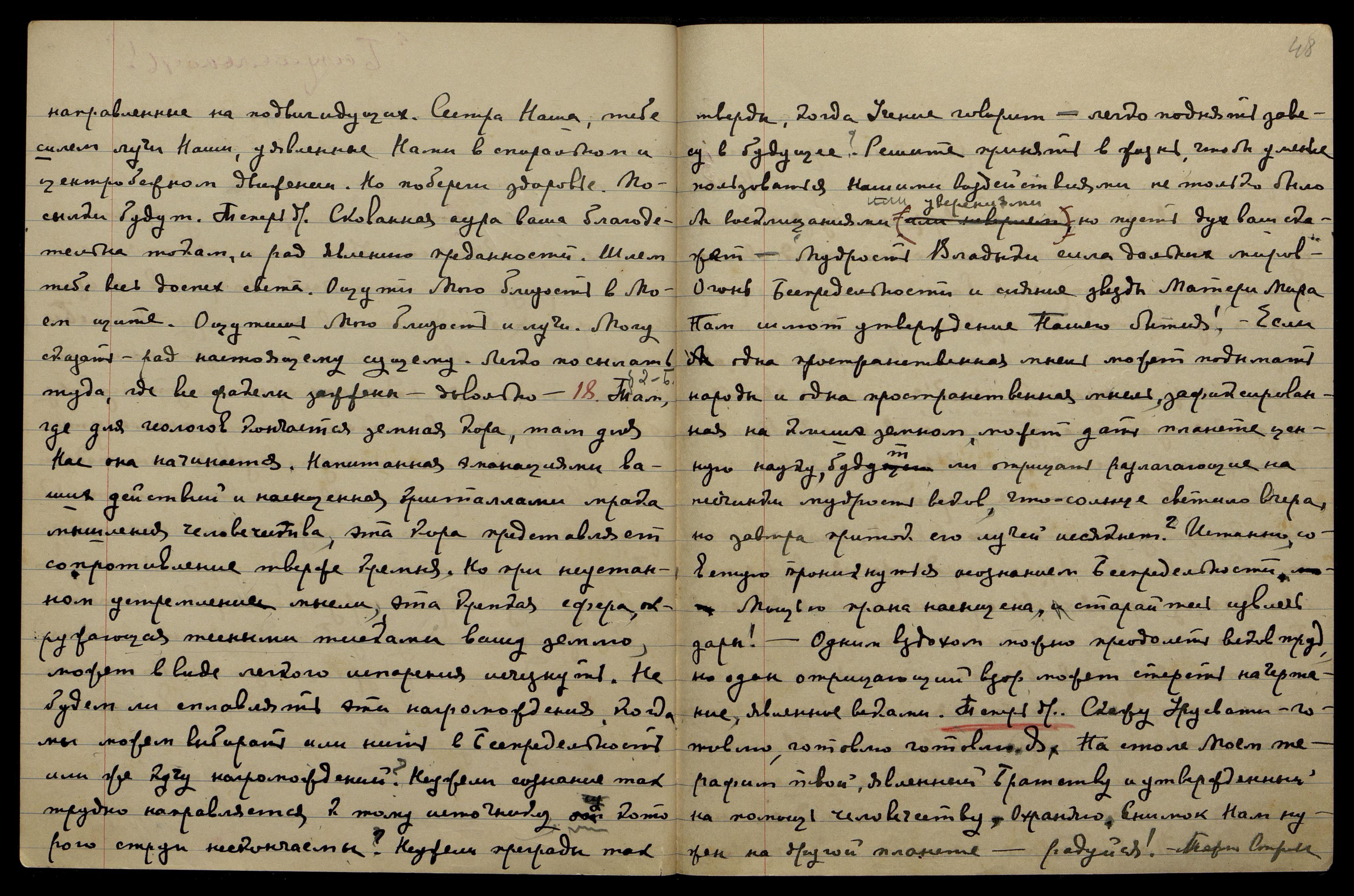 17/V. [Беспредельность] §1. Человечество обеспокоено утерянными течениями, но объясняет сдвиг Земли и явления космических пертурбаций геологически. Но против их изложения факт очевидности являет миру явление Беспредельности и явления огненных, подземных и надземных токов. Лучи надземных сфер могут ту кору Земли пронзить и в любой части планеты утвердить усиленный магнетизм, вызывая токи подземные. Ваши астрономы являют внимание только измерениям светил, но как наука об огненных лучах и Беспредельности обогатила бы сущность нашу! Даже луч глаз творит и разит! И срок начинает приближать планету из Беспредельности, и потому наблюдайте пертурбации земные. Но ширина планетных тел не важна, ибо интенсивность космических лучей из Беспредельности может Нашею относительностью, и вашей психической энергией, и кооперацией сфер создать земное царство, равное сферам высших миров. Теперь др[угое]. Урусвати видела Лучи Мои,