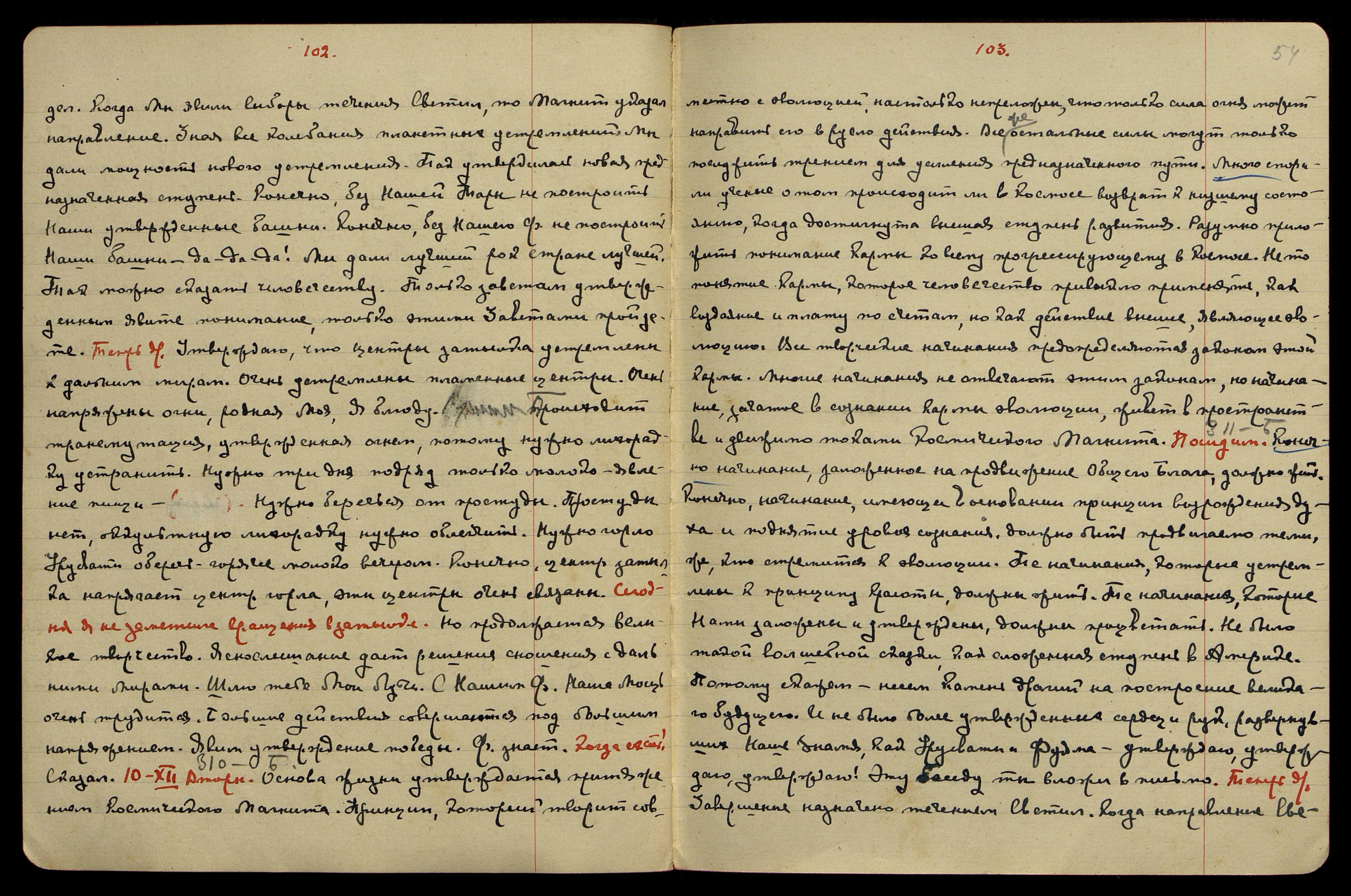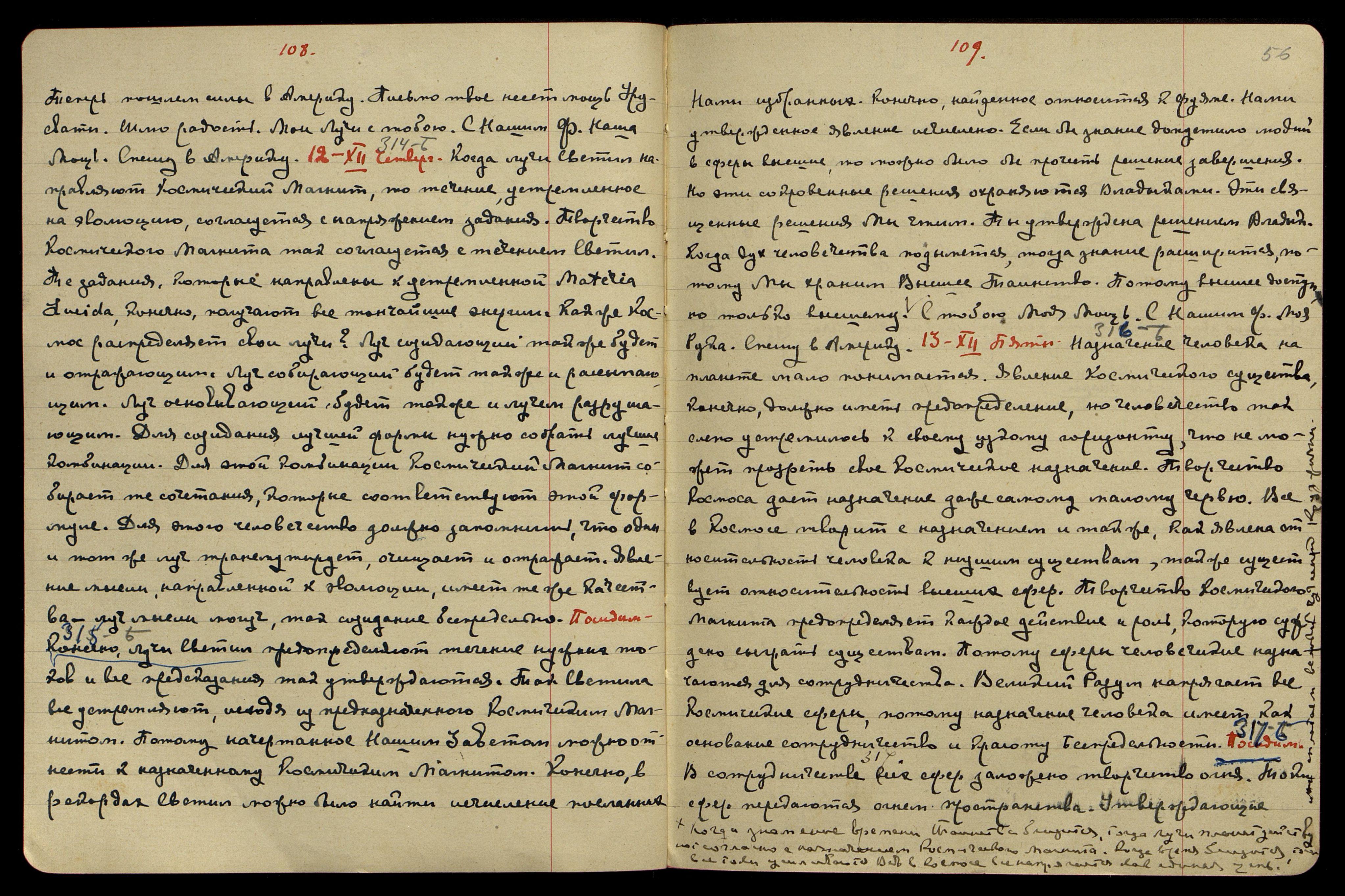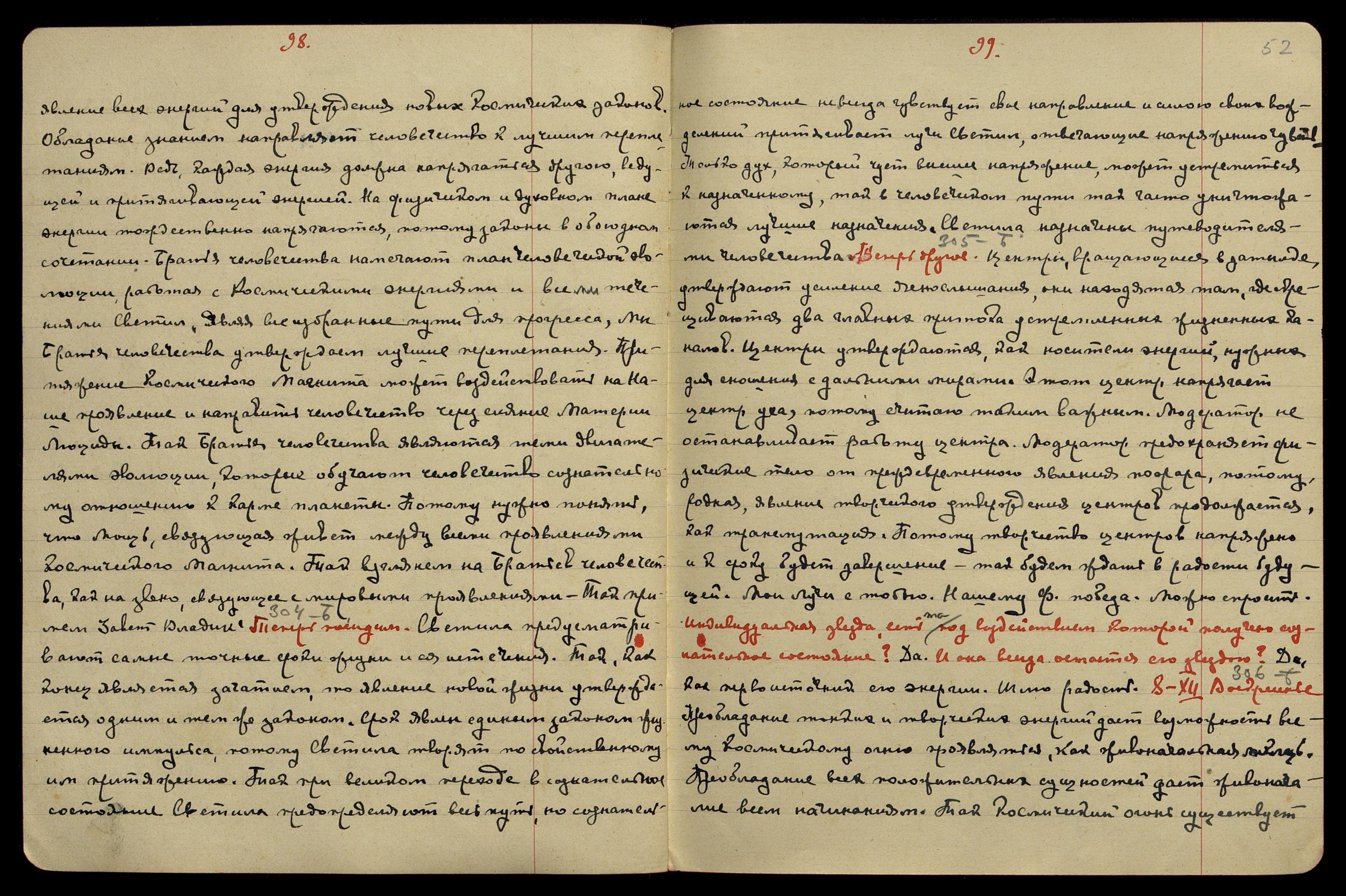8-XII. Воскресенье. Б[еспредельность] § 306. Преобладание тонких и творческих энергий даёт возможность всему космическому огню проявляться как живоначальная мощь. Преобладание всех положительных сущностей даёт живоначалие всем начинаниям. Так космический огонь существует