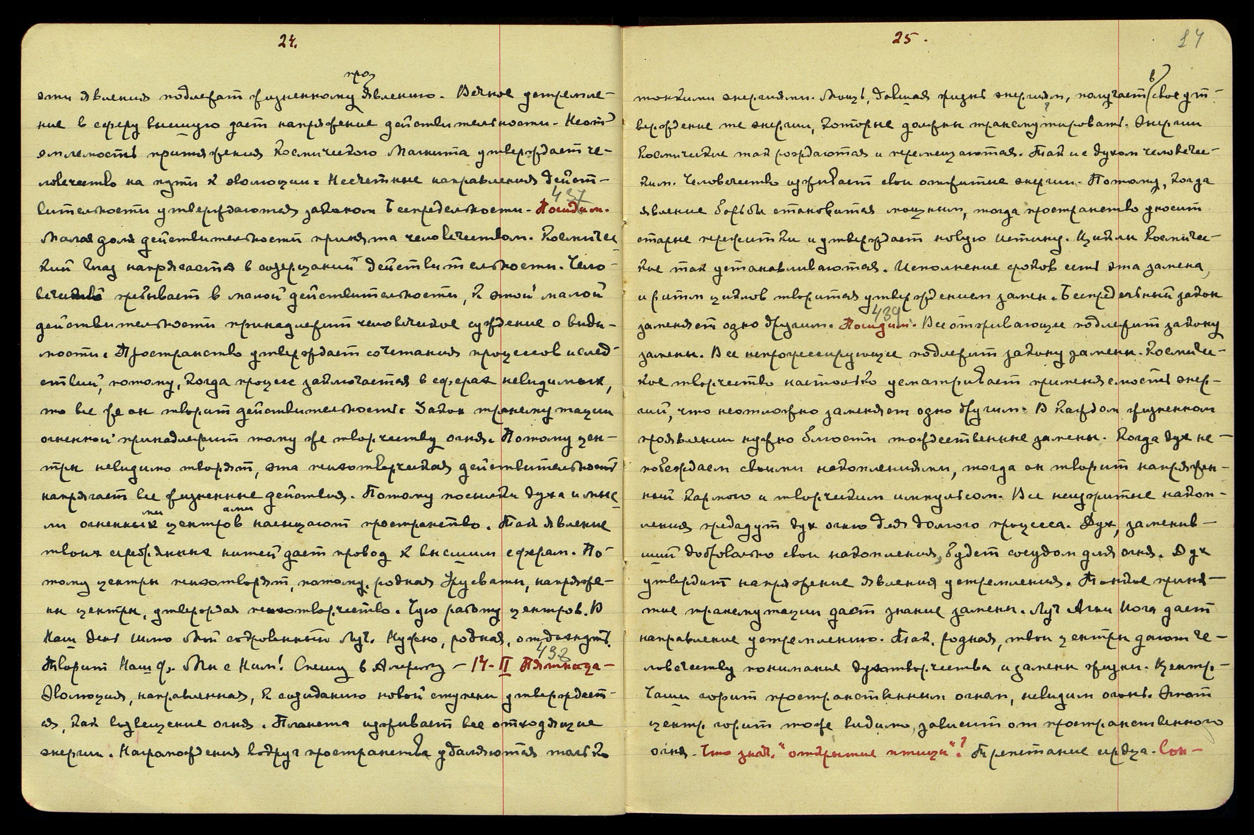 13-II. Четв[ерг]. [Беспредельность] § 436. Действительность отвечает напряжению. Когда устремление энергий собирается вокруг зерна, тогда творит действительность. Об этом законе забыли, говоря об иллюзии. Ведь Свет поглощает тьму в действительности. Ведь объединение энергий совершается в действительности. Ведь когда творчество Космоса напрягает действительность, тогда применяется вся притягающая сила. Действительность насыщена магнитными токами. Только присутствие устремления даёт мощный приток притяжения. Только