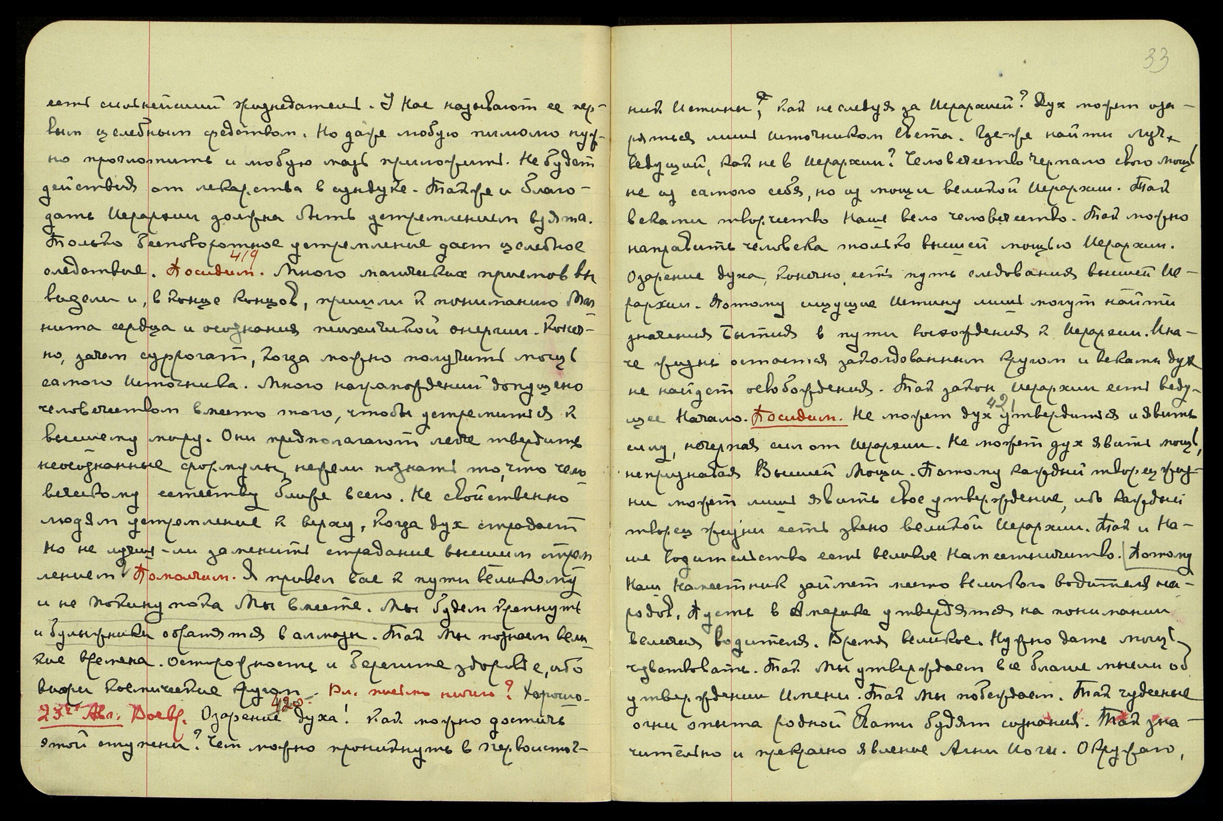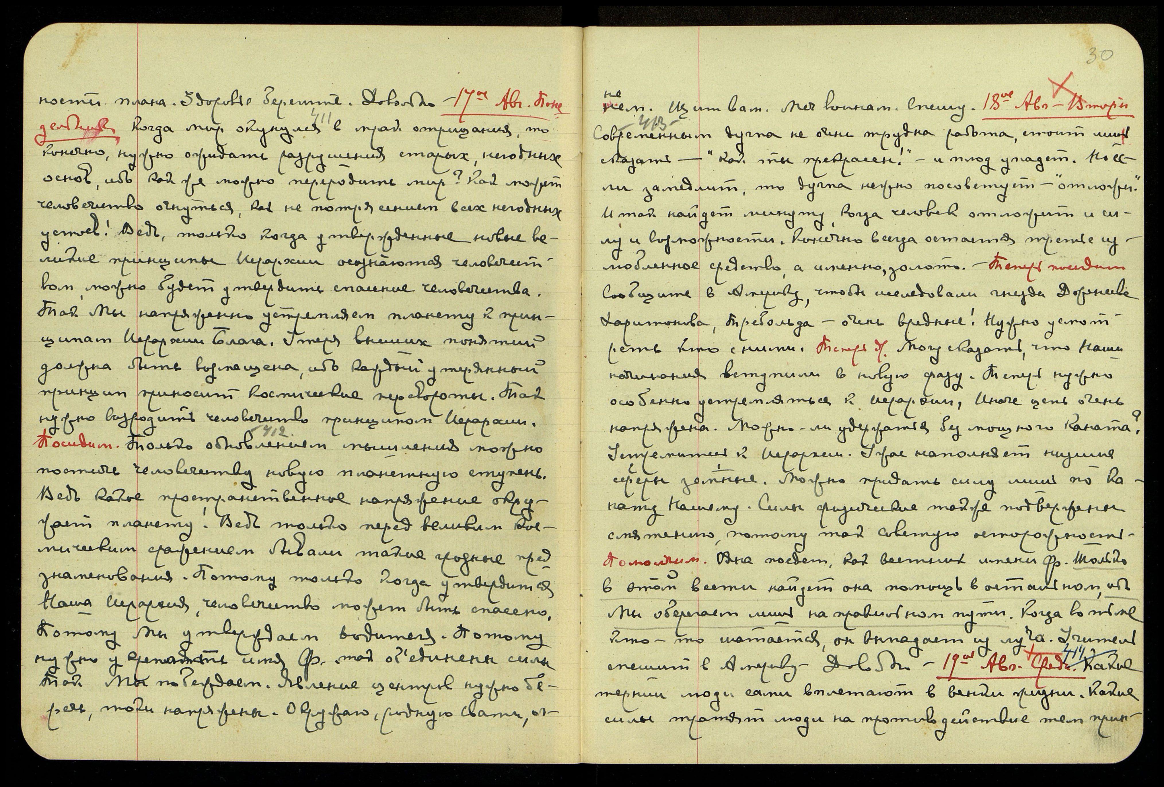 19-ое авг[уста]. Среда. [Иерархия] § 414. Какие тернии люди сами вплетают в венки жизни. Какие силы тратят люди на противодействие тем прин-