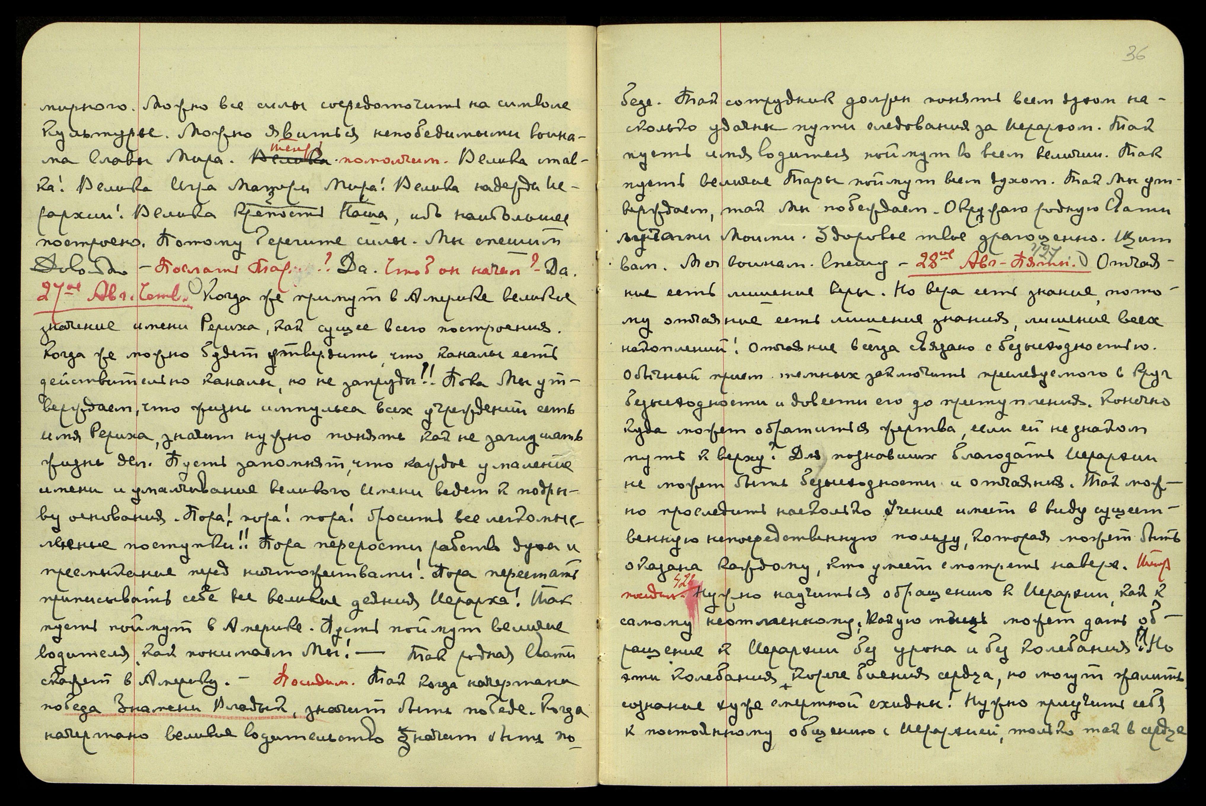 27-ое авг[уста]. Четв[ерг]. Когда же примут в Америке великое значение имени Рериха как сущее всего построения?! Когда же можно будет утвердить, что каналы есть действительно каналы, но не запруды?! Пока Мы утверждаем, что жизнь импульса всех учреждений есть имя Рериха, значит, нужно понять как не заглушать жизнь дел. Пусть запомнят, что каждое умаление имени и умалчивание великого Имени ведёт к подрыву основания. Пора! Пора! Пора бросить все легкомысленные поступки!! Пора перерасти рабство духа и пресмыкание перед ничтожествами! Пора перестать приписывать себе все великие деяния Иерарха! Так пусть поймут в Америке. Пусть поймут величие водителя, как понимаем Мы! Так родная Свати скажет в Америку. Посидим. Так, когда начертана победа Знамени Владык, значит, быть победе. Когда начертано великое водительство, значит, быть победе. Так сотрудник должен понять всем духом, насколько удачны пути следования за Иерархом. Так пусть Имя Водителя поймут во всём величии. Так пусть величие Тары поймут всем духом. Так Мы утверждаем, так Мы побеждаем. Окружаю родную Свати лучами Моими. Здоровье твоё драгоценно. Щит вам. Меч воинам. Спешу.