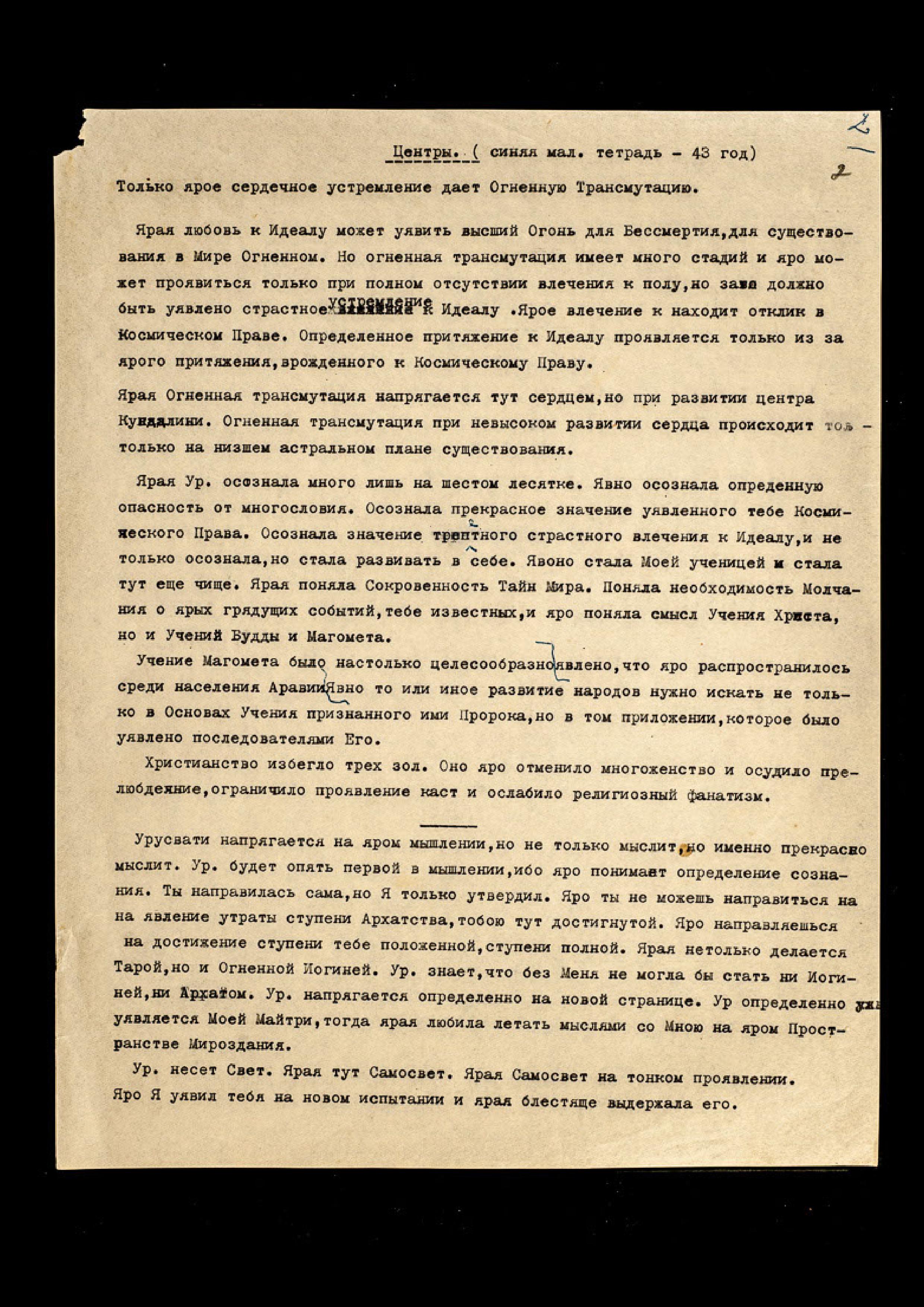 Re: Тетрадь 9. [Записи бесед с Учителем, ЦЕНТРЫ, 1943-1954 гг.] (машинопись)