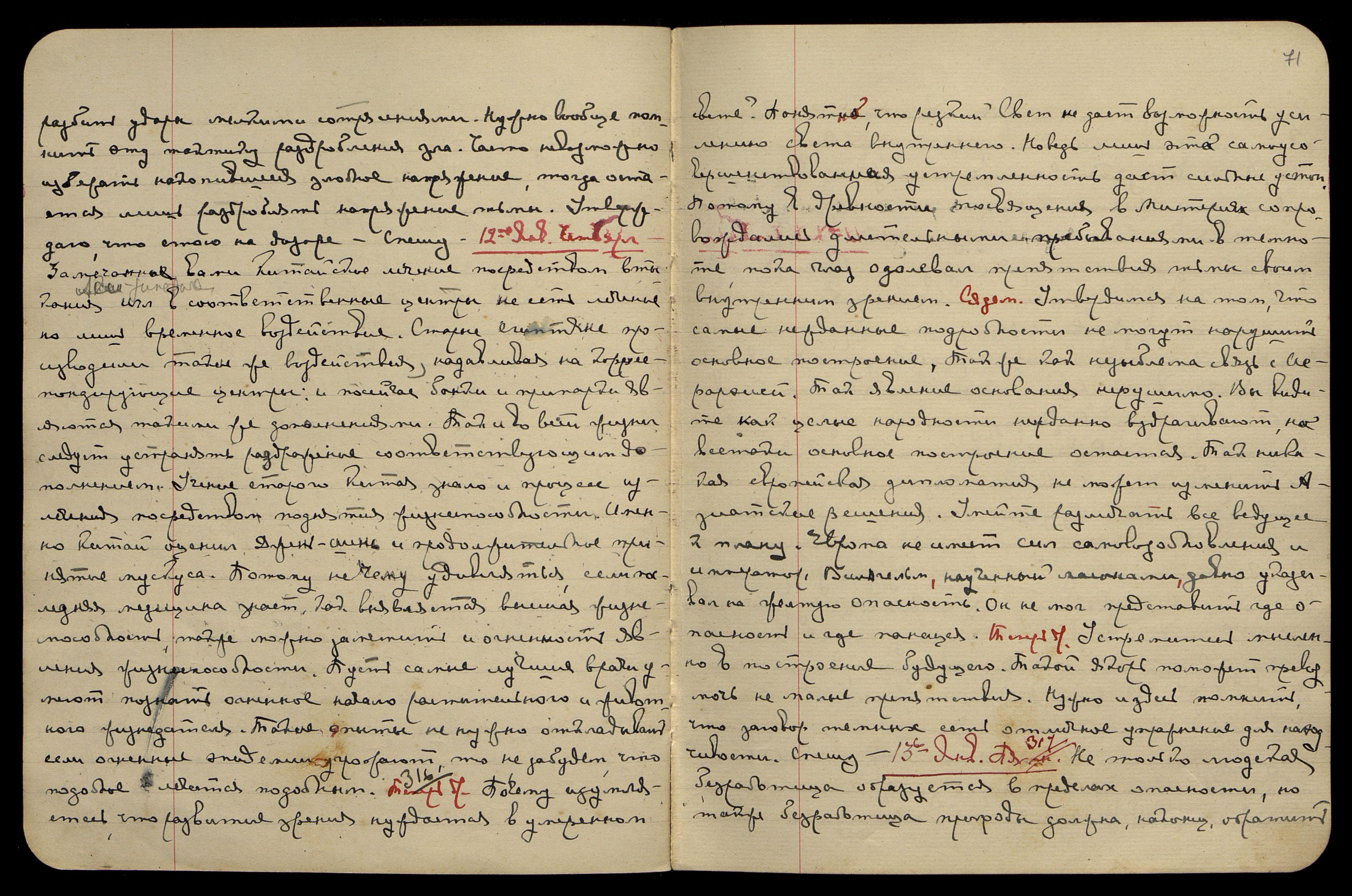 11-ое янв[аря], среда. § 311. Советуйте молодому учёному собрать из всех древнейших Учений всё относящееся до Огня. Пусть и Пураны Индии, и отрывки Учений Египта, Халдеи, Китая, Персии, и решительно все Заветы классической философии не будут забыты. Конечно, Библия, Кабала и Христовы Заветы дадут щедрый материал. Также и утверждение новейших времён прибавит ценные определения Агни. Такой сборник никогда не был составлен. Но можно ли двигаться к будущему, не собрав знаки тысячелетий? Теперь др[угое]. § 312. Уявление новейших исследований следует ценить. Когда люди начинают взлетать в слои высшие и погружаться в пещеры подземные, можно ожидать синтетических заключений. Не пренебрегайте наблюдениями над следствиями низших слоёв атмосферы. Именно, нужно принять во внимание всю относительность, которая может лишь обогатить выводы. Нужно, чтобы среди всей относительности мы могли находить приложение даже полусожжённым шлакам. Везде, где прошла работа Огня, может принести ценные наблюдения. Теперь др[угое]. § 313. Никто не может составить мнение о Космогонии, не изучив огненную стихию. Это было бы подобно зодчему, собравшемуся строить каменное здание без изучения камня и сопротивления материалов. Но современное состояние умов так далеко от спасительного синтеза. Сядем. § 314. Подземное напряжение не кончилось. Удаётся