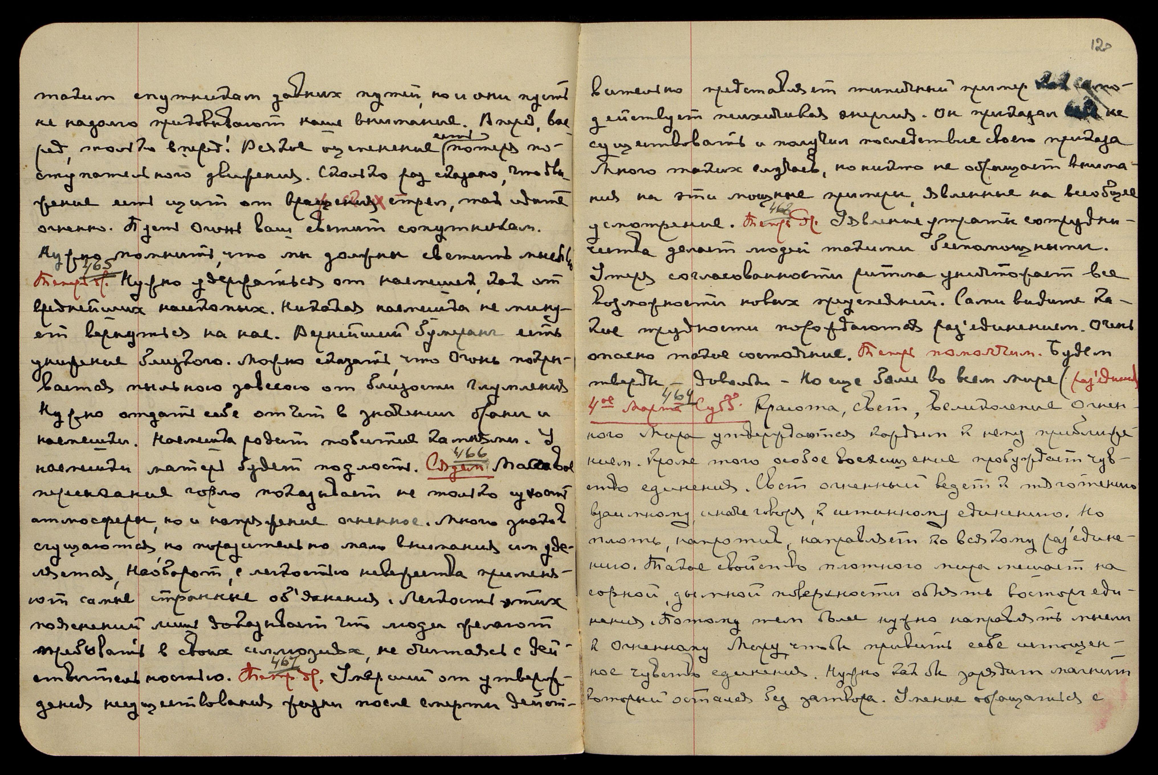 таким спутникам давних путей, но и они пусть ненадолго приковывают наше внимание. Вперёд, вперёд, только вперёд! Всякое оцепенение есть потеря поступательного движения. Сколько раз сказано, что движение есть щит от вражеских стрел, так идите огненно. Пусть Огонь ваш светит сопутникам. Нужно помнить, что мы должны светить мыслью. Теперь др[угое]. § 465. Нужно удержаться от насмешек как от вреднейших насекомых. Никакая насмешка не минует вернуться на нас. Вернейший бумеранг есть унижение близкого. Можно сказать, что Огонь покрывается пыльною завесою от близости глумления. Нужно отдать себе отчёт в значении брани и насмешки. Насмешка родит побитие камнями. У насмешки матерь будет подлость. Сядем. § 466. Массовое пересыхание горла показывает не только сухость атмосферы, но и напряжение огненное. Много знаков сгущаются, но поразительно мало внимания им уделяется. Наоборот, с лёгкостью невежества применяют самые странные объяснения. Лёгкость этих пояснений лишь доказывает, что люди желают пребывать в своих иллюзиях, не считаясь с действительностью. Теперь др[угое]. § 467. Умерший от утверждения не существования жизни после смерти − действительно представляет типичный пример, как самодействует психическая энергия. Он приказал себе не существовать − и получил последствие своего приказа. Много таких случаев, но никто не обращает внимания на эти мощные примеры, явленные на всеобщее усмотрение. Теперь др[угое]. § 468. Уявление утраты сотрудничества делает людей такими беспомощными. Утеря согласованности ритма уничтожает все возможности новых преуспеяний. Сами видите, какие трудности порождаются разъединением. Очень опасно такое состояние. Теперь помолчим. Будем тверды. Довольно. − Но ещё более во всём мире (разъединение).