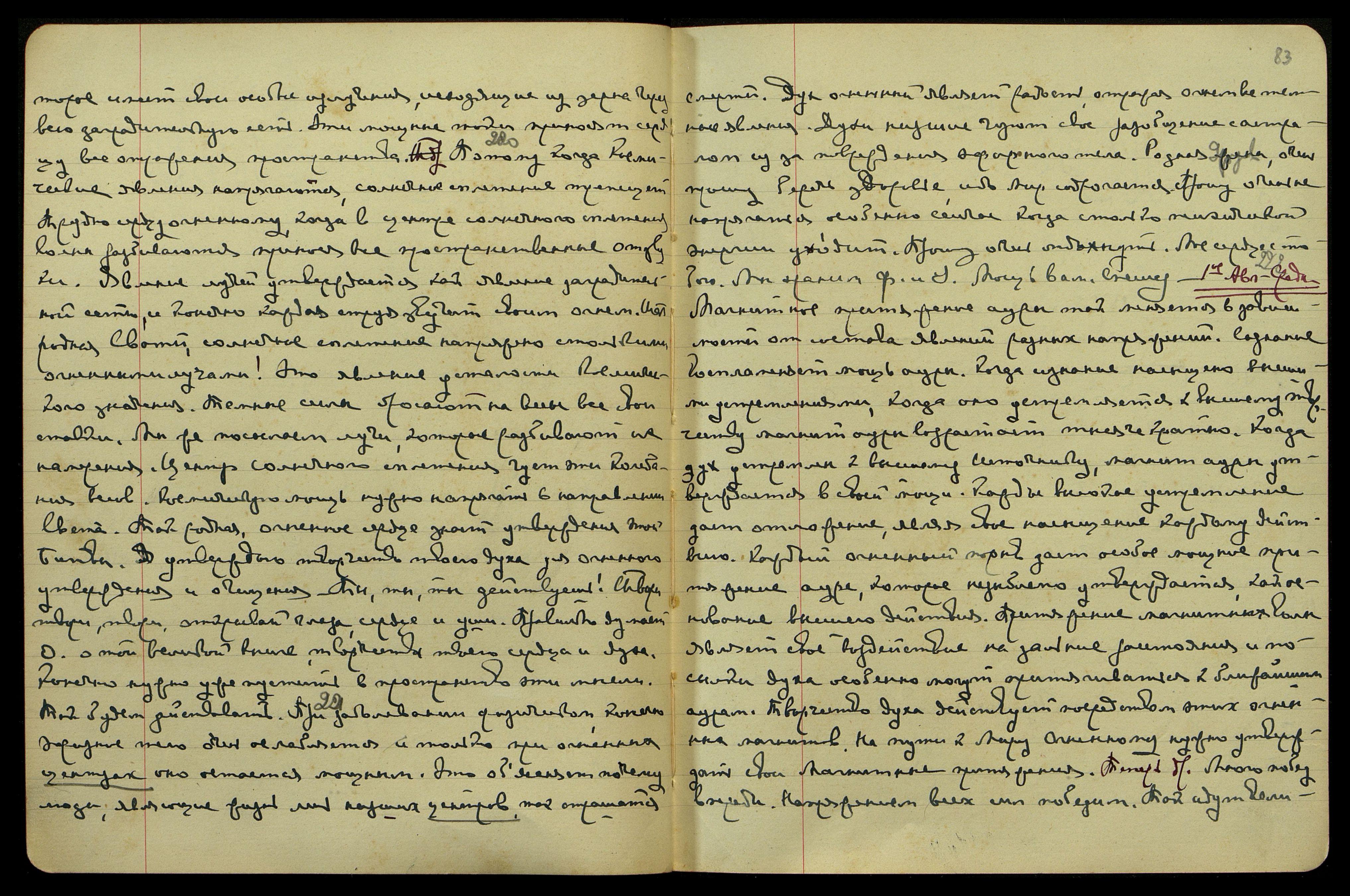 — Можешь начать занятие одной наукой. Но у тебя есть огненные потенциалы, и они возжигаются там, где нужно. Ты всегда так разумно рассуждаешь и так огненно утверждаешь − так пусть книжничество не отяжелит твоё суждение. Я думаю, нужно успокоиться, ибо так бушует огненное чувство, которое может отяжелить сознание. Прошу верить Мне. Прошу верить в объединение Наших сознаний.