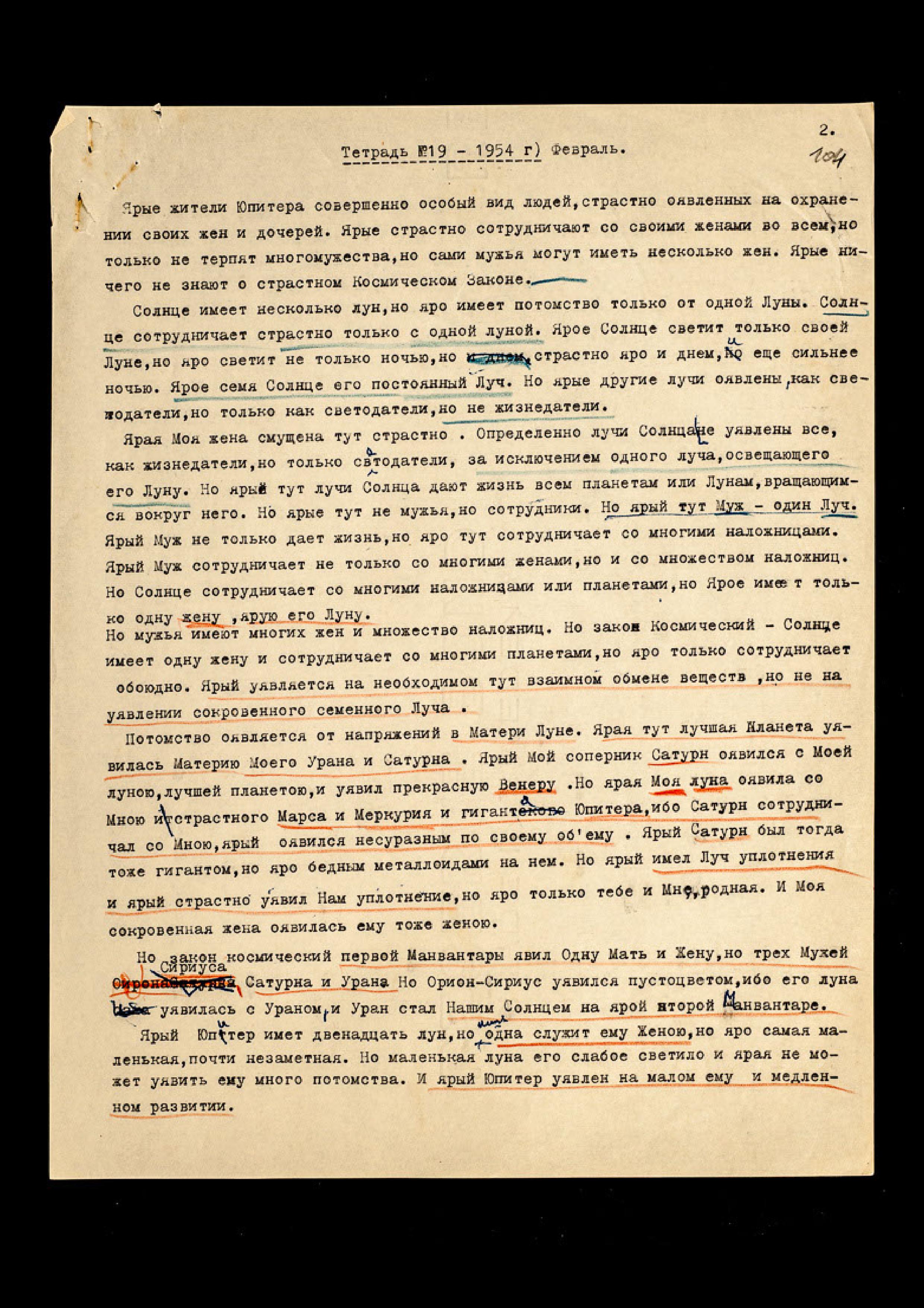 Но закон космический первой Манвантары явил Одну Мать и Жену, но трех Мужей − Сириуса, Сатурна и Урана. Но Орион-Сириус уявился пустоцветом, ибо его луна уявилась с Ураном, и Уран стал Нашим Солнцем на ярой второй Манвантаре. Ярый Юпитер имеет двенадцать лун, но лишь одна служит ему Женою, но яро самая маленькая, почти незаметная. Но маленькая луна его — слабое светило, и ярая не может уявить ему много потомства. И ярый Юпитер уявлен на малом ему и медленном развитии.