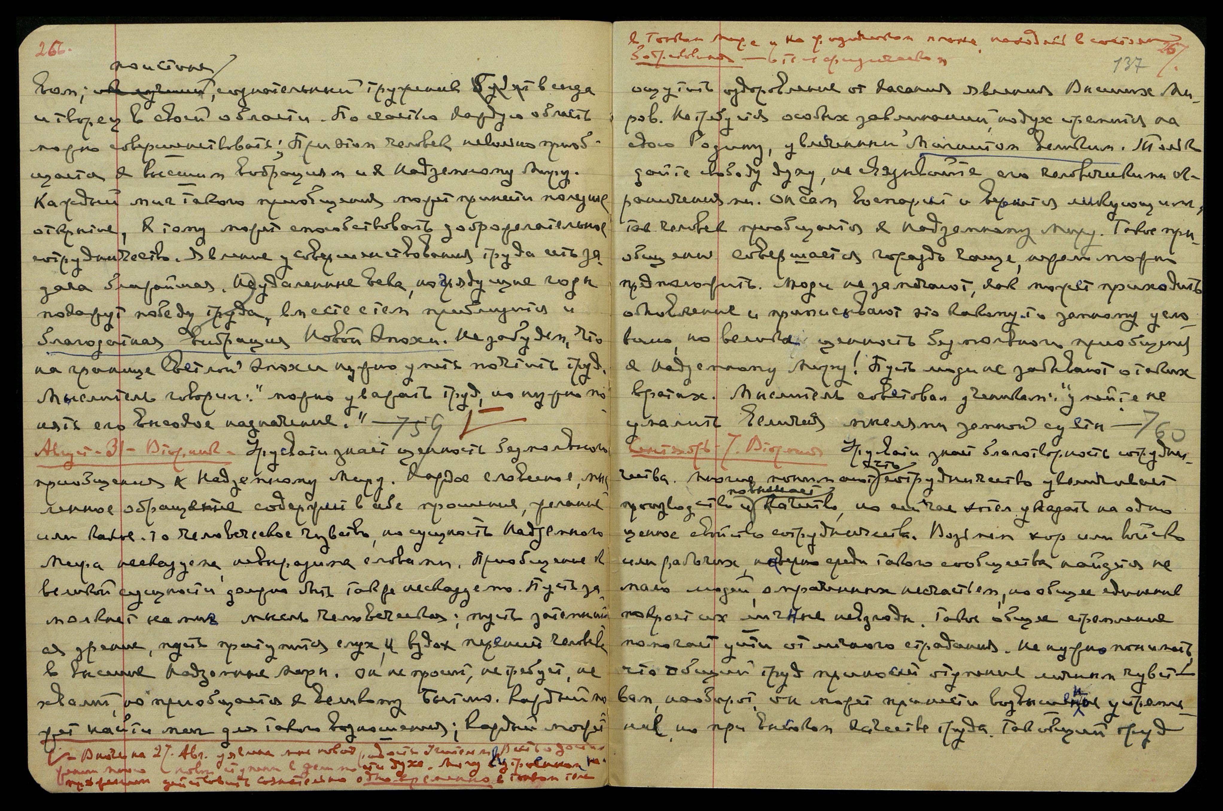 В ночь на 27 августа уявлена мне новая радость Учителем — весть о достижении мною новой ступени в делимости духа. Могу внутренним напряжением действовать сознательно одновременно в тонком теле в Тонком мире и на физическом плане, находясь в состоянии бодрствования в теле физическом.