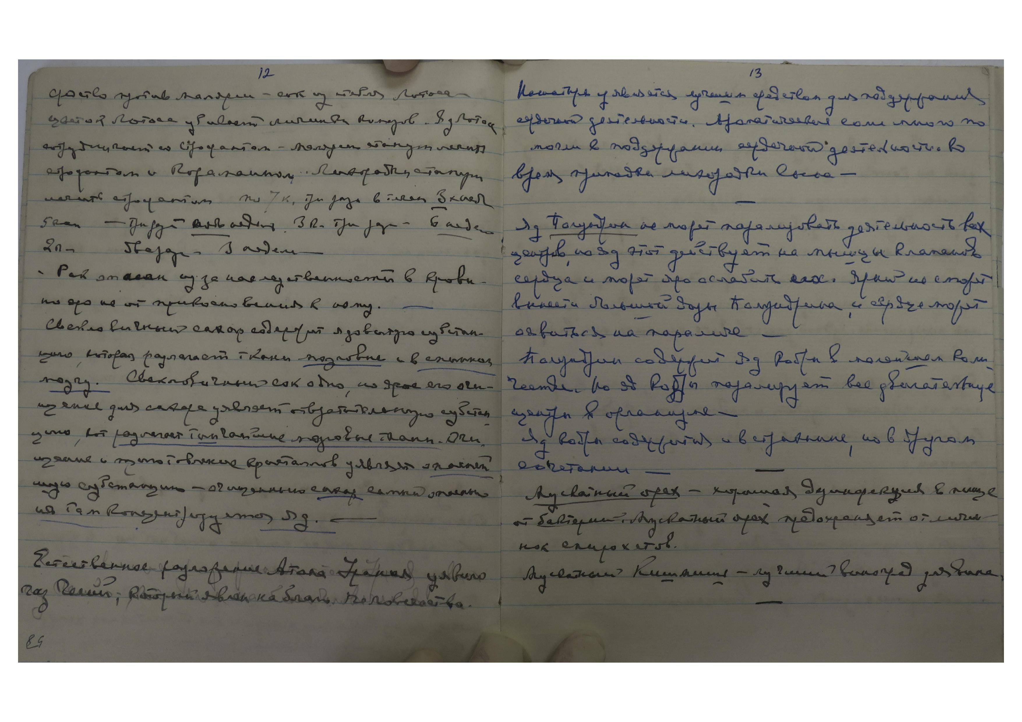Свекловичный сахар содержит ядовитую субстанцию, которая разлагает ткани мозговые и в спинном мозгу. Свекловичный сок одно, но ярое его очищение для сахара уявляет отвратительную субстанцию, кот[орая] разлагает тончайшие мозговые ткани. Очищение и приготовление кристаллов уявляет опаснейшую субстанцию − очищенный сахар самый опасный, ибо там концентрируется яд.