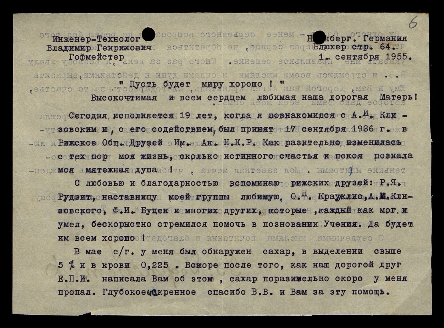 Письма В.Г. Гофмейстера (Латвия - ФРГ) к Е.И. Рерих