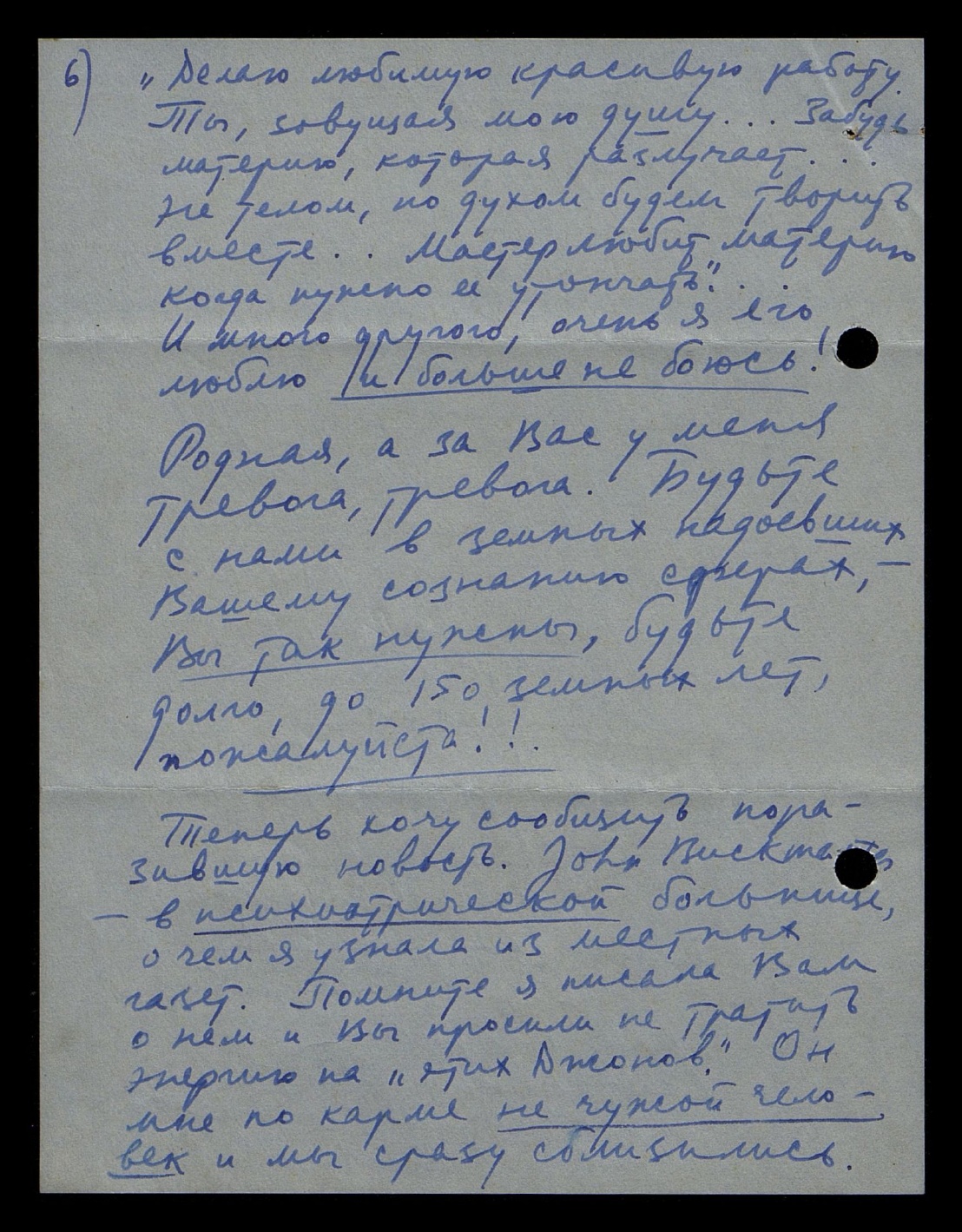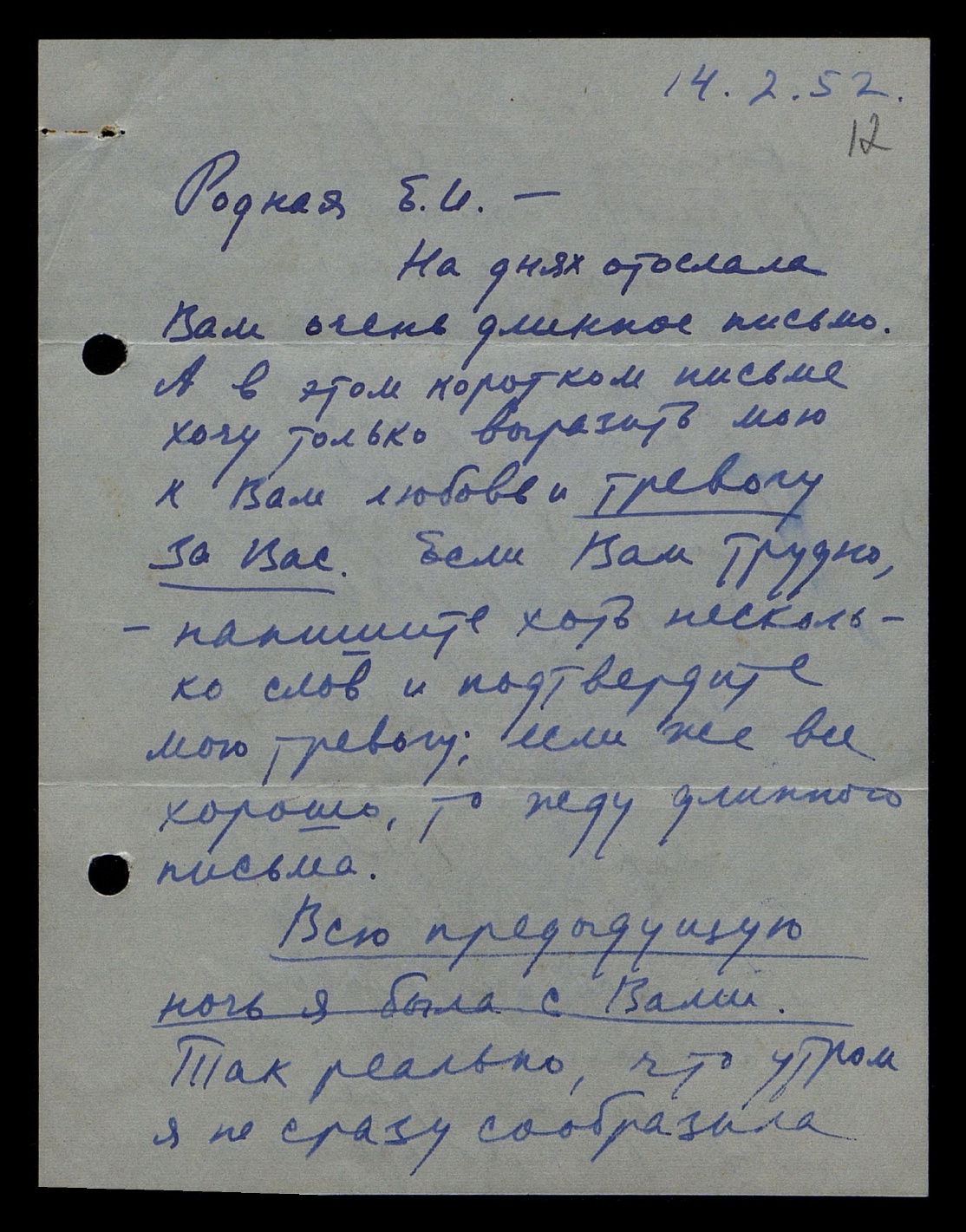 На днях отослала длинное письмо. А в этом коротком письме хочу только выразить мою к Вам любовь и тревогу за Вас.