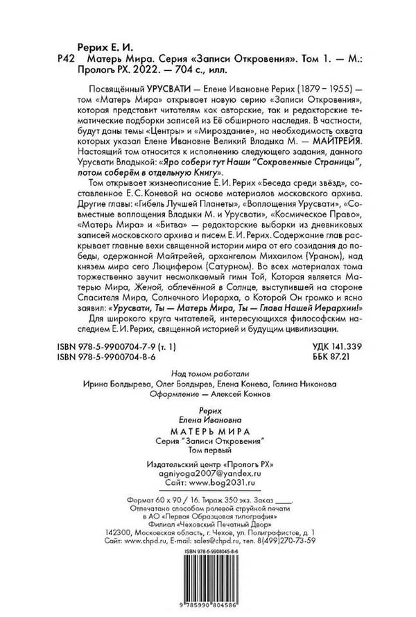 Рерих Е.И. «Матерь Мира». Серия «Записи Откровения». М.: Прологъ РХ, 2022.