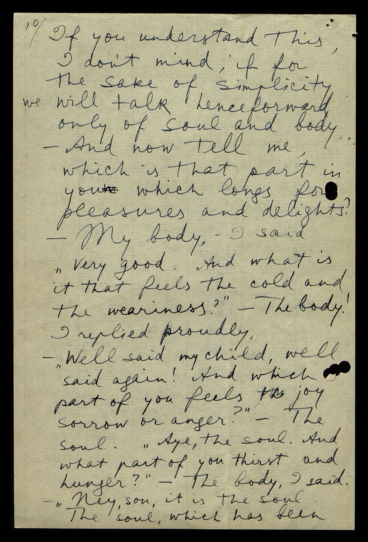 [англ.: Коль ты это понимаешь, я не возражаю, если для простоты мы будем употреблять только слова "душа" и "тело"...